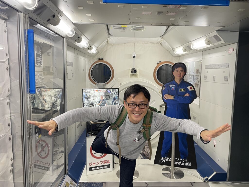 JAXAでは、無料エリアの展示はもちろん、有料エリアの管制室や閉鎖環境訓練施設など、実際の現場をガラス越しに見学できて感無量。