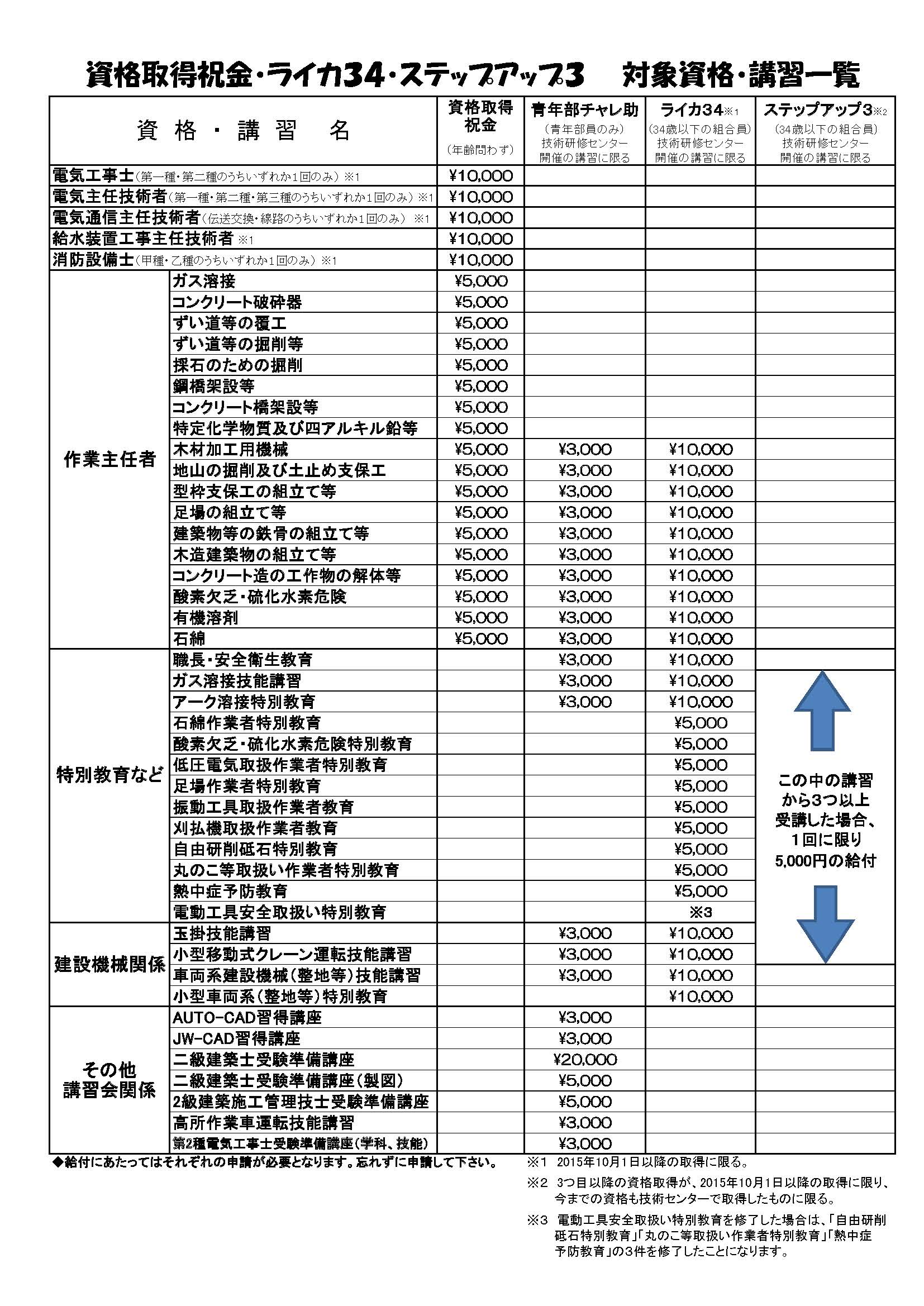 資格取得・若年者講習 対象資格一覧(訂正版)【PDF】 2015.10