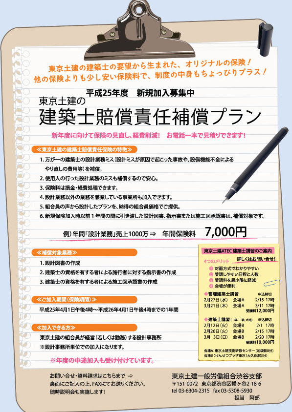 東京土建の建築士の要望から生まれた、オリジナルの保険!
