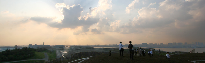定期的に一般参加による植樹まつりが開催され、徐々に「森」が形成されてゆく様を伺うことができました。一番の高台はまだ植樹されておらず、湾岸から都心を一望する絶景のオマケ付き。東京都港湾局 臨海開発部 海上公園計画担当の根来課長の説明もとてもわかりやすく、興味深い内容でした。ありがとうございました。