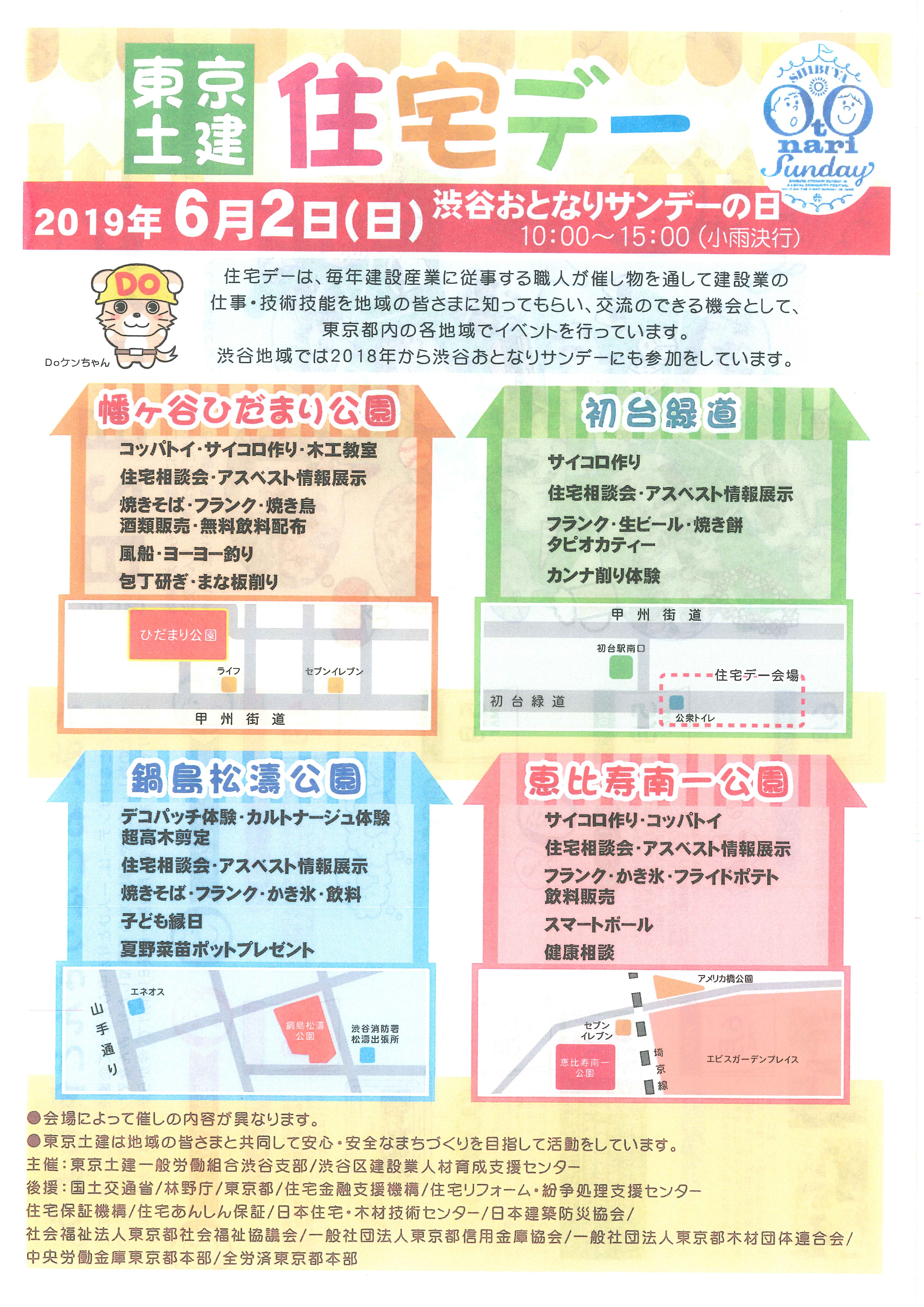 今年も渋谷区内4ヶ所で住宅デーを開催します。