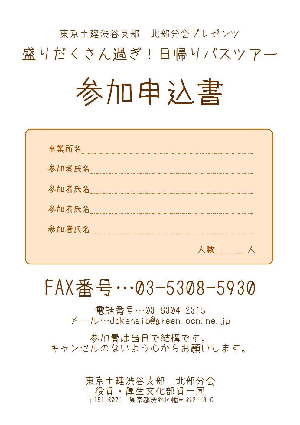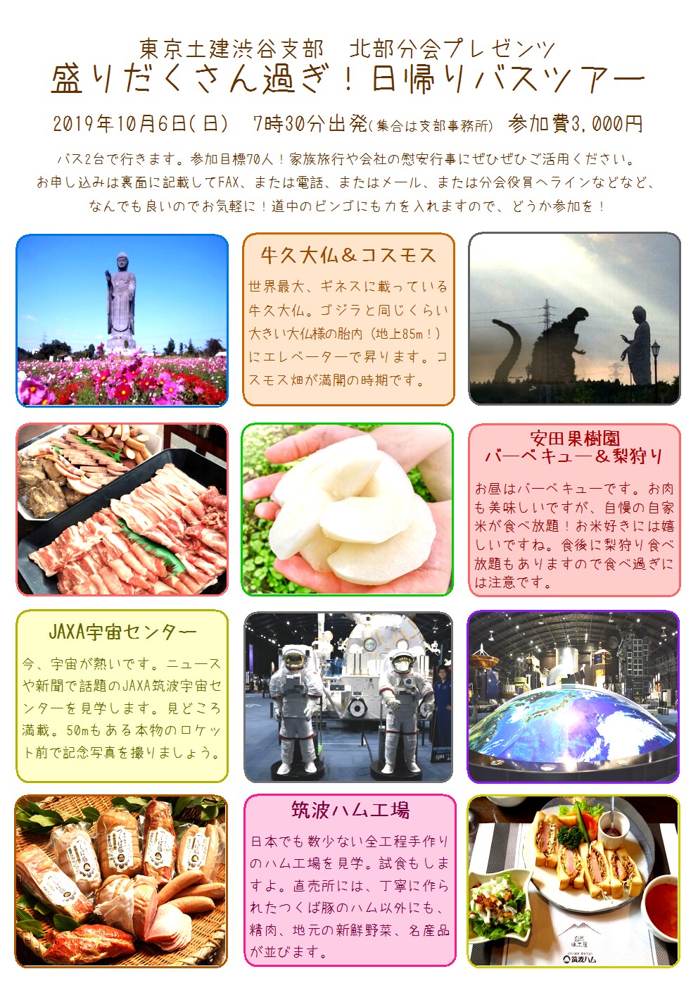 北部分会のみなさん、ようやく今年のバスツアーの内容が決まりました!