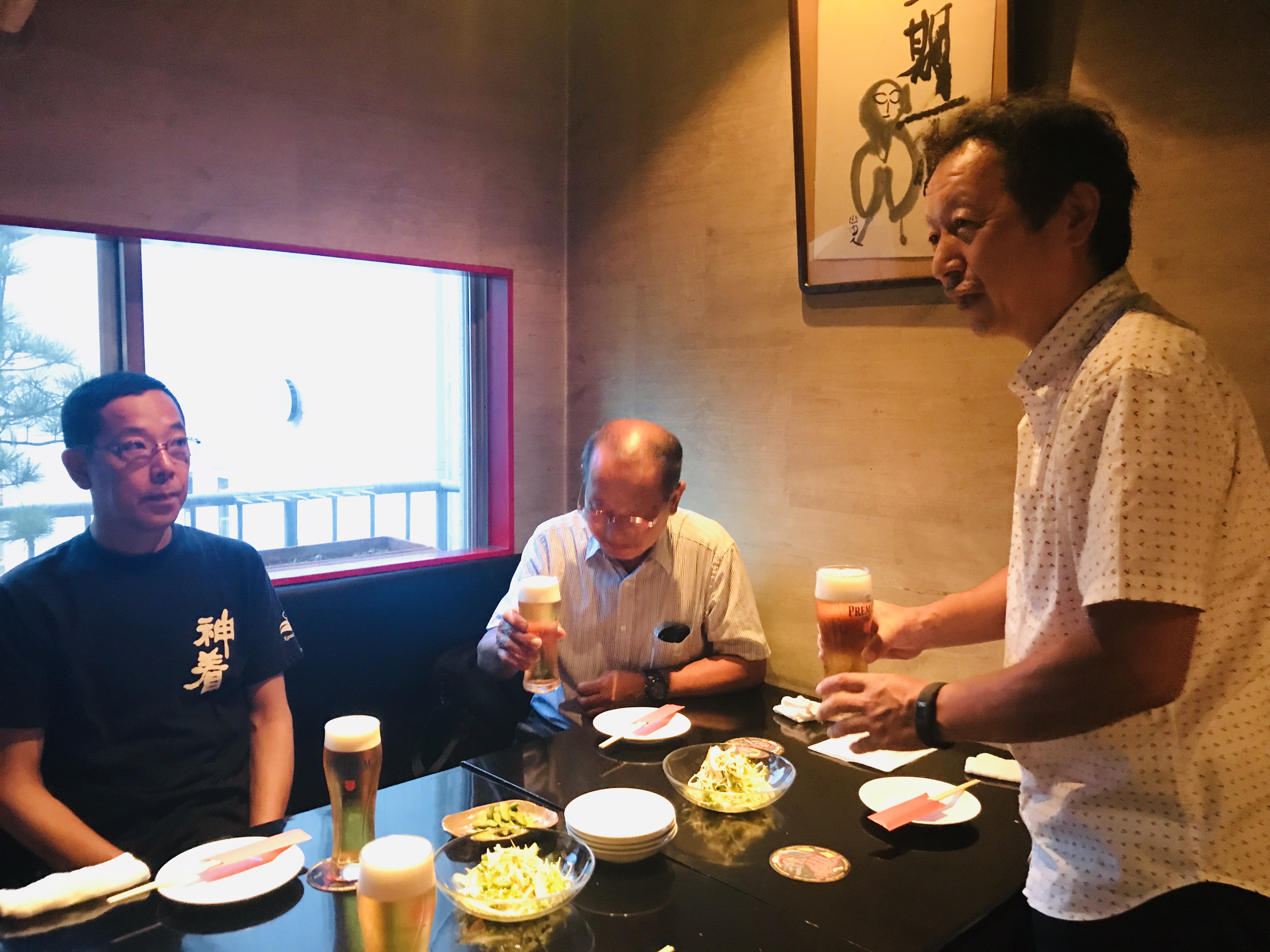 今年は分会ごとに町場群の集まりを作っていこう、という訳で、7月31日水曜日に東部分会町場群交流会が参宮橋のお好み焼き屋「昇治郎」さんで、8月1日木曜日に南部分会町場群交流会が恵比寿の串揚げ屋「民家」さんで開催されました。