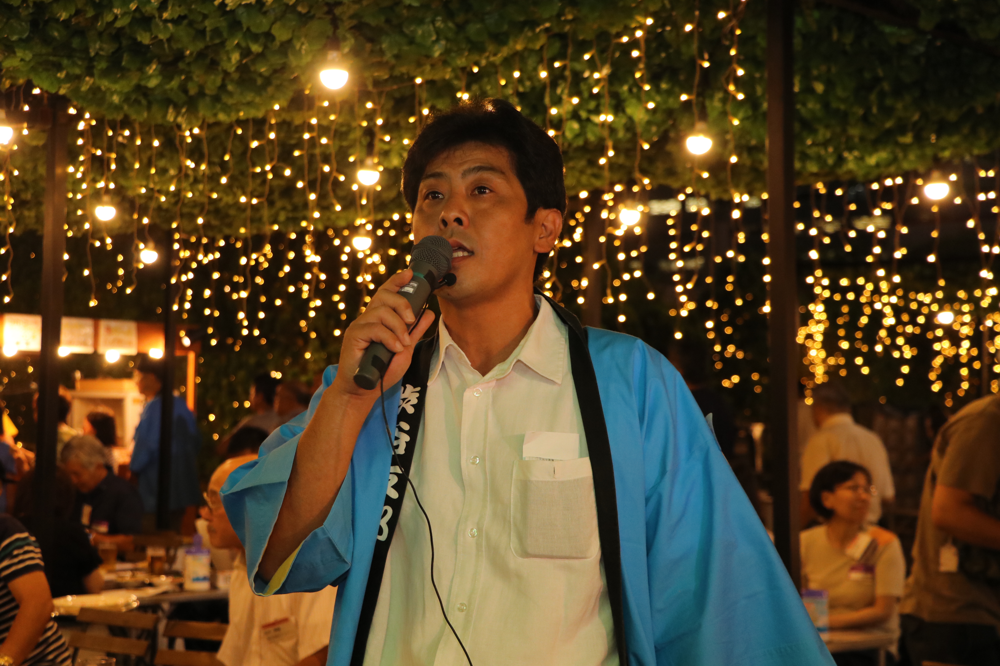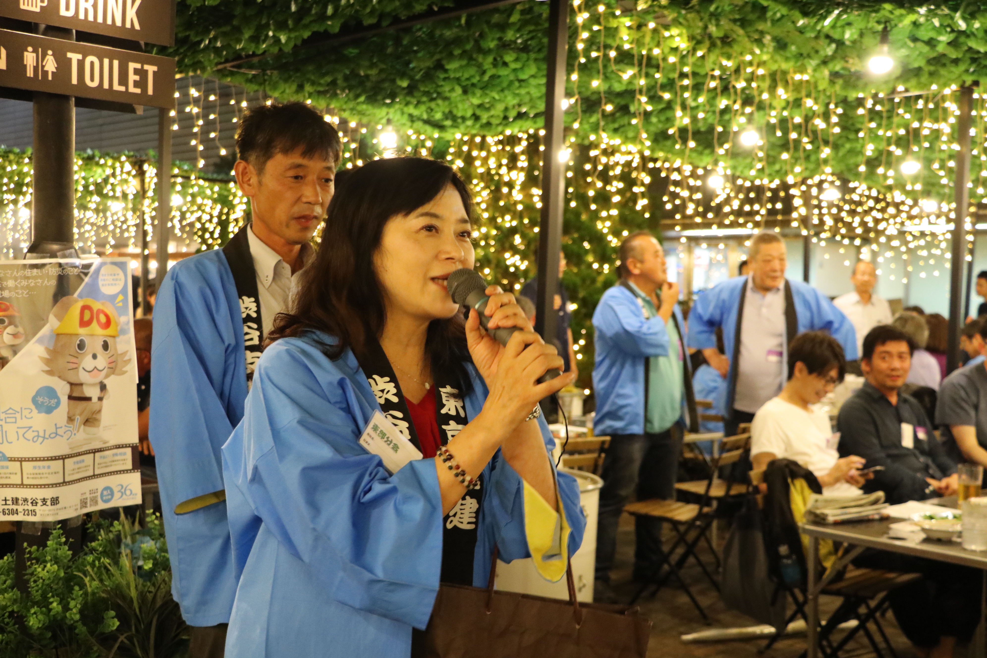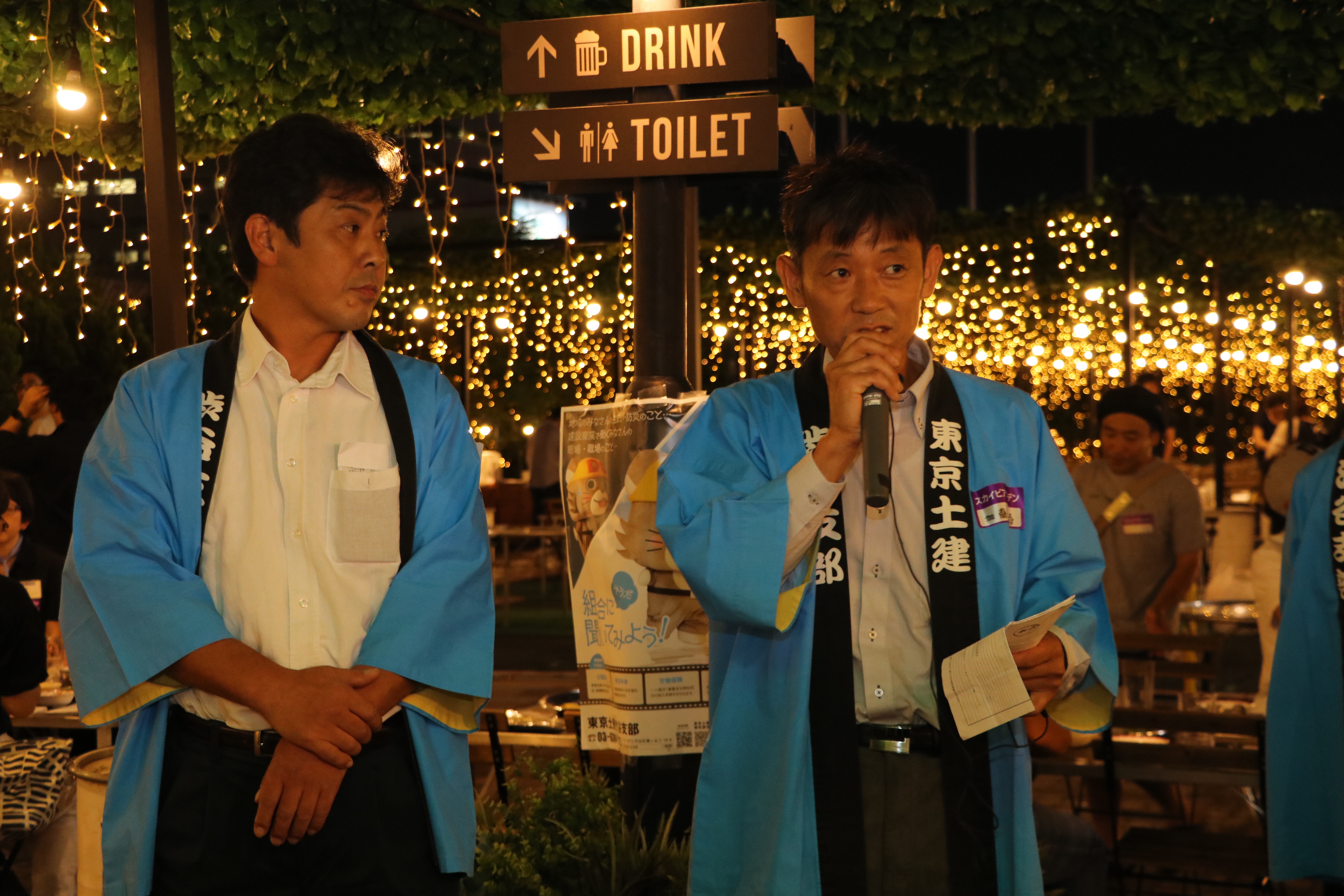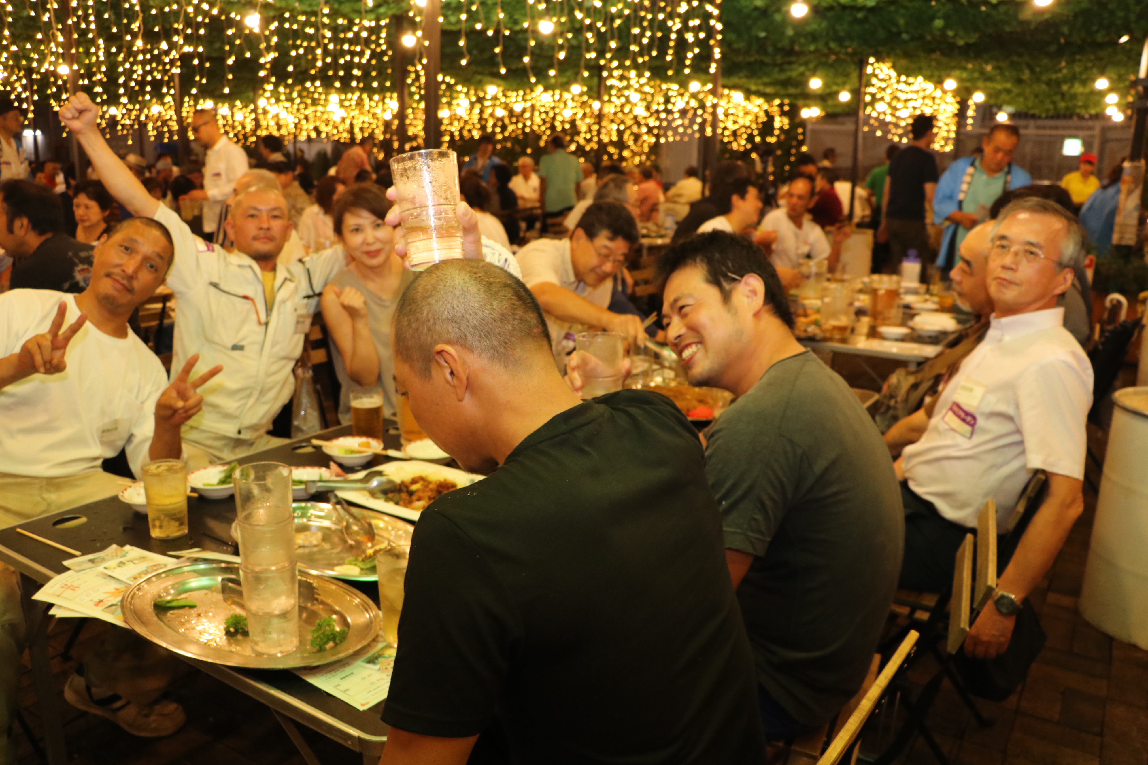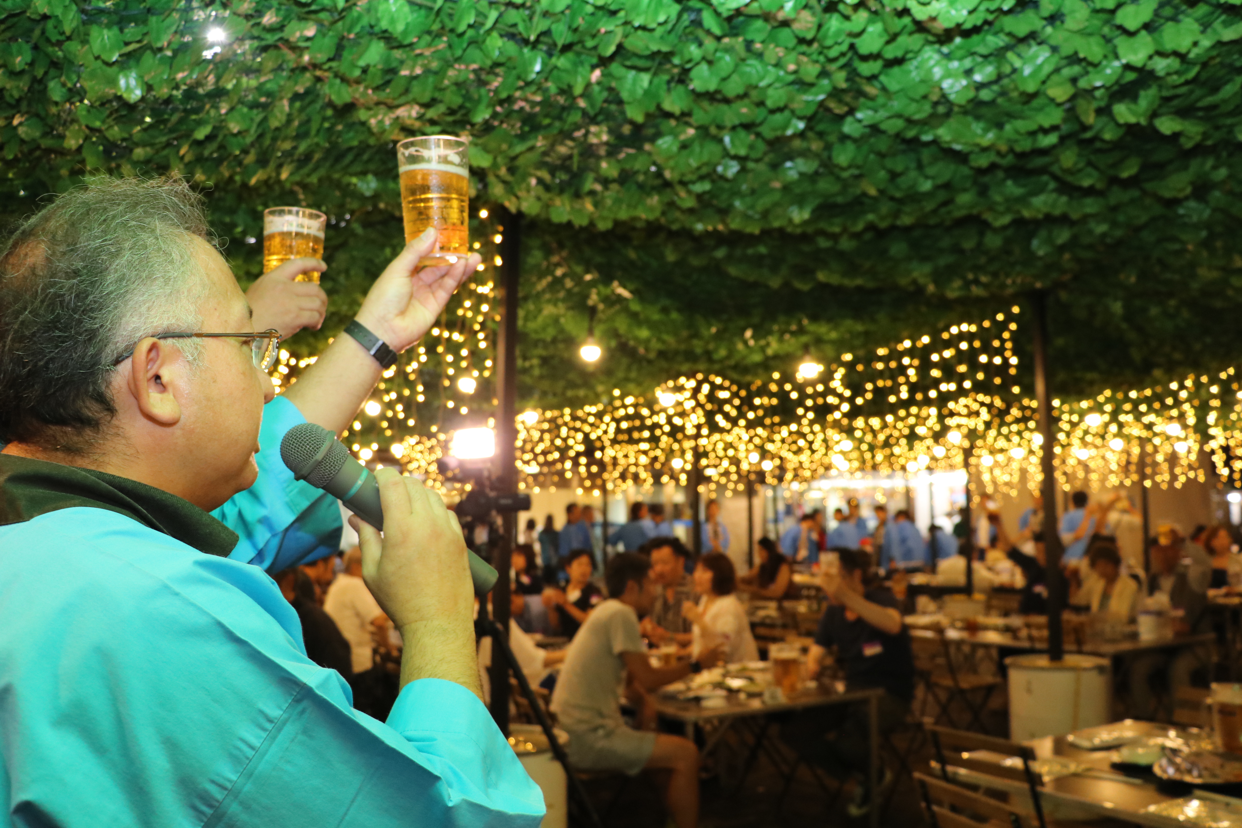 19時、加藤書記長を司会に、伊藤委員長、佐藤本部役員のご挨拶のあと、小島副委員長の乾杯でビアパーティスタート。