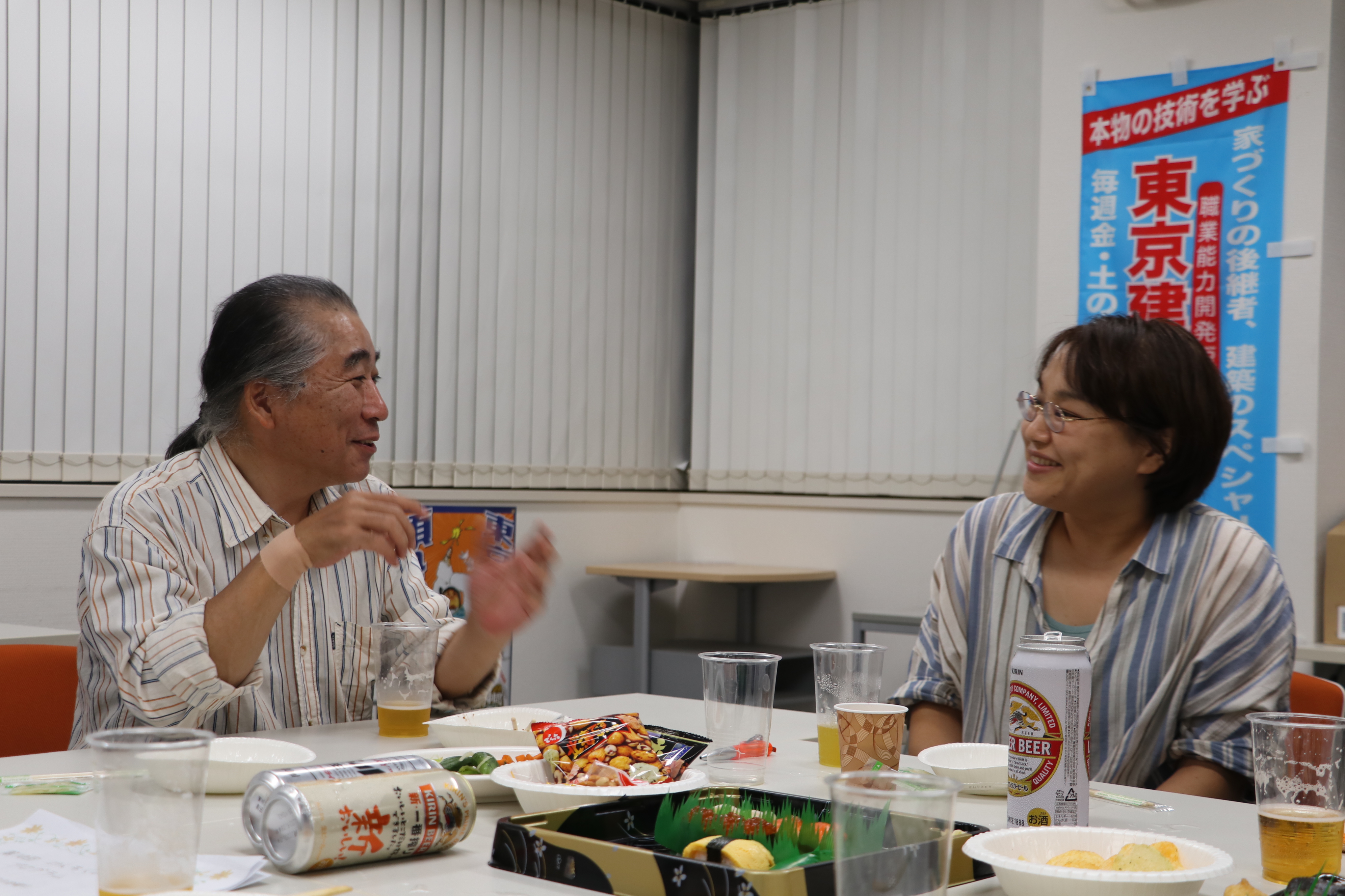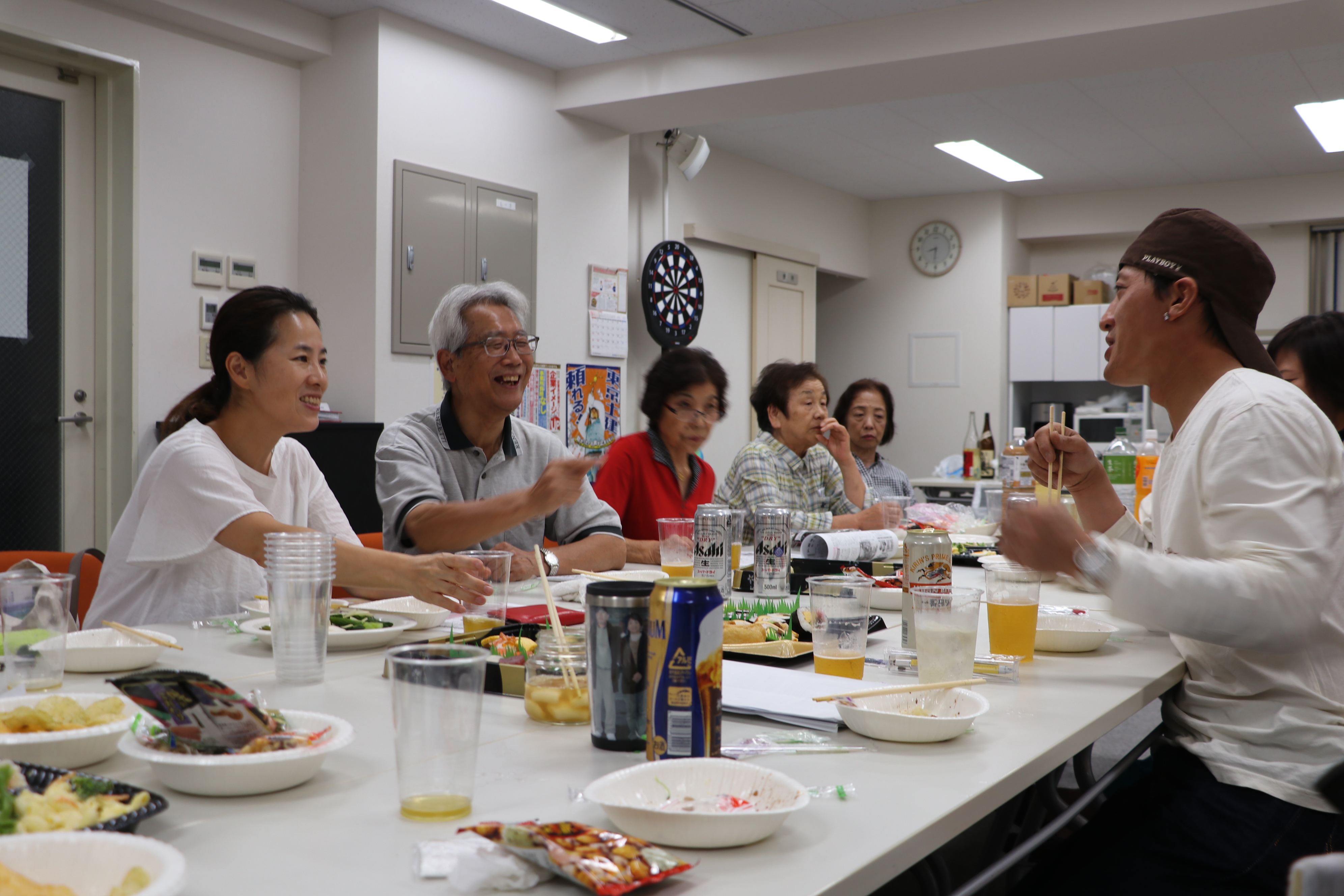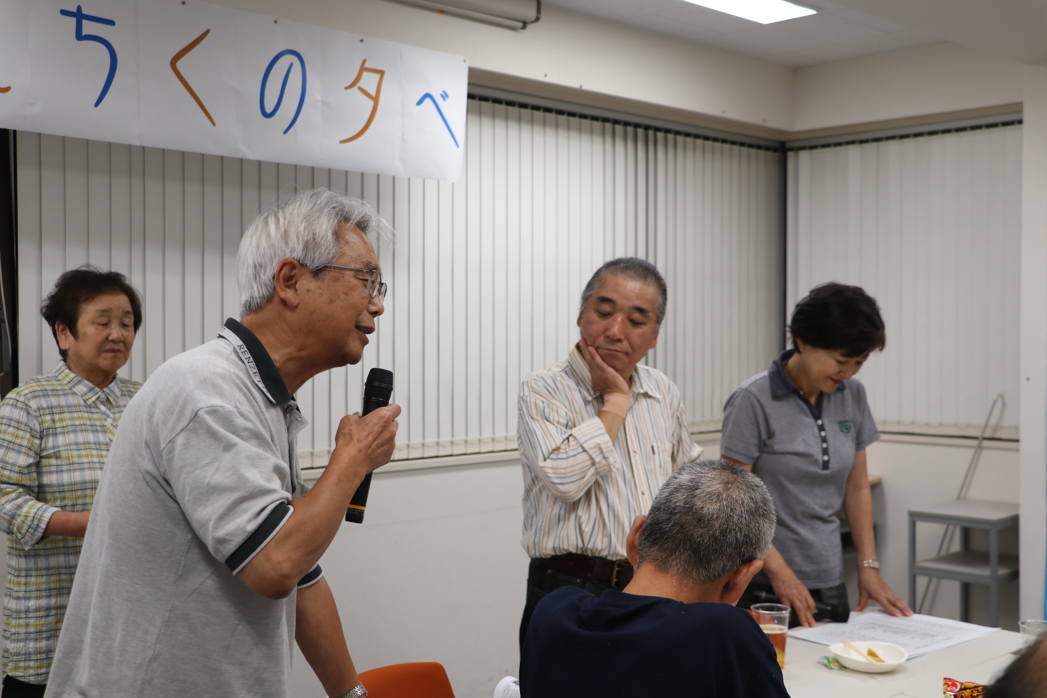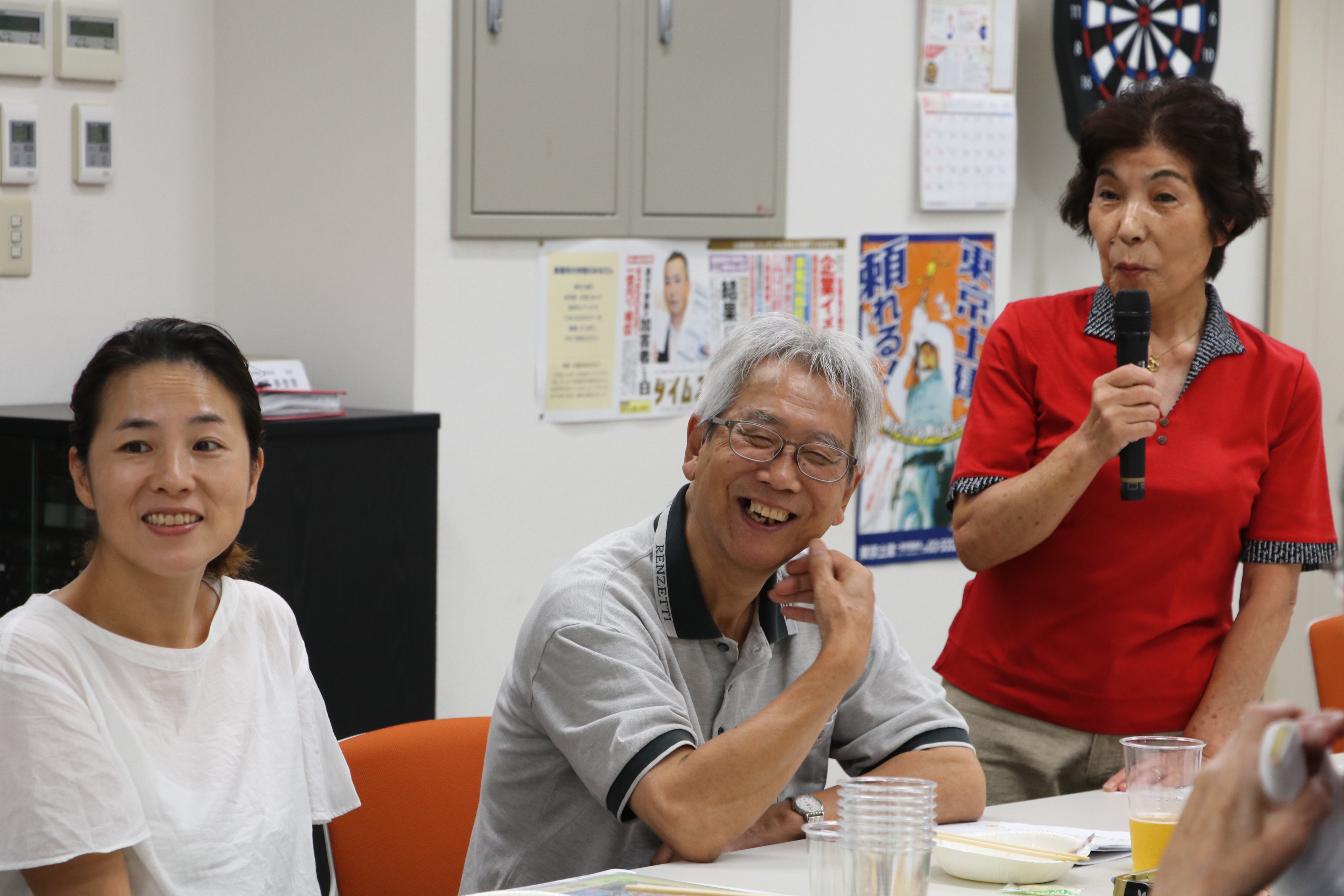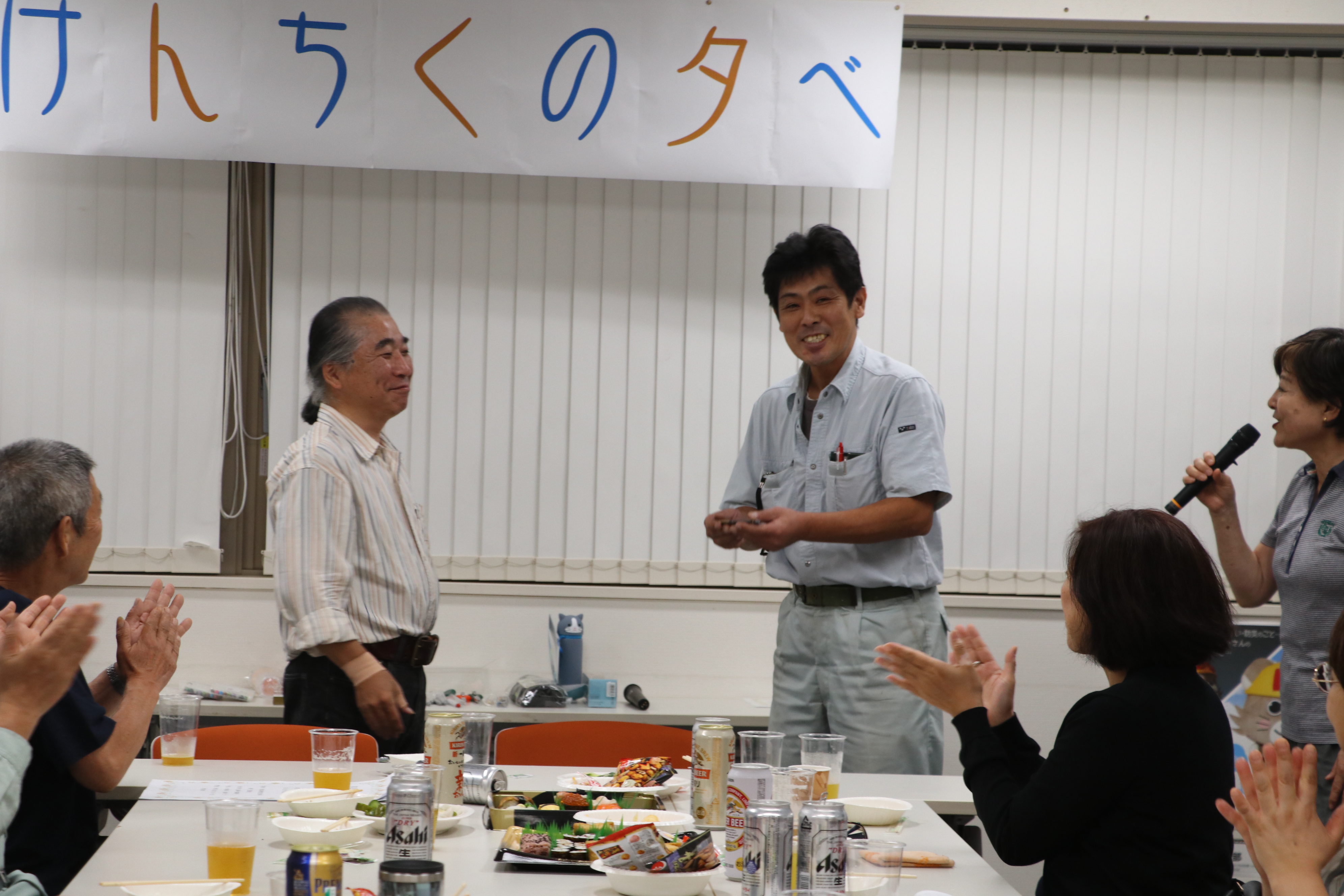 教育宣伝部の佐々木副部長が司会を務め、大鐘部長が開会宣言をし、ベテラン部員・笠原さんの乾杯で宴スタート。