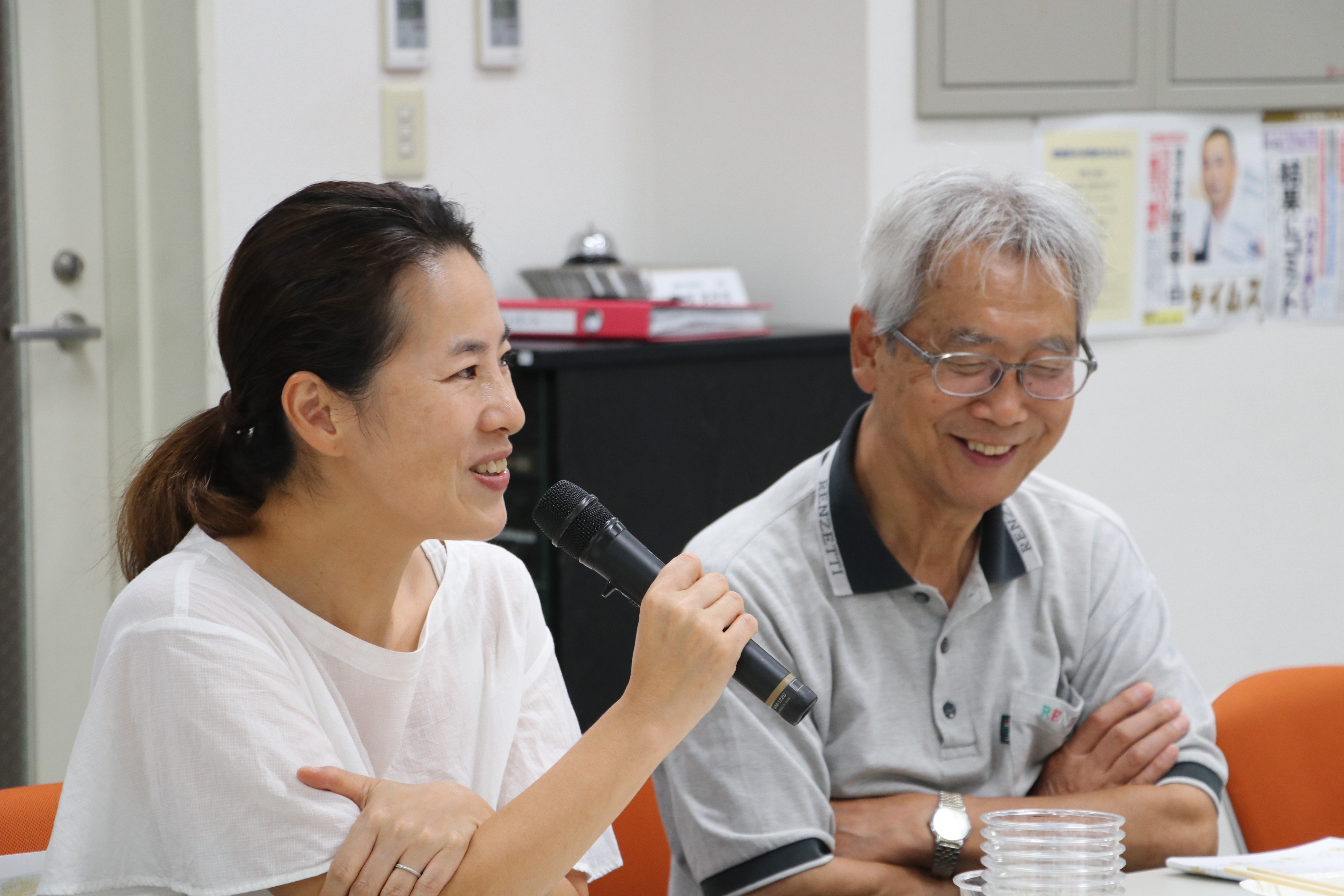 急遽伊藤委員長もかけつけ、秋の拡大月間について訴えました。せっかくなので記念品を贈呈。