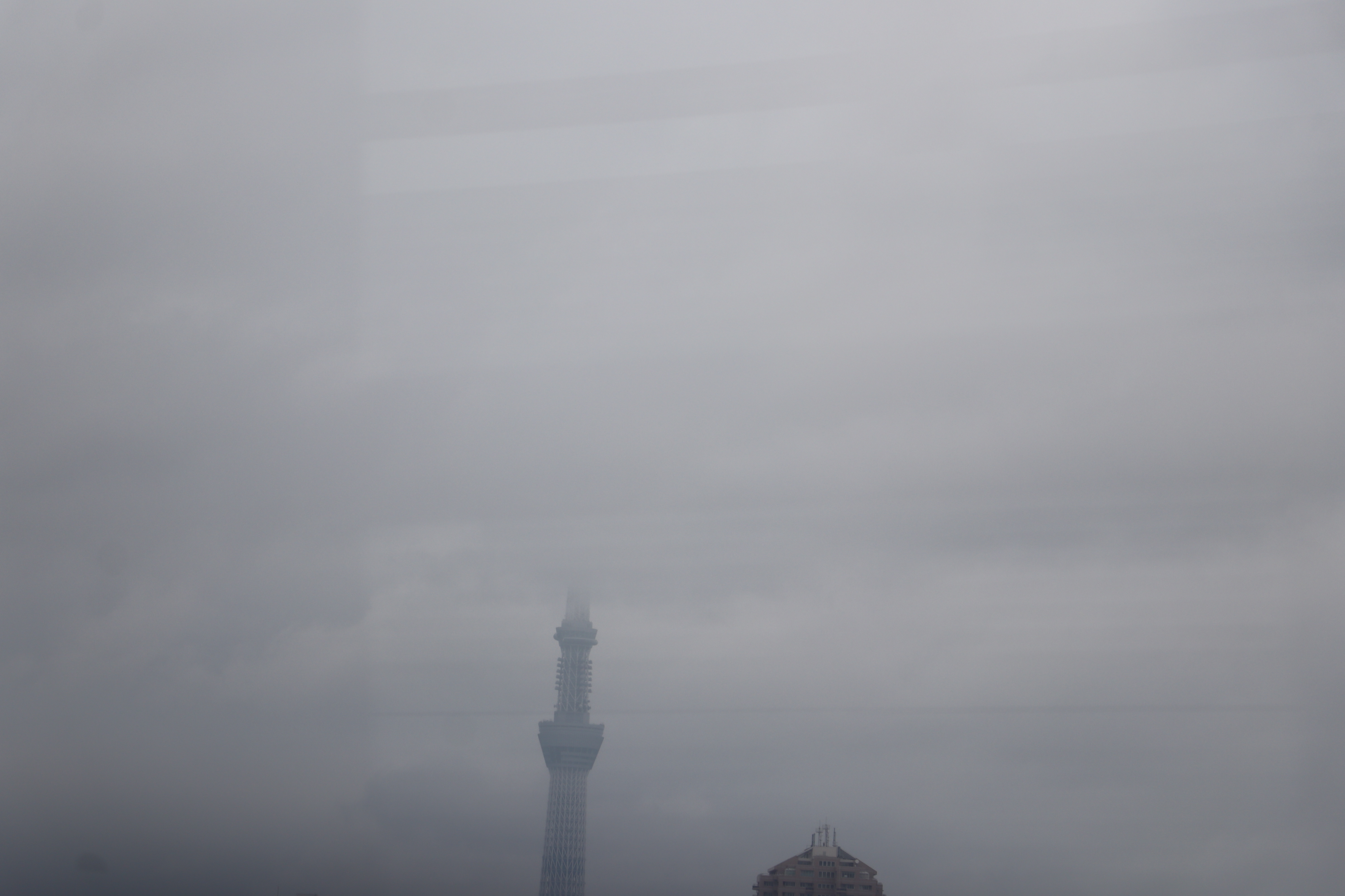 エレベーターに乗り、展望室へ。小さな窓から景色を眺めました。
