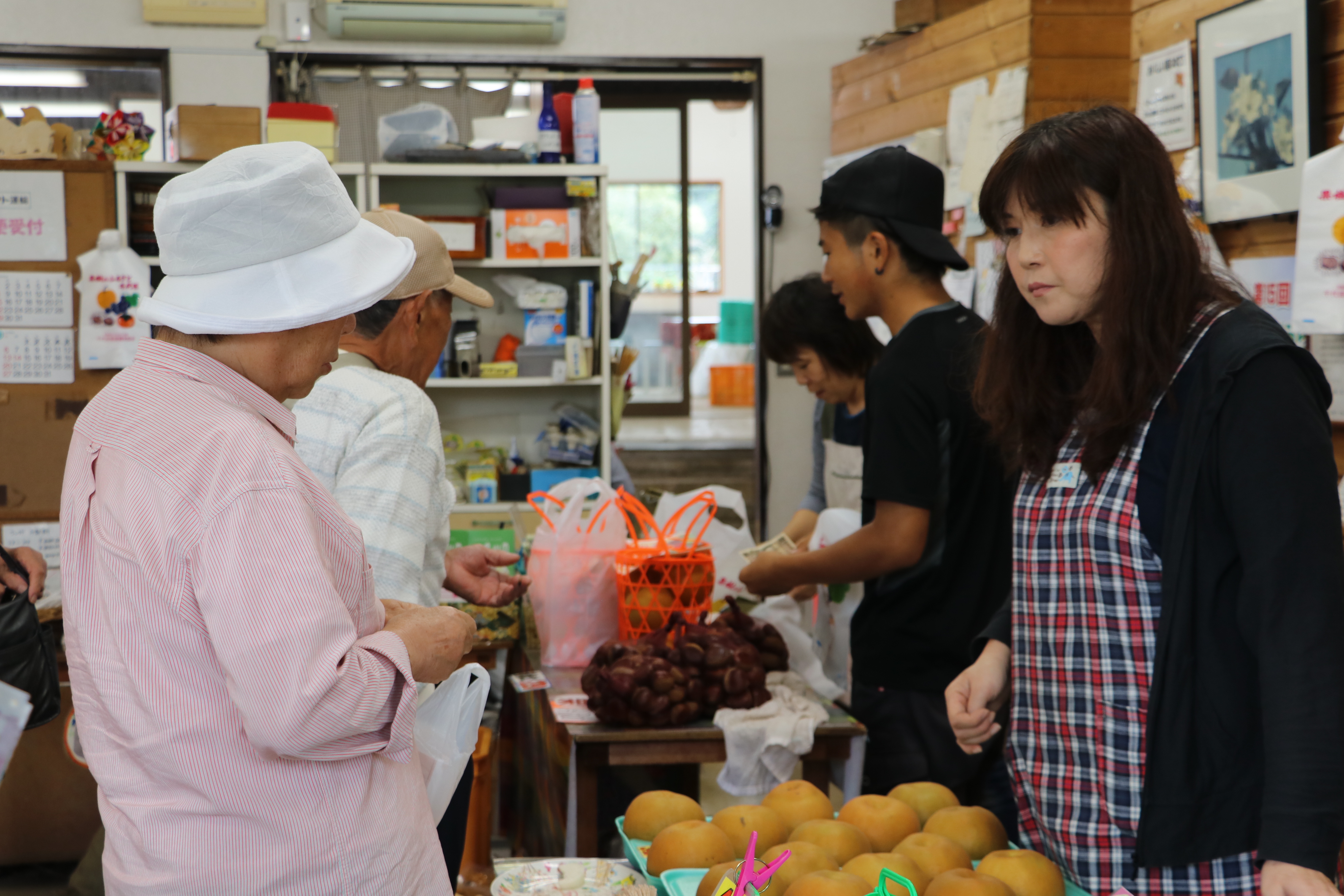 梨狩り前にお買い物。皆さん立派な栗や梨をお買い上げしていました。栗をご相伴にあずかりましたが、ホクッと甘い旬の味でした。