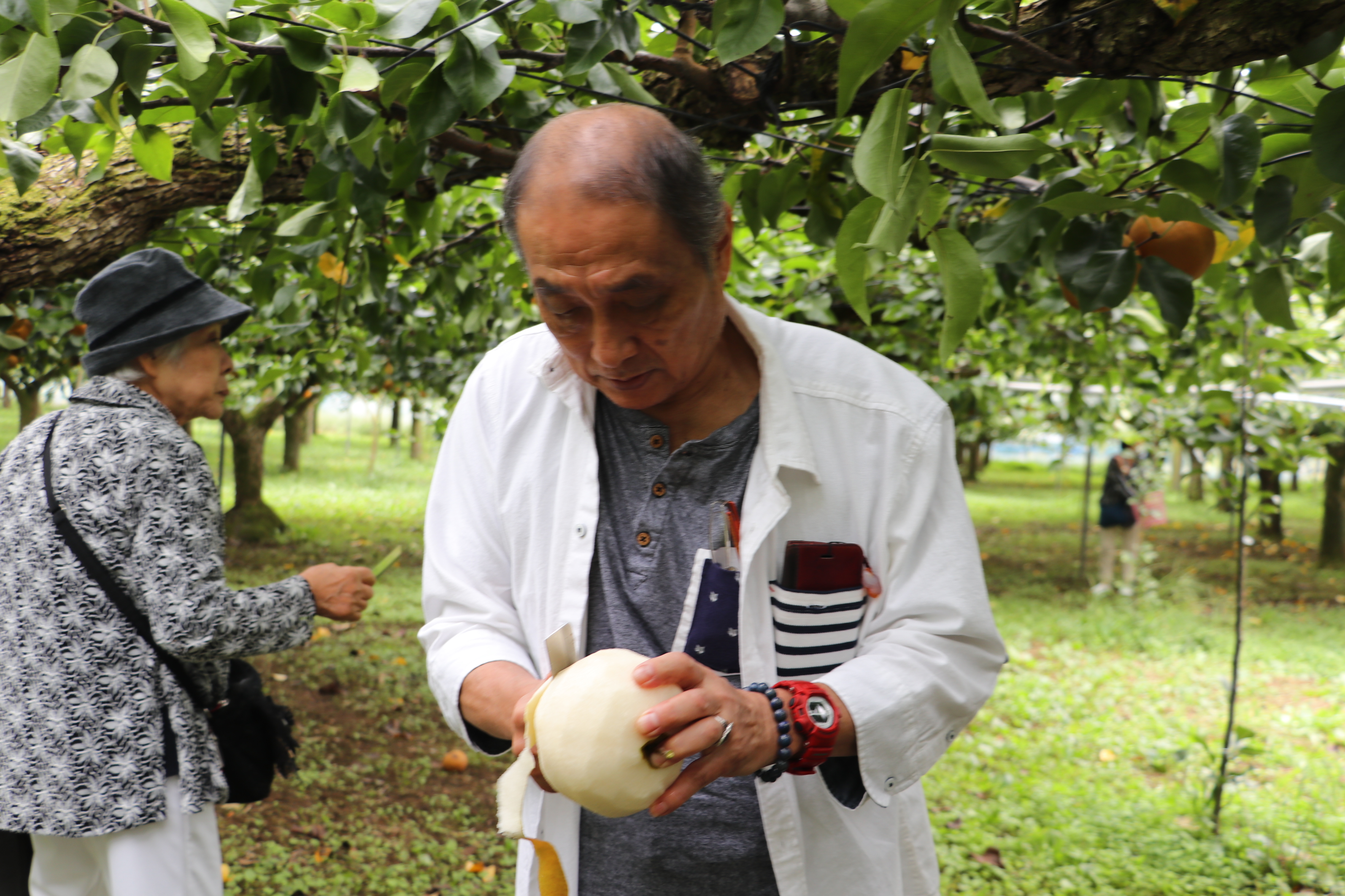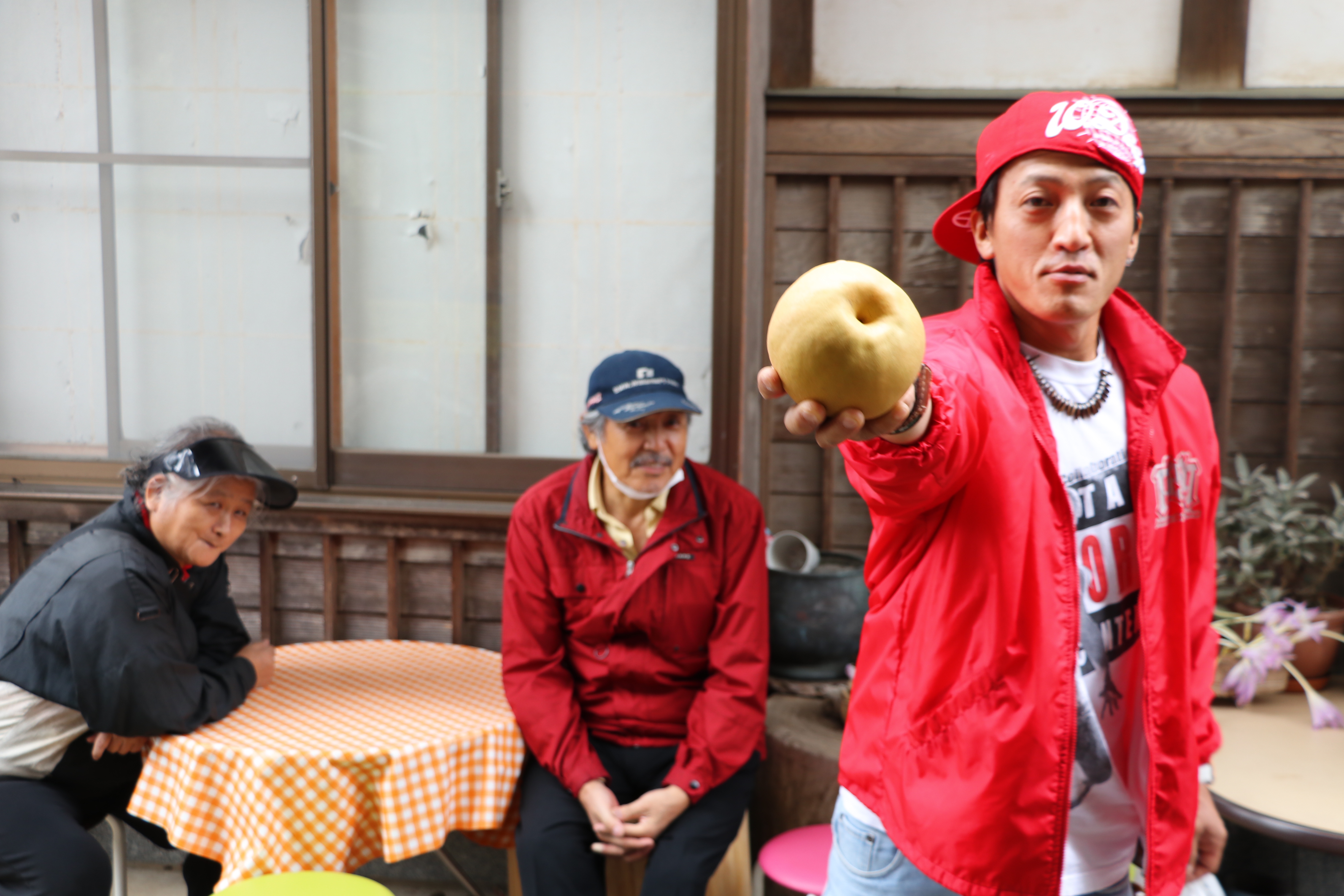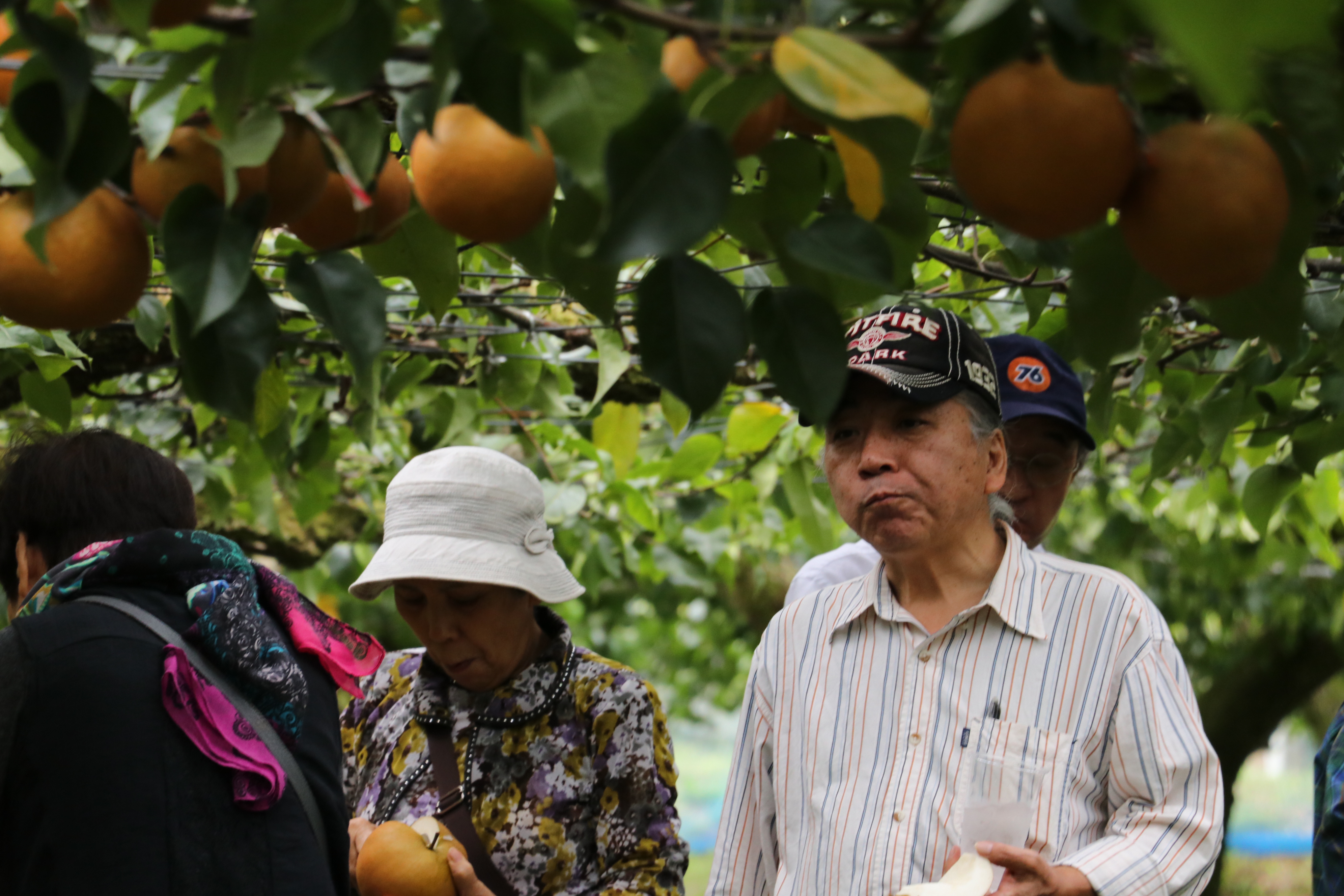 梨狩り、素晴らしかったです。大きくて甘くてみずみずしい梨をいっぱい頂きました。皆さんスルスルと皮を剥いていました。剥いてやろうか?と言われたのでお言葉に甘え2つ剥いてもらいました。