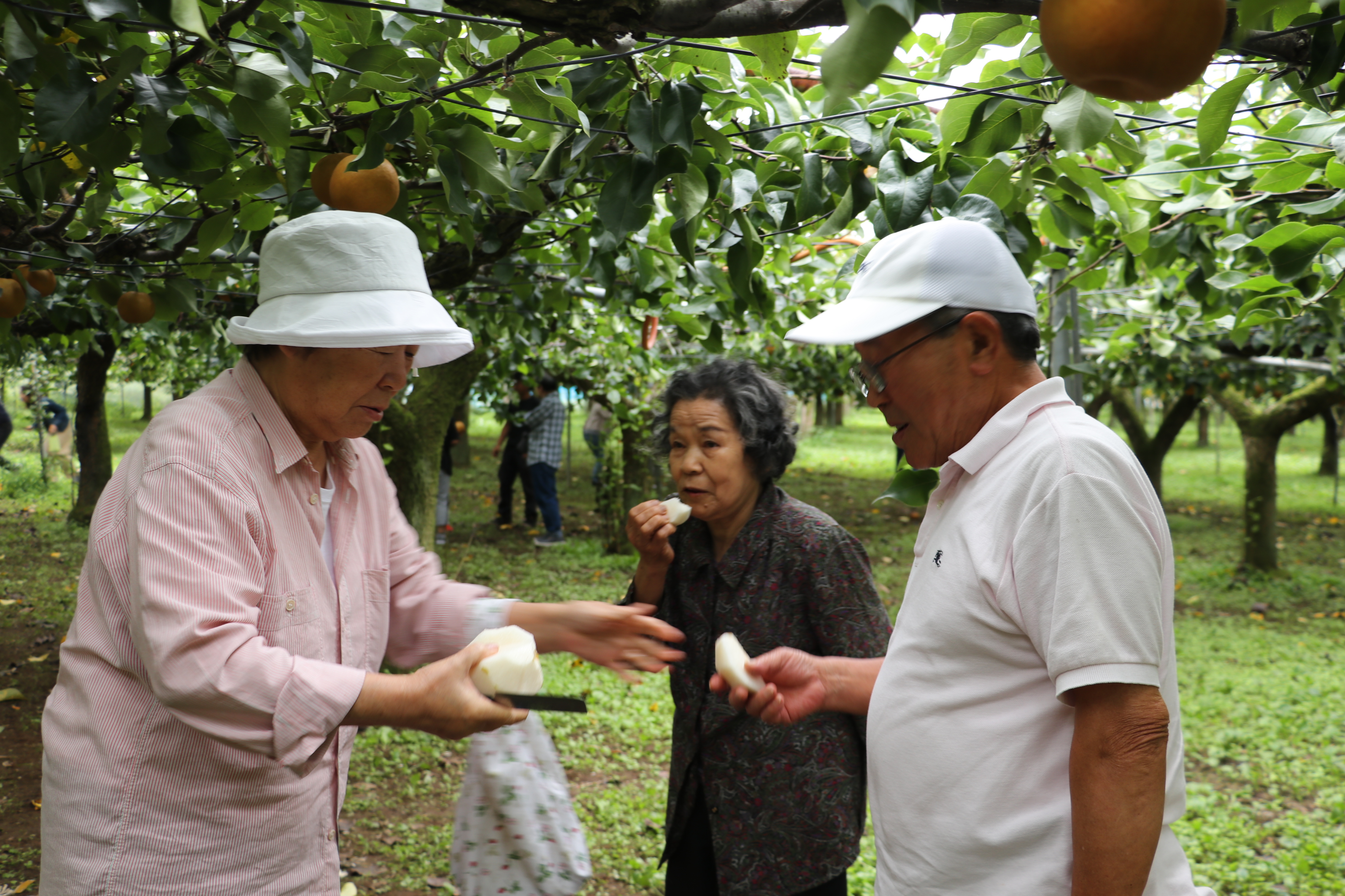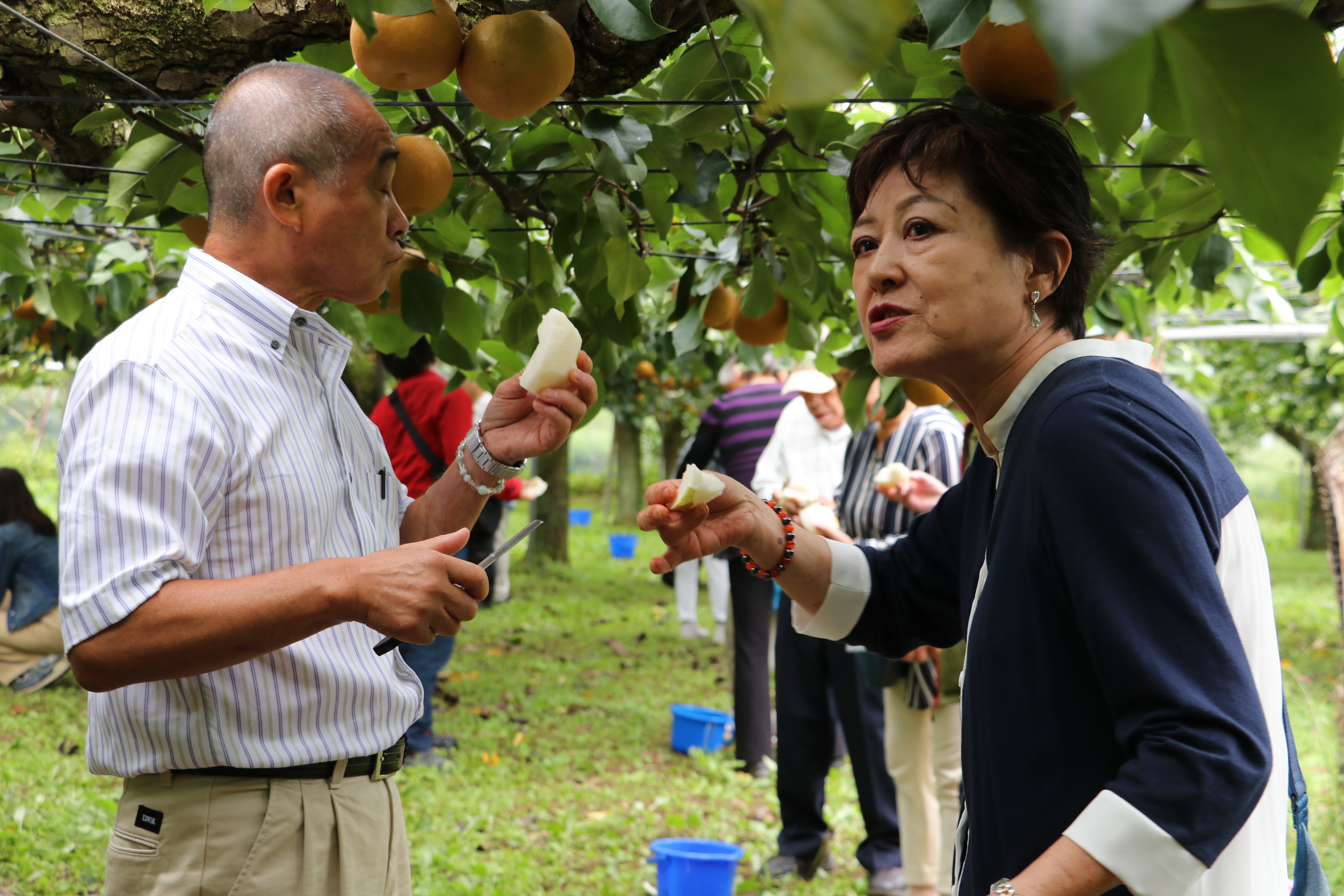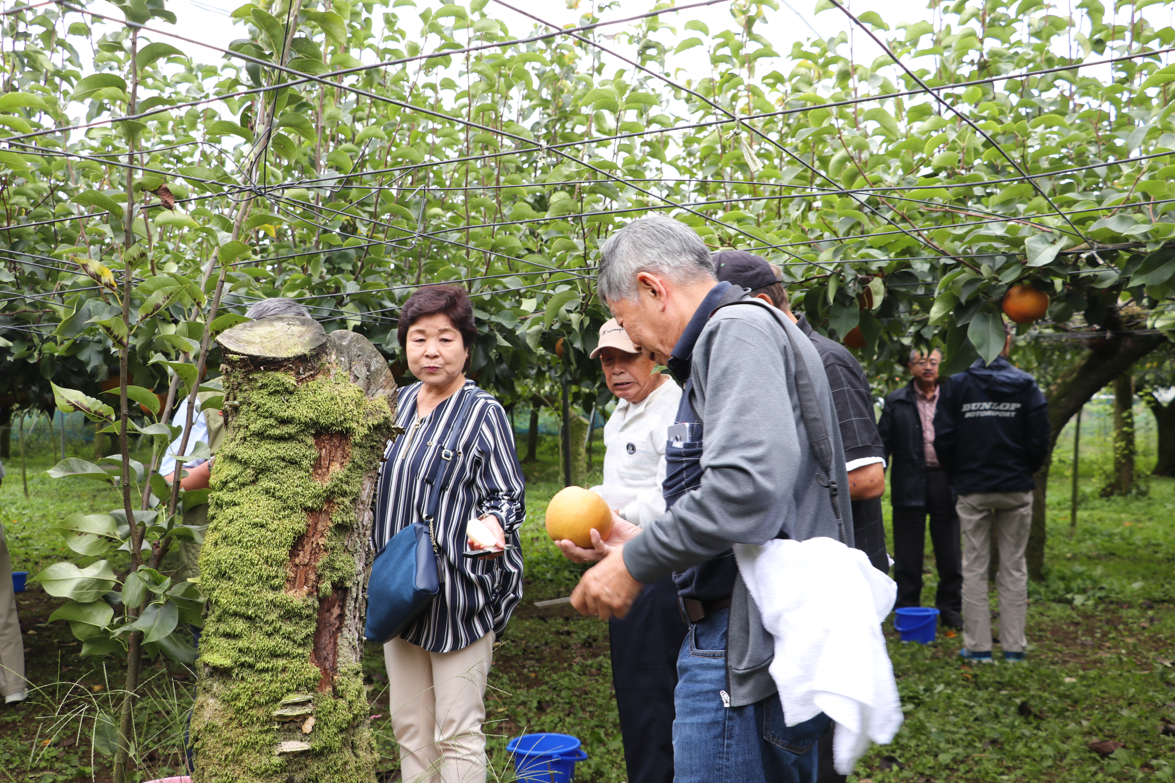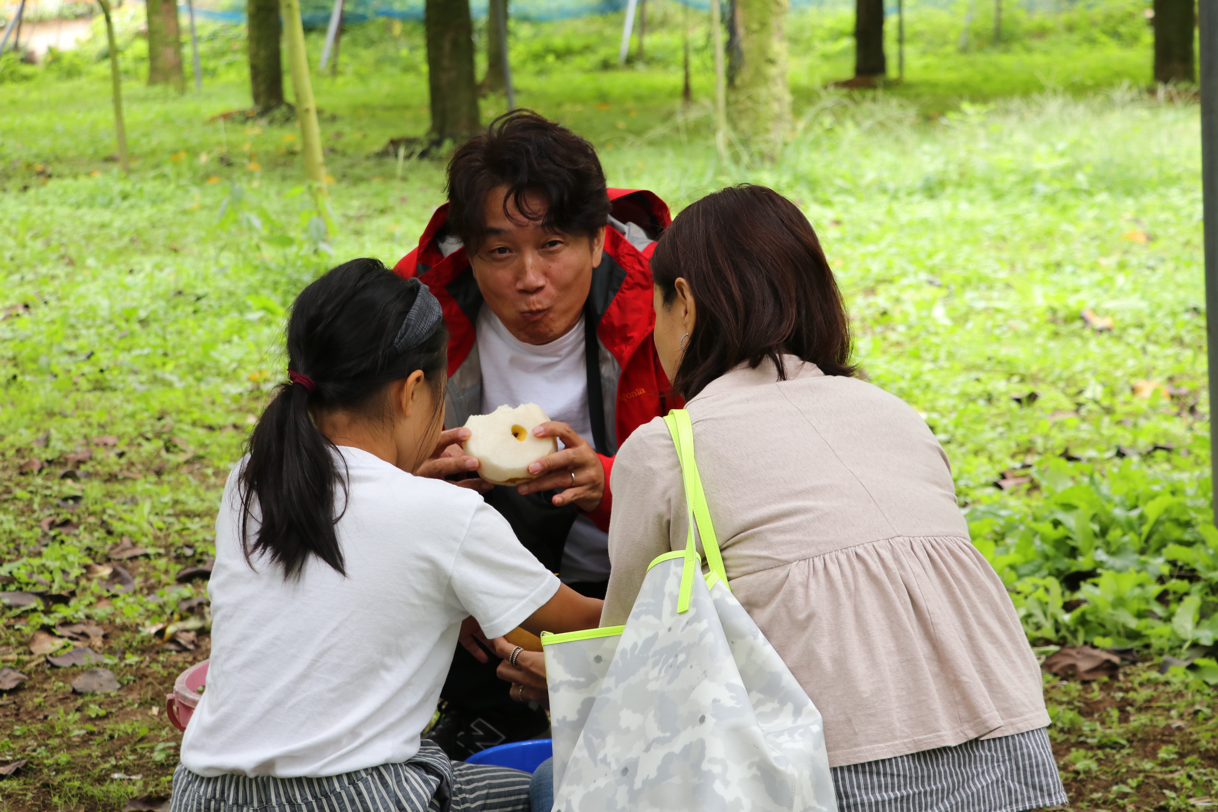 続いて、果樹園でバーベキュー&梨狩りです。お肉も美味しかったですが、新米が筆舌に尽くしがたいほど美味しくて4杯食べました。