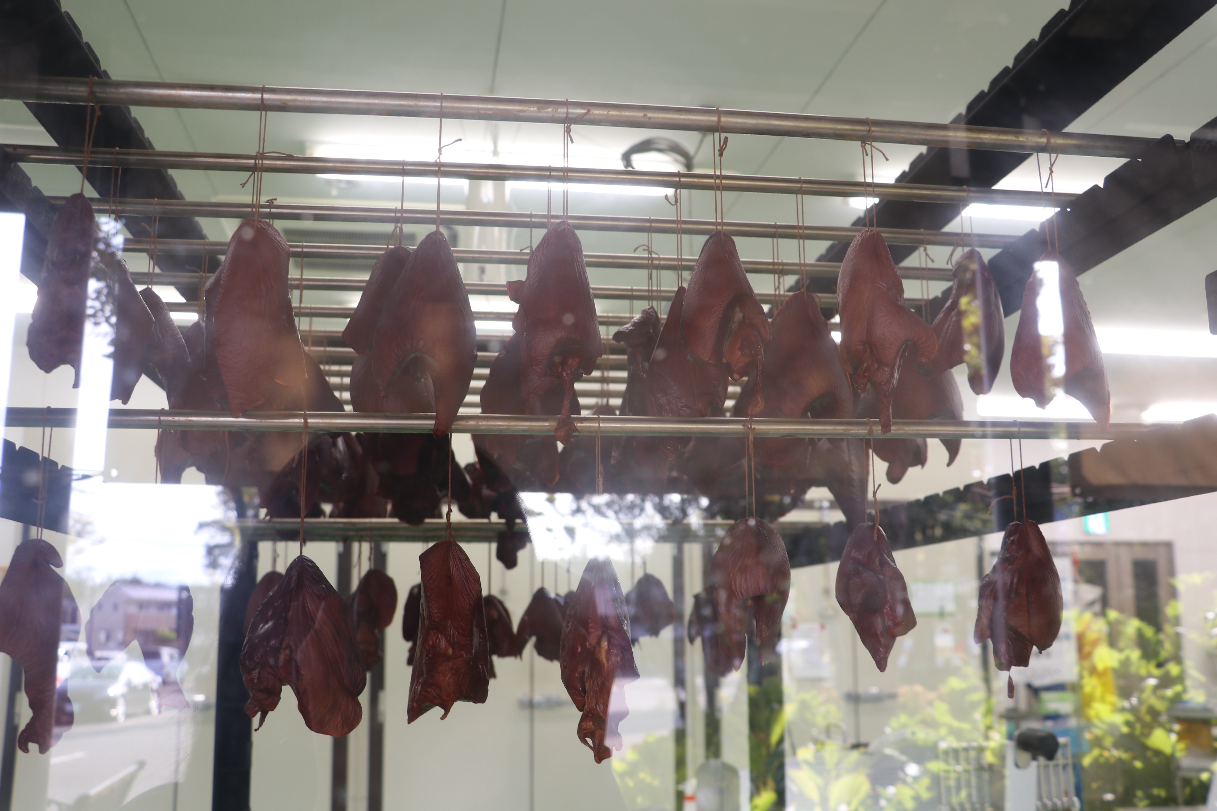 最後はハム工場で見学&お買い物。レバーが干してありました。しっかりくん製の味がするハムや、濃厚なヨーグルトやチーズ、新鮮な野菜が沢山ありました。