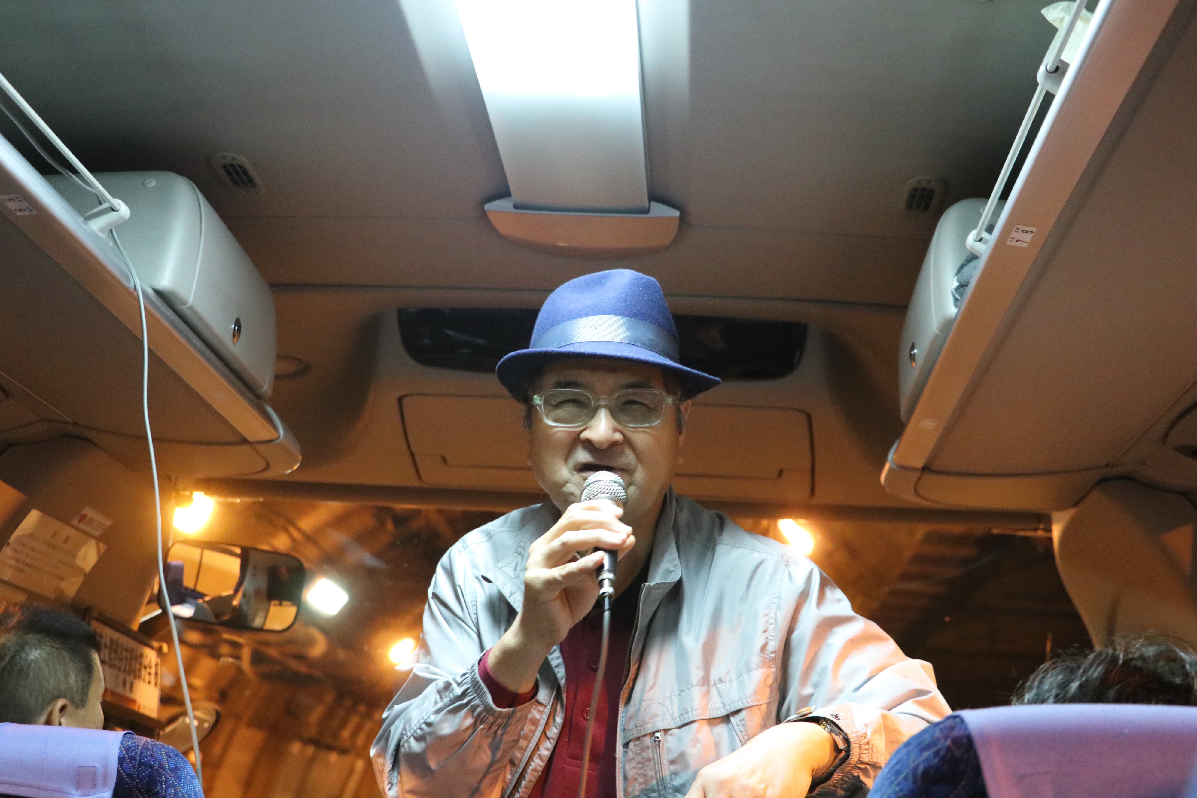 私(担当書記の工藤です)が乗った1号車は、佐々木美由紀副分会長が司会やら道中のお世話やら全てをやってくれました。
