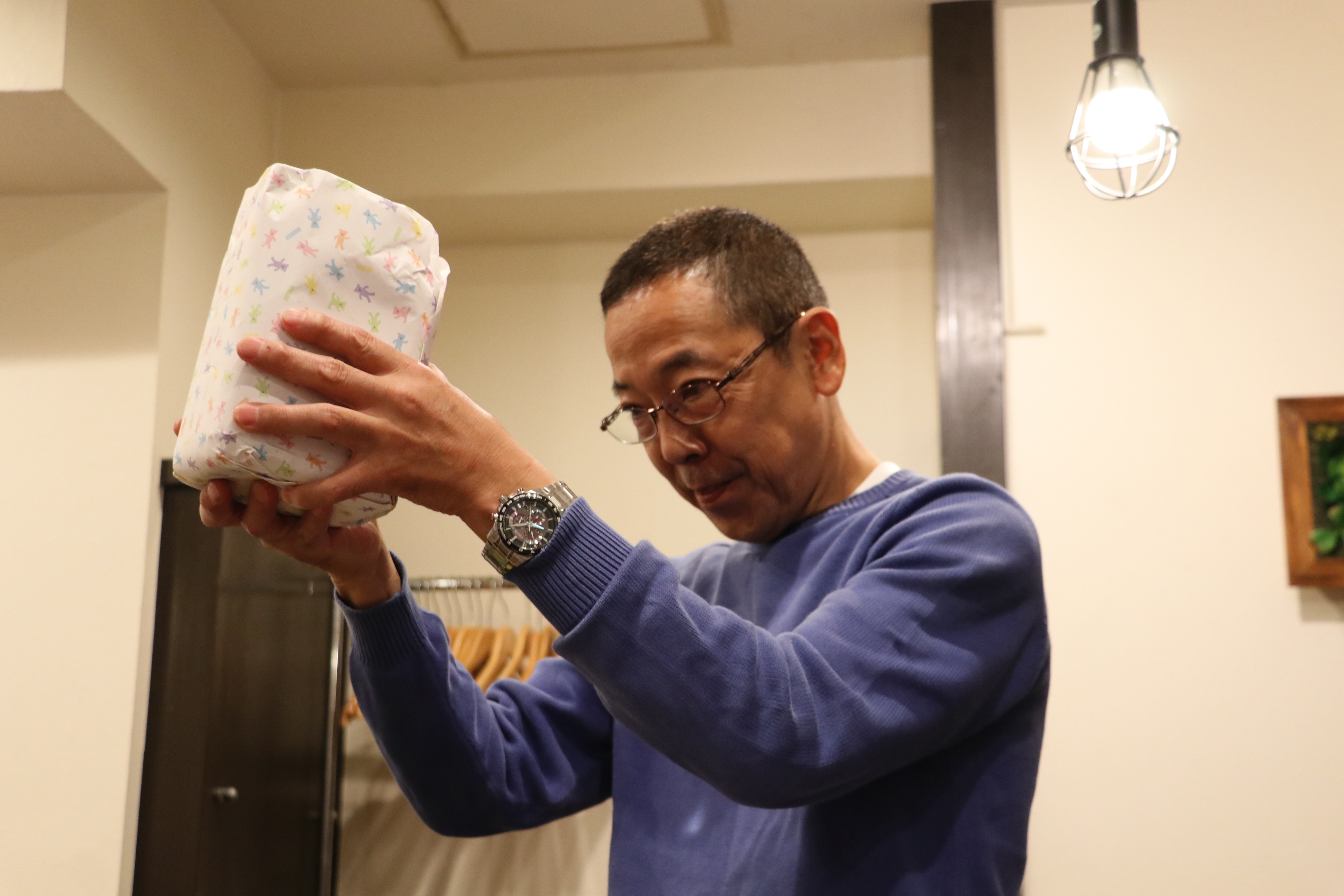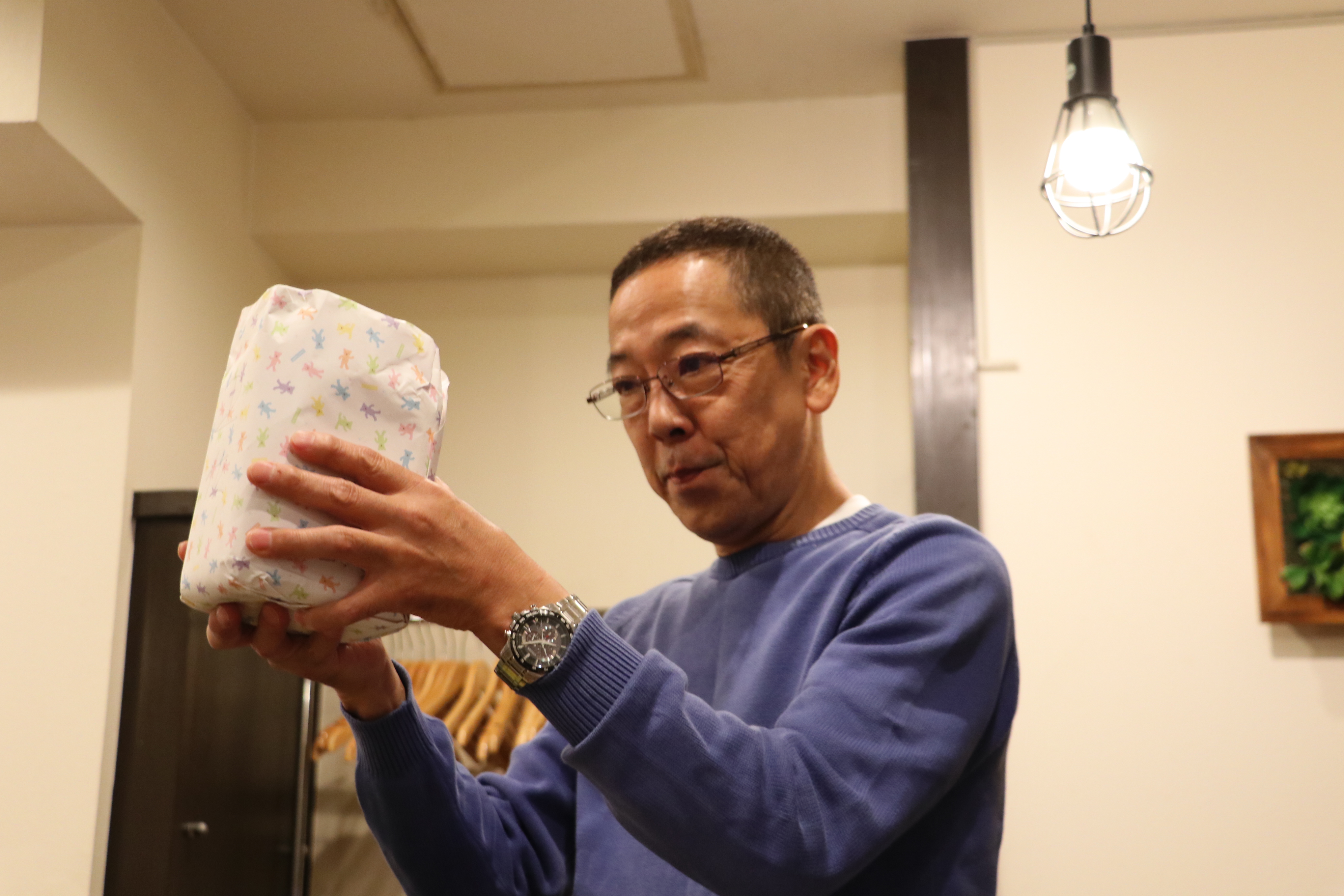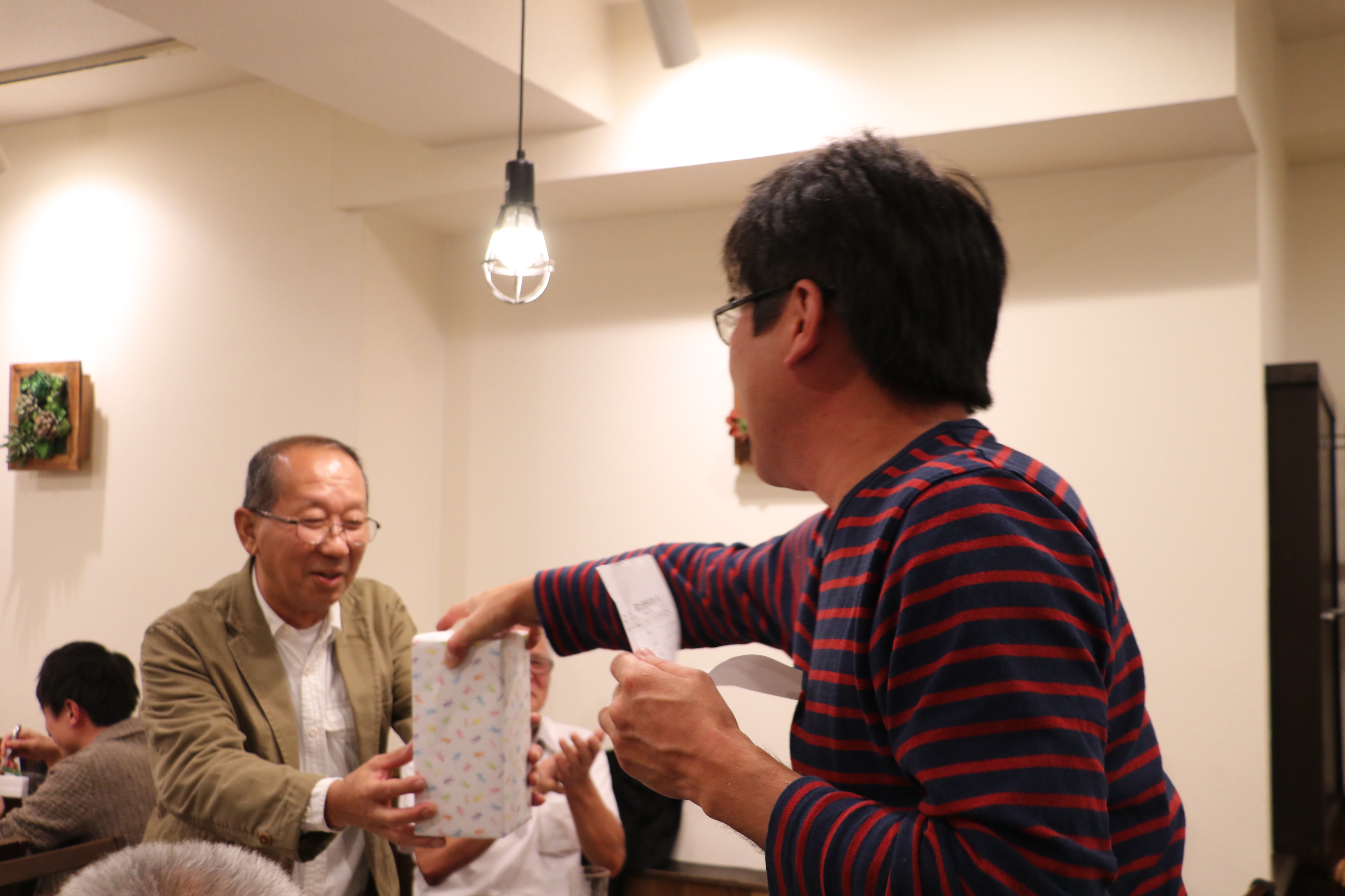 小倉副委員長が準備してくれた記念品、皆さん開けなかったので中身が分かりません。