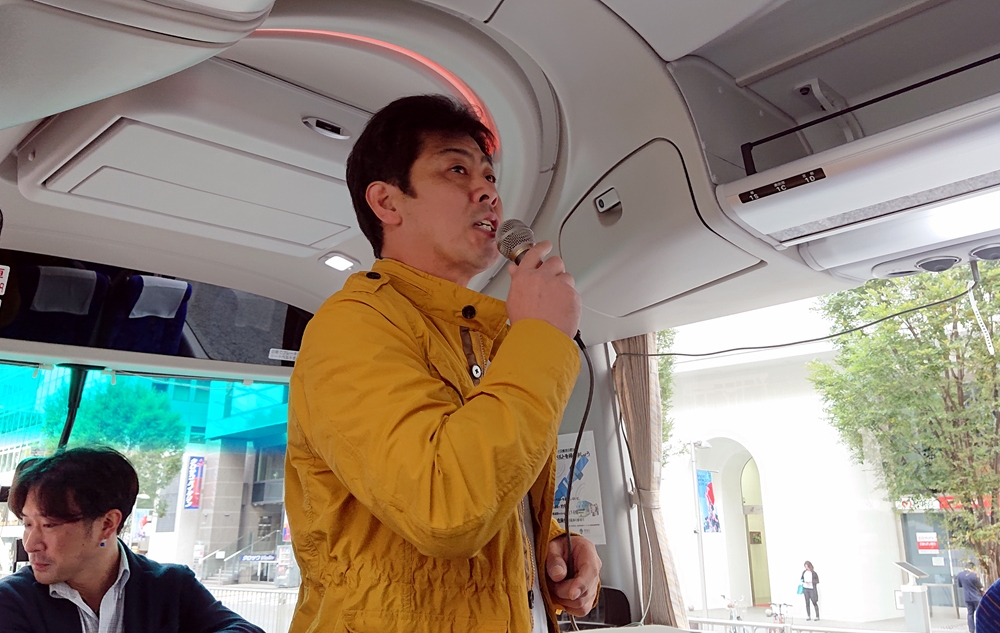 渋谷の宮益坂下のビックカメラ付近にバスを配車。