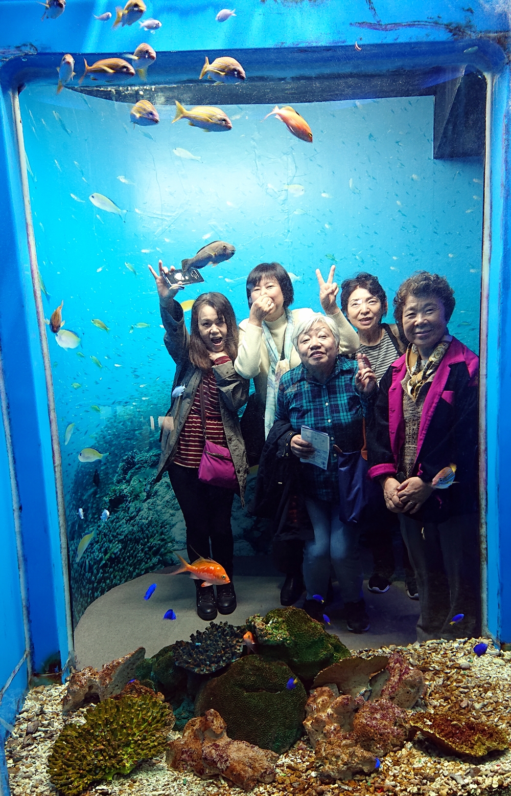 面白いフォトスポットがありました。西部部分会のマーメイドたちが、お魚と御戯れ。