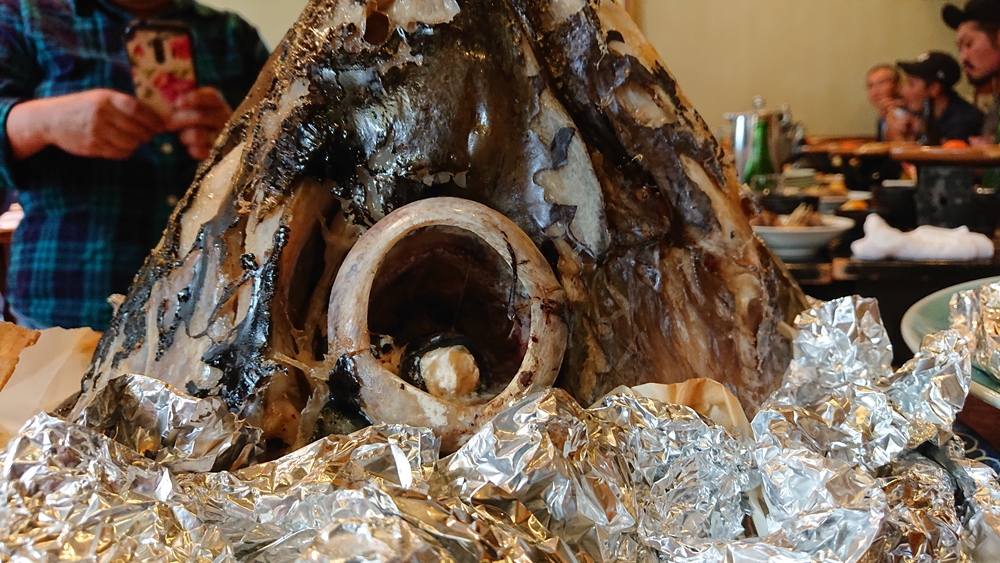 もう一つの目玉はマグロの頭。おなかいっぱい溜めました。