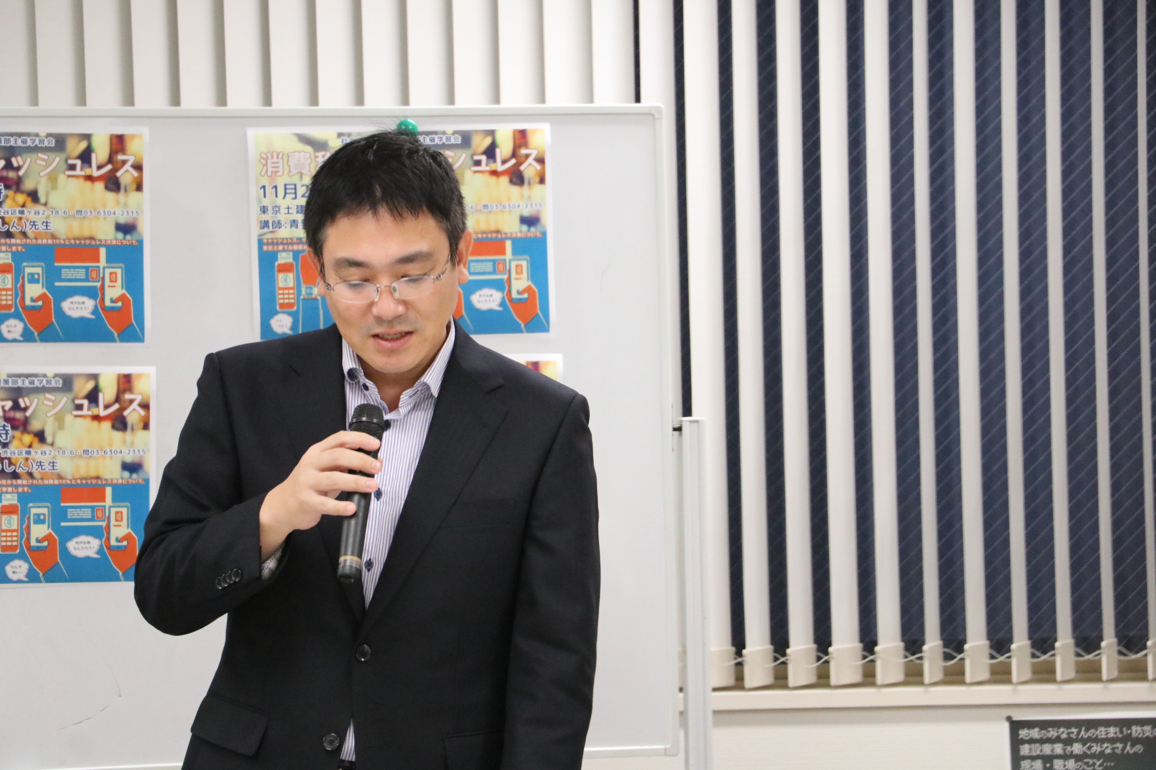 前半に、事業所にとっての消費税の問題点を話してくれたのですが、これもうむちゃくちゃです。軽減税率とか、確定申告の仕方とか、インボイスとか、税理士も嫌になるような仕組みです。困ったら東京土建に相談してください。
