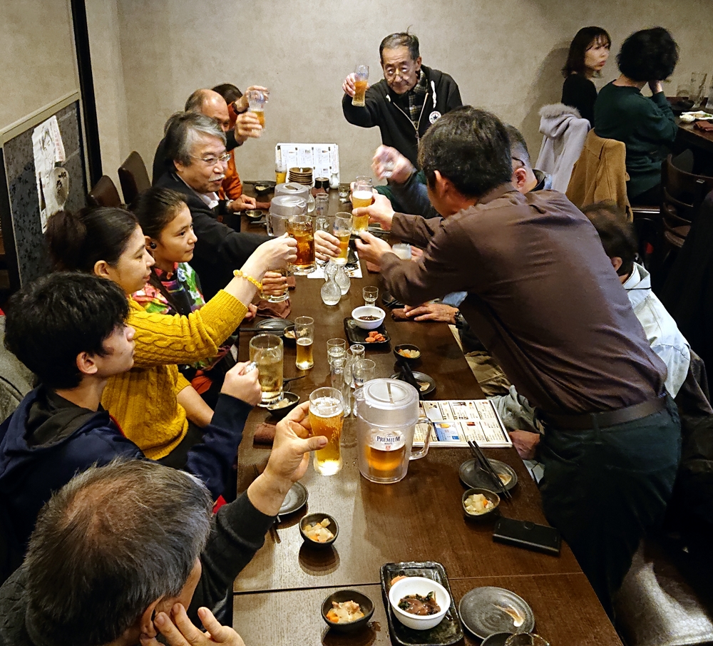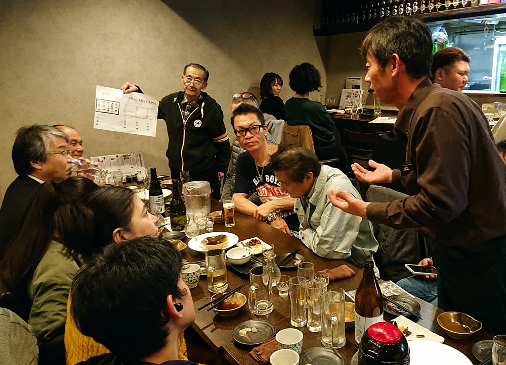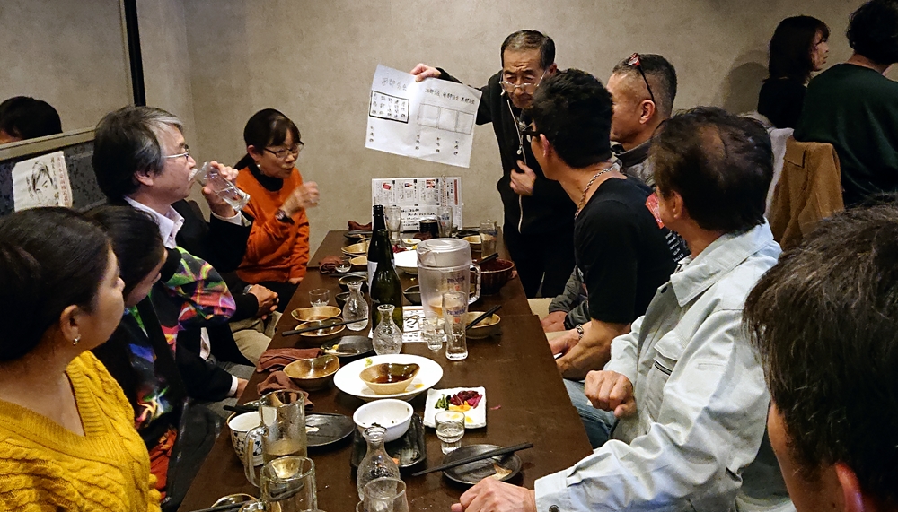 今回は時期も時期なので新年会的なノリで、日本酒飲み放題の富士喜商店で開催。