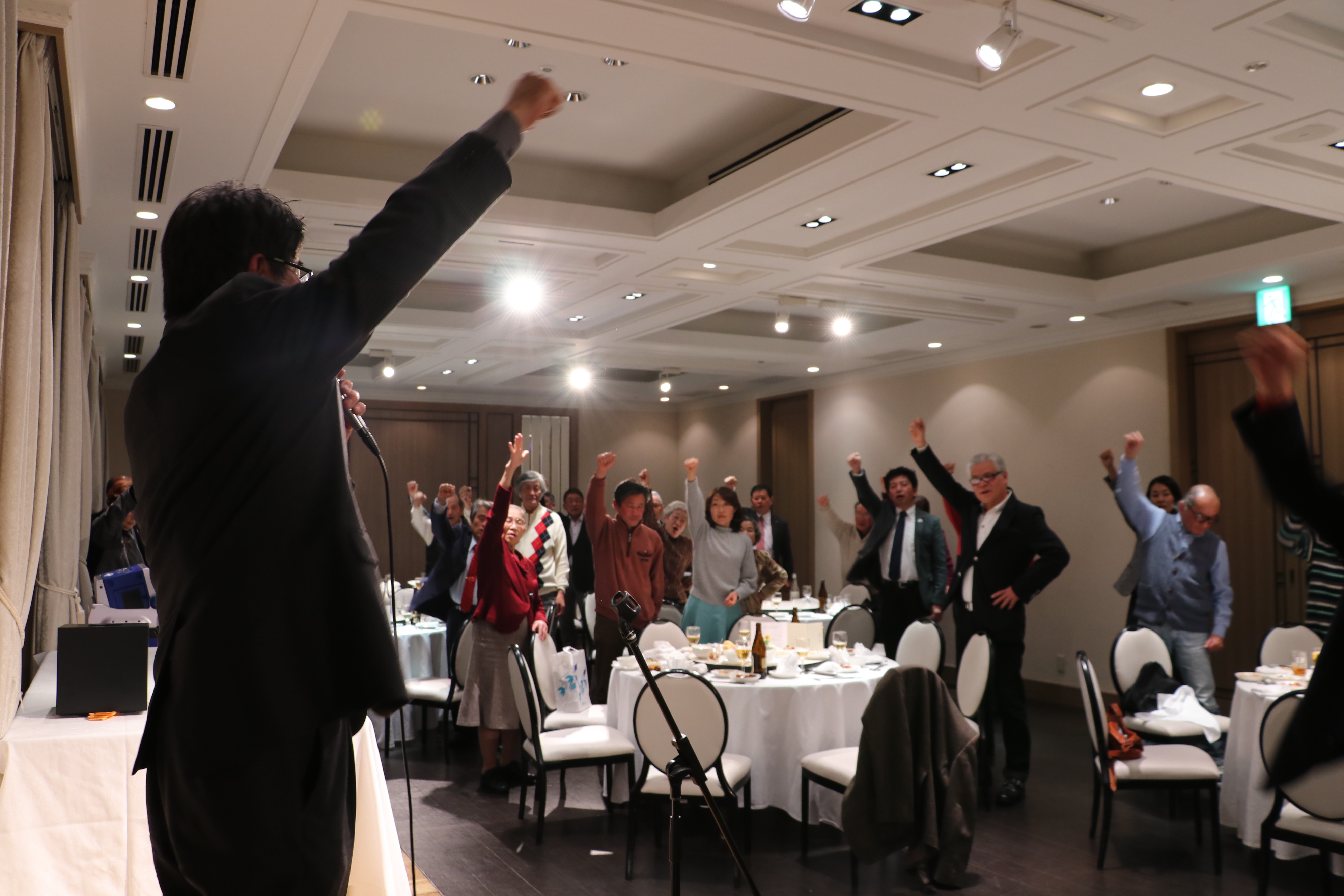 富田國男分会長による主催者あいさつなど一通り済ませ、85人で乾杯!