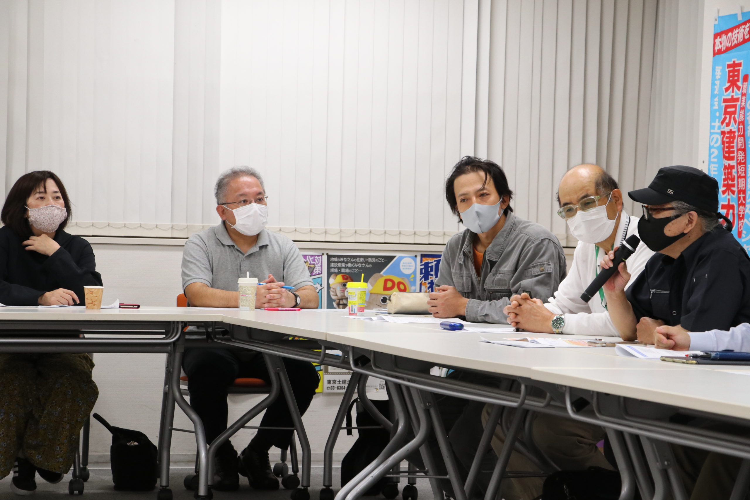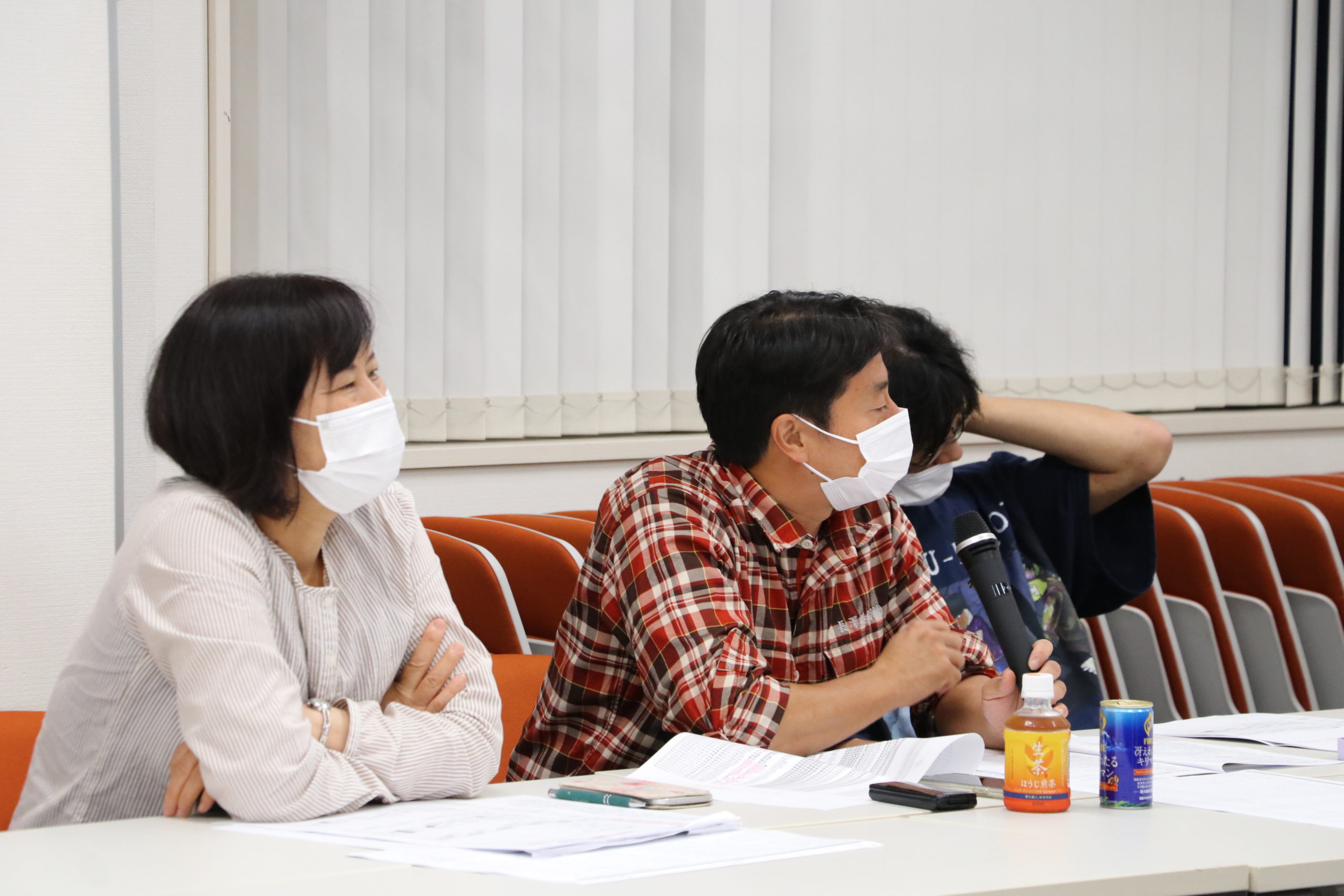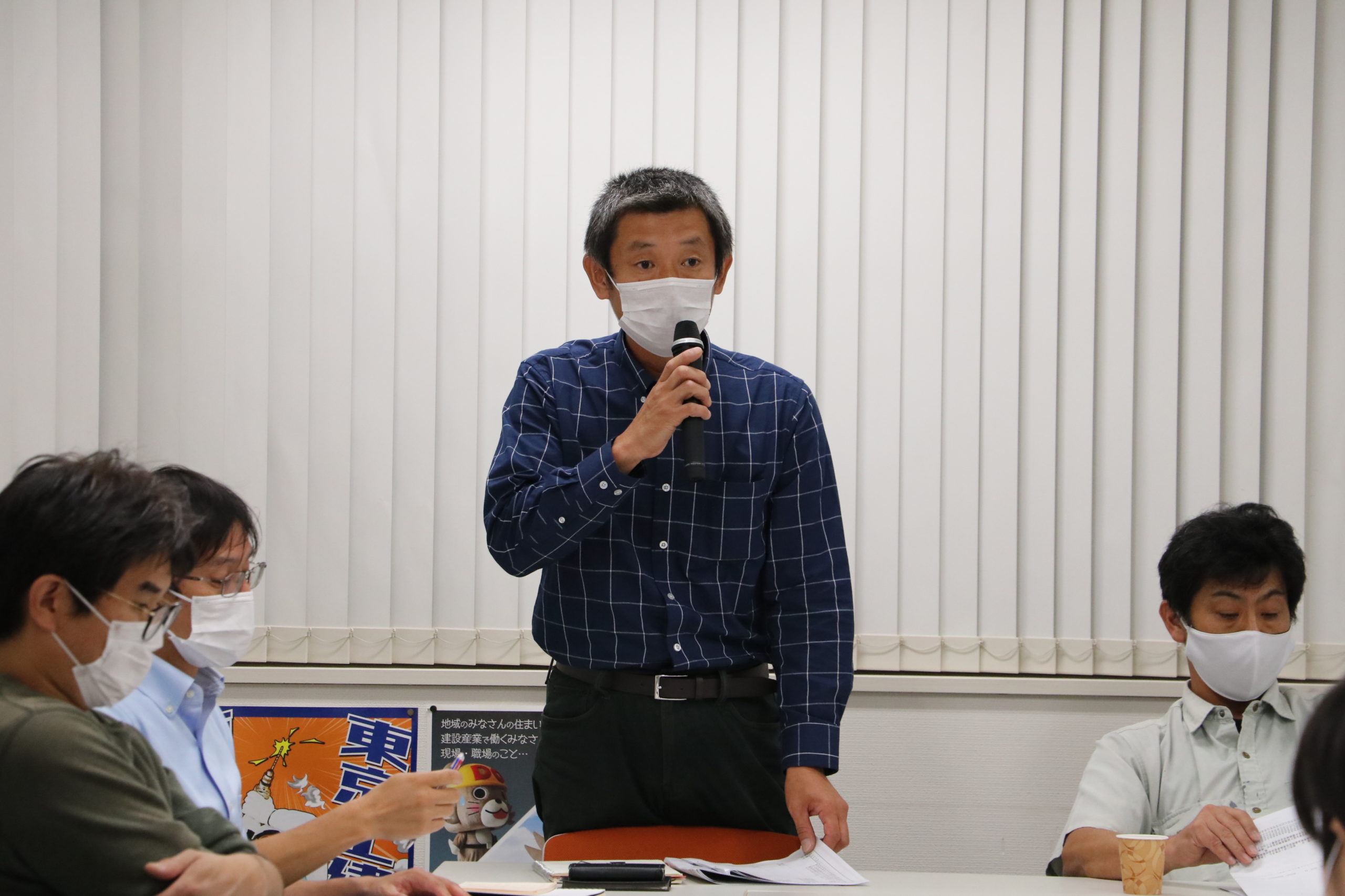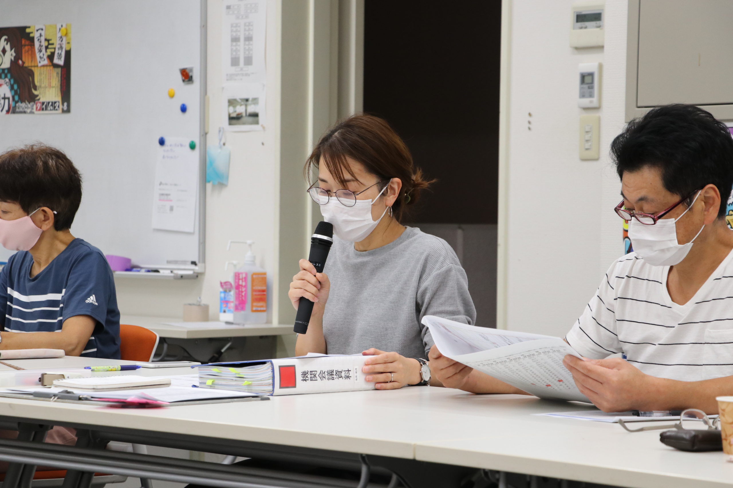 全都の拡大状況や、土建国保減免制度の利用状況を報告する本部の木村さんと小嶋さん。