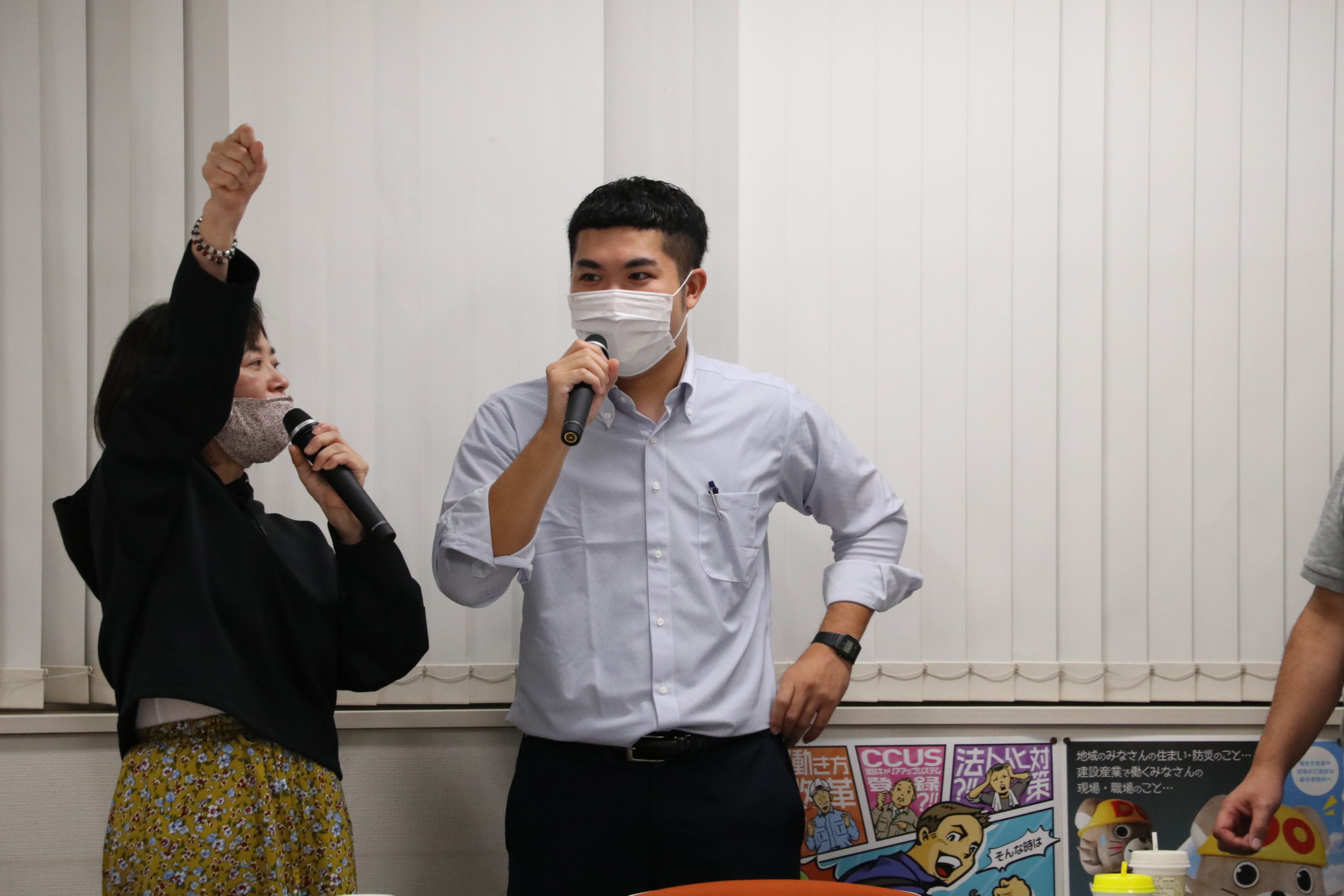 大手現場で働く鳶の濱岡さんから「現場で組合員を増やすための声かけって難しい。皆さん出来てますか?」という質問が。