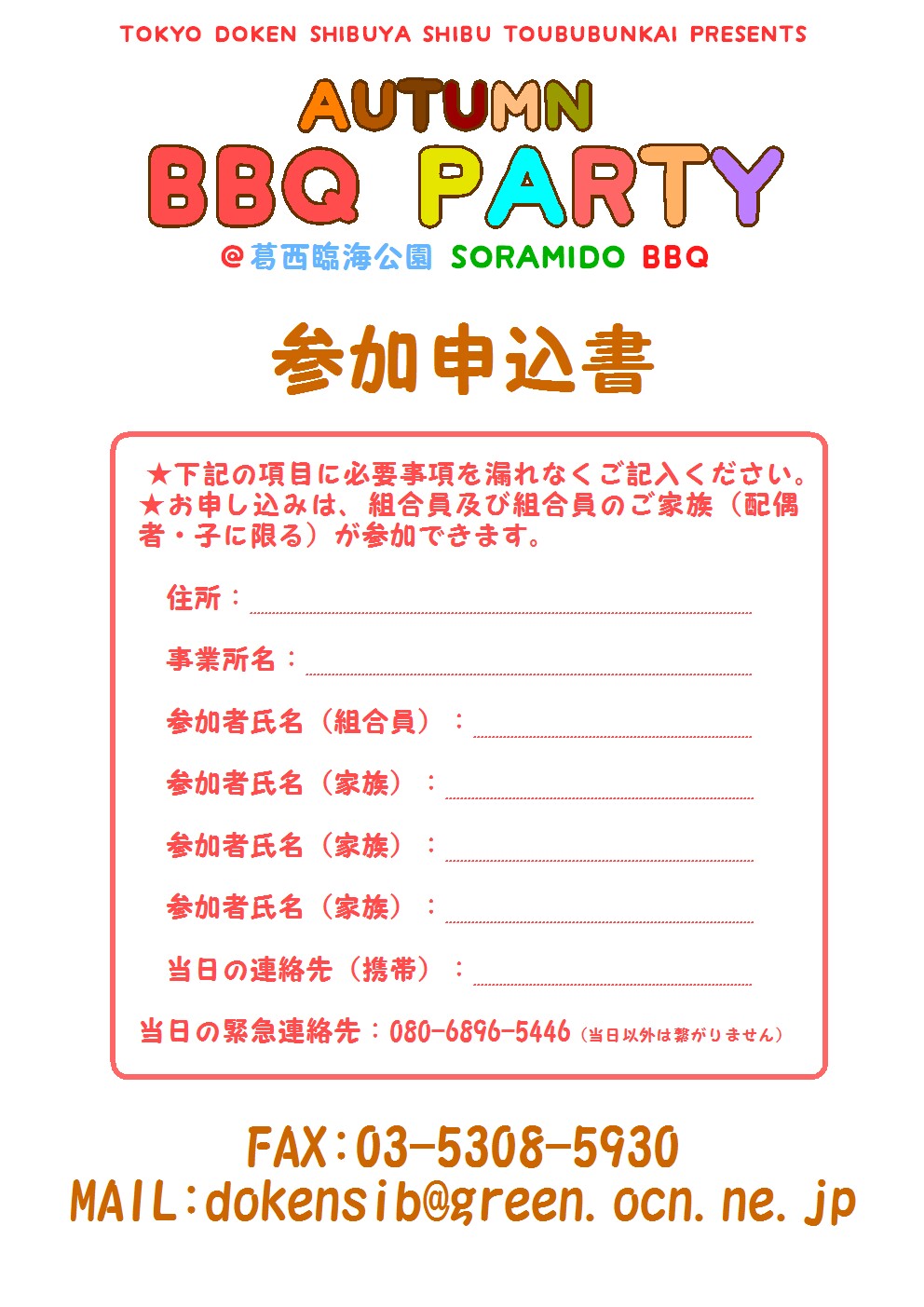 東部分会BBQ申込チラシ