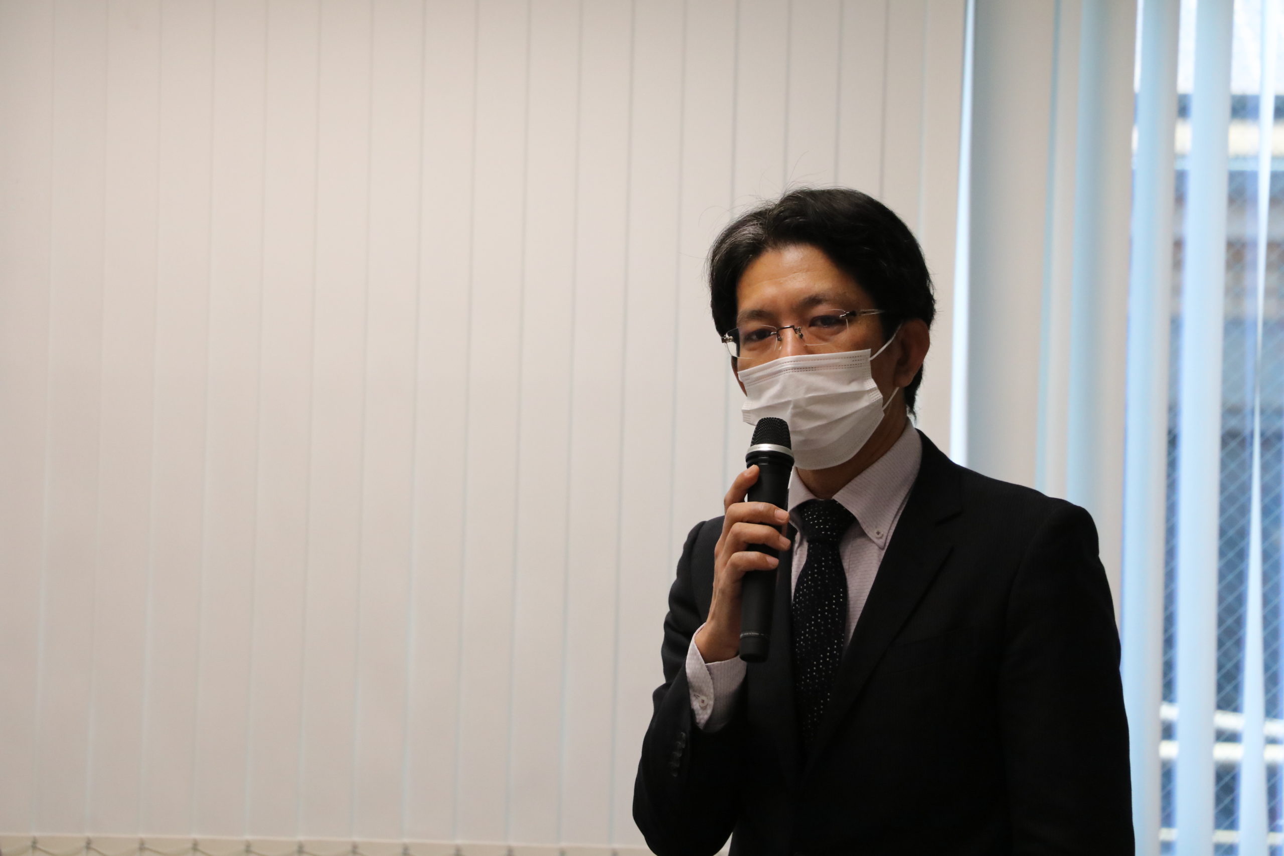 朝9時30分、まずは伊藤委員長、本部小嶋書記、加藤書記長が挨拶。