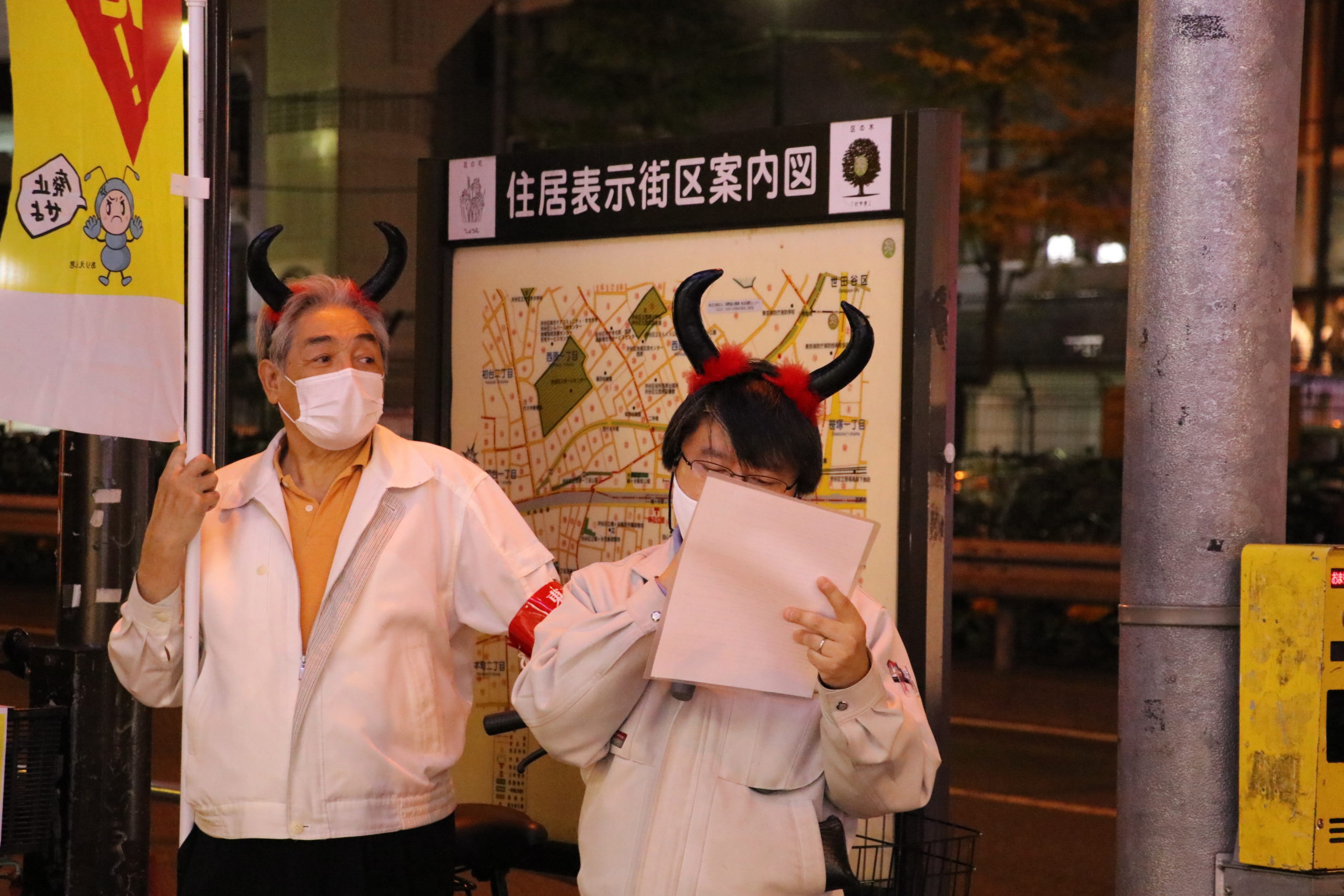 ハロウィンで有名な渋谷らしく、今回は署名の数よりも楽しくて注目される事を優先しました。結果は、仮装をしなかった前回に比べ1筆少ないだけでした。