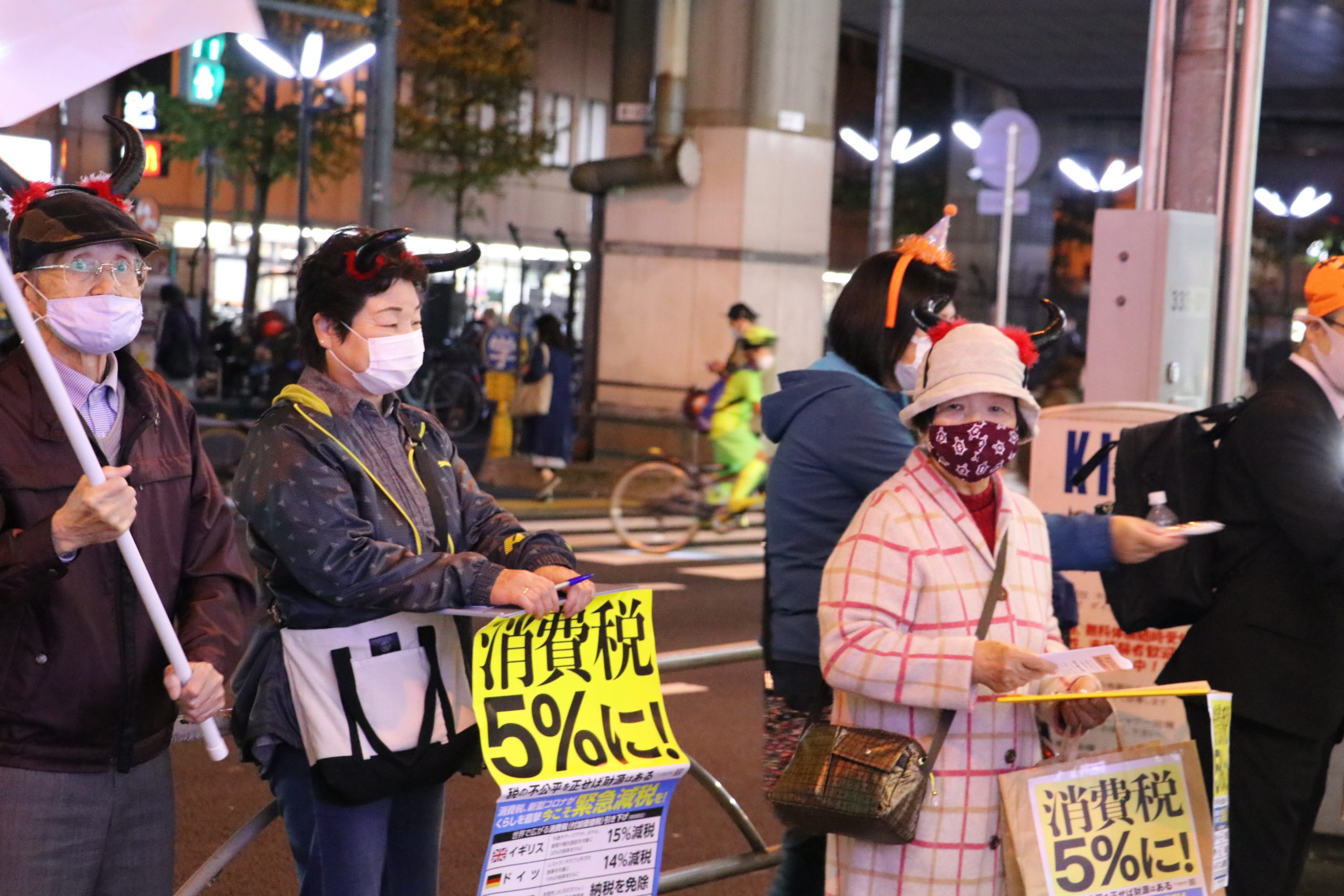 10月26日月曜日、毎月恒例の消費税減税宣伝をおこないました。