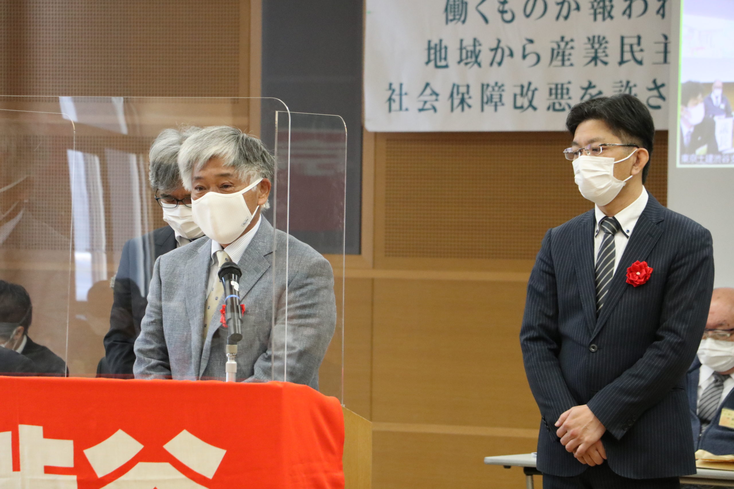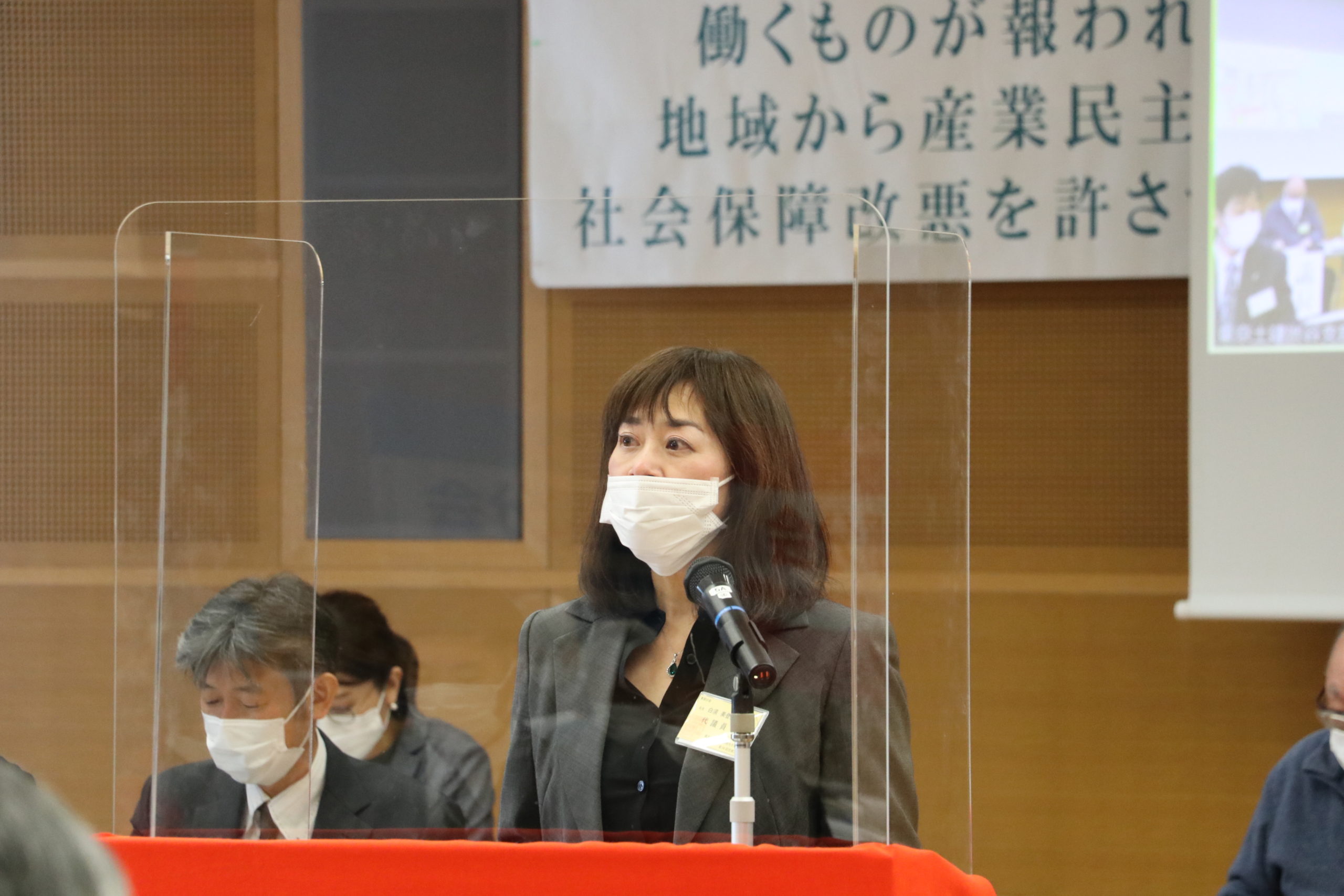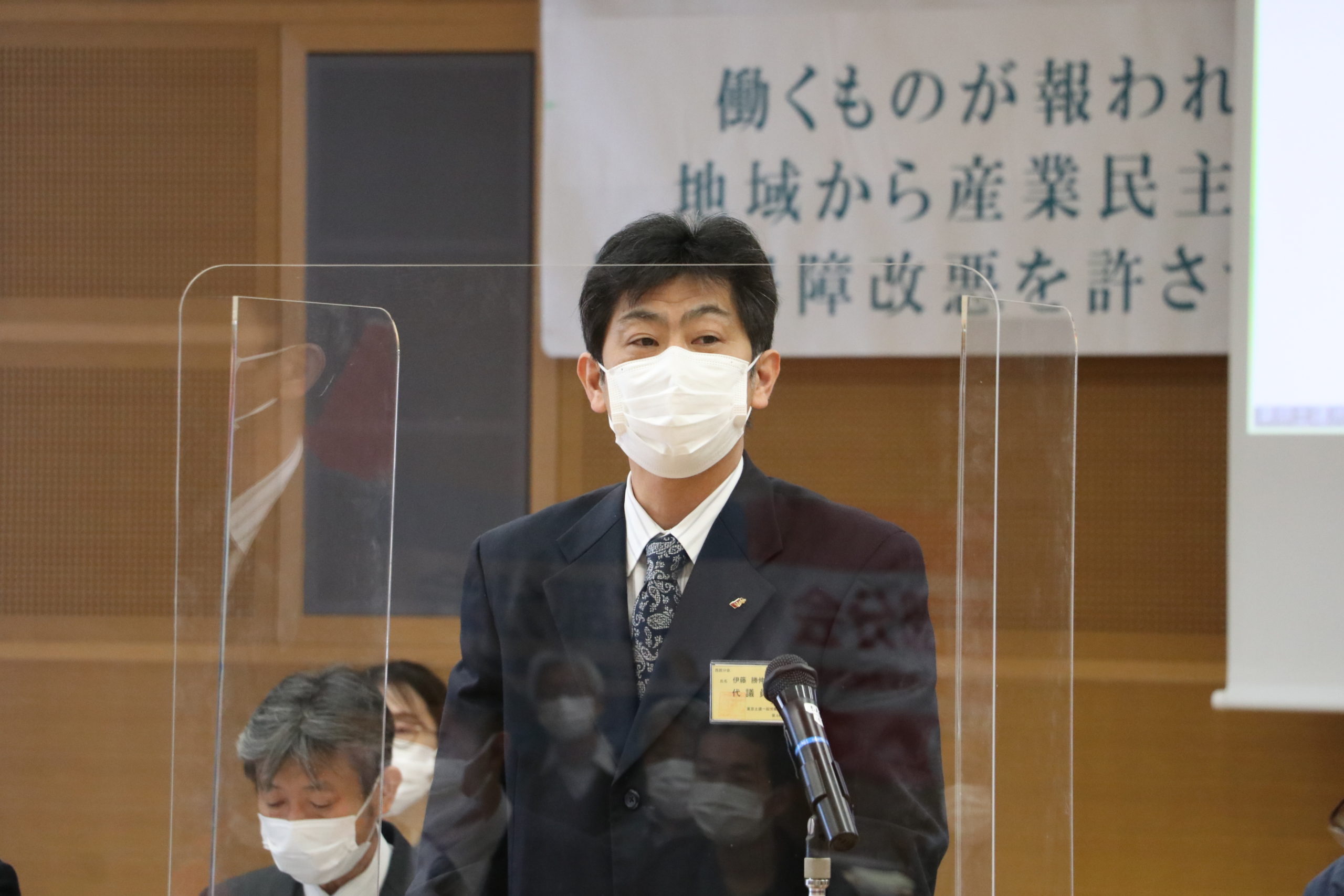 加藤書記長による、2020年度の主な運動の経過報告と2021年度の方針提案。