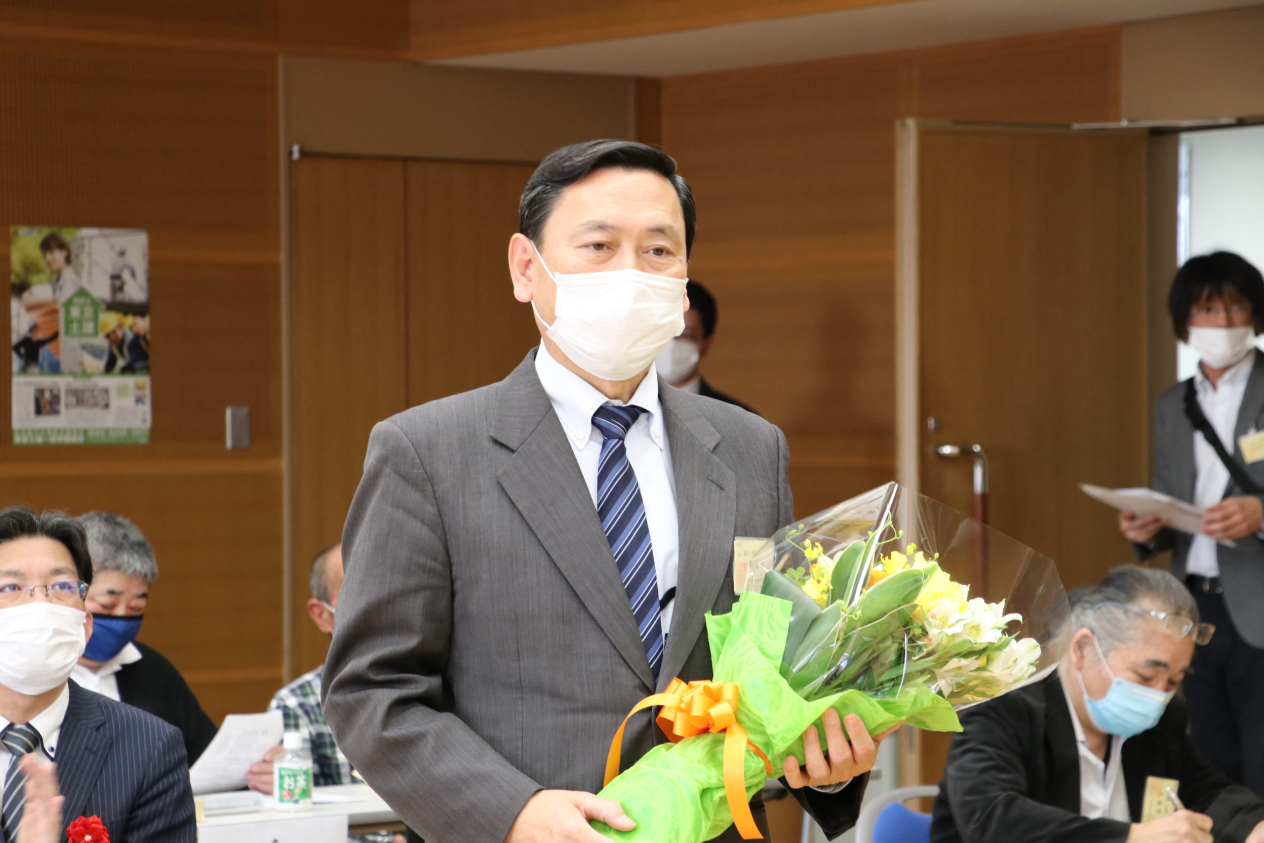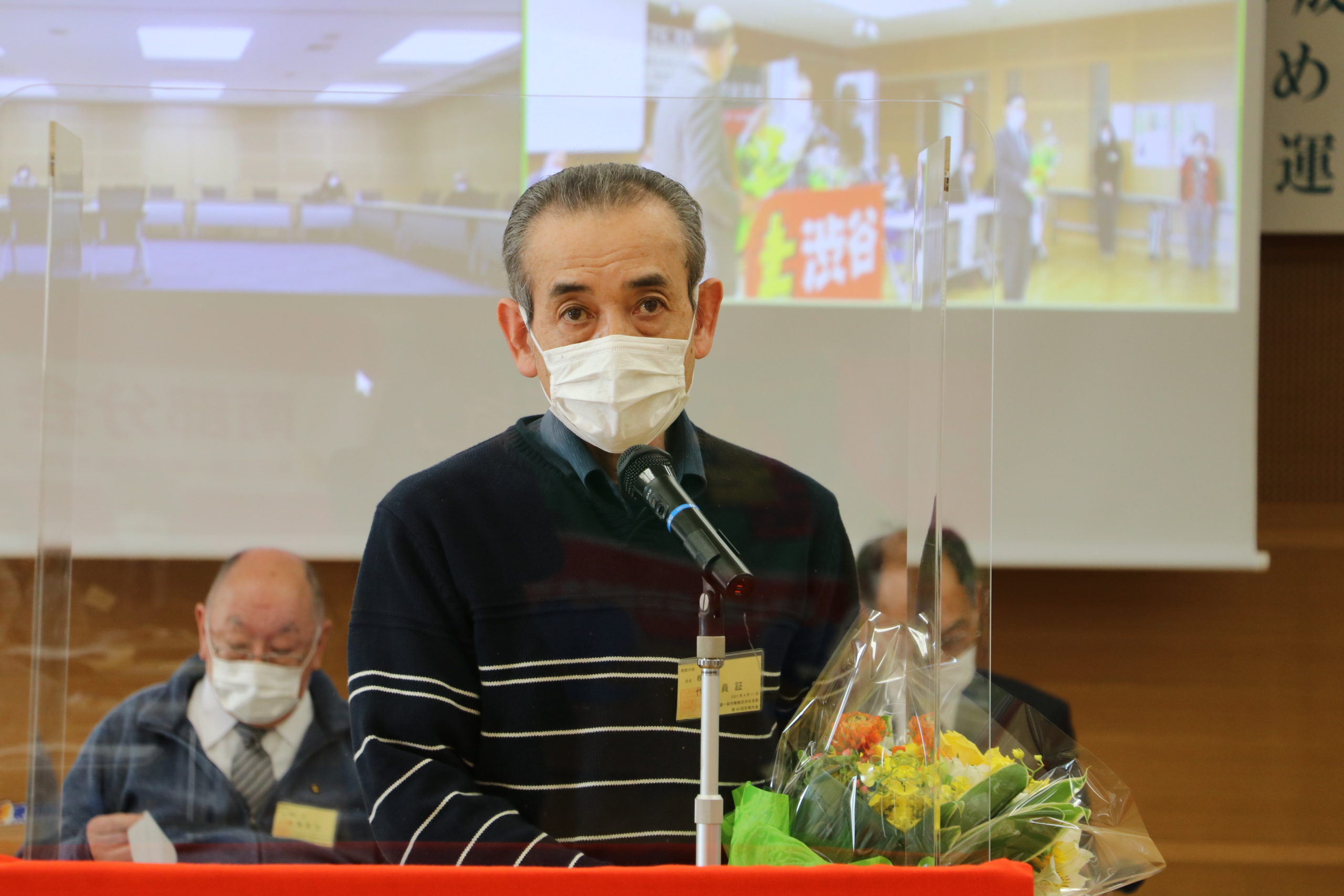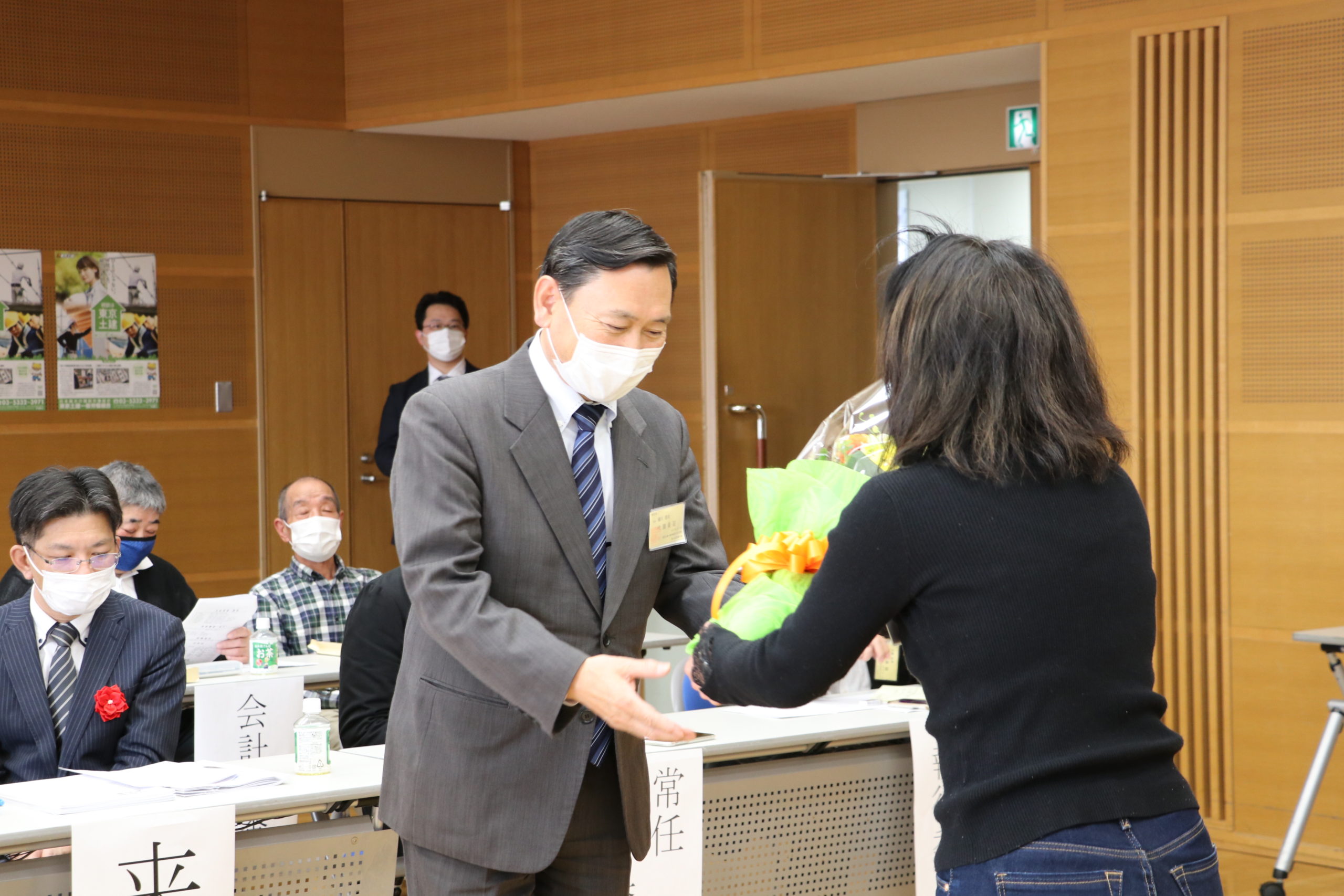 バトンタッチ交流会が出来ないため、ここで花束を贈呈。