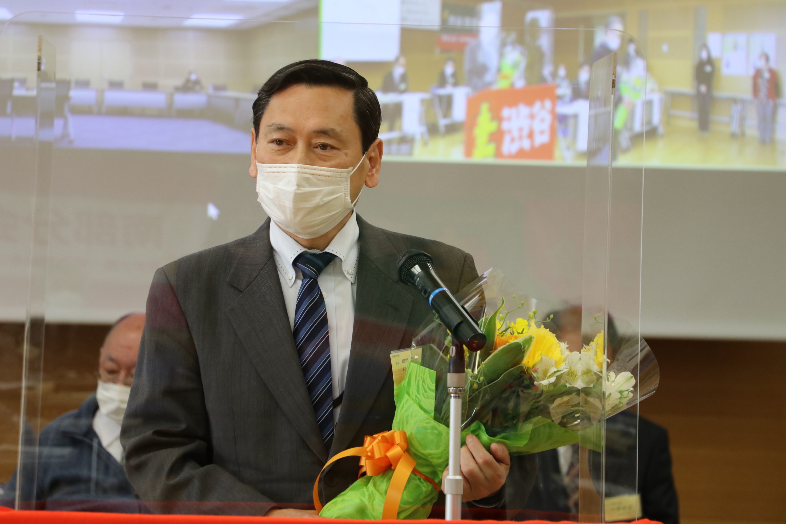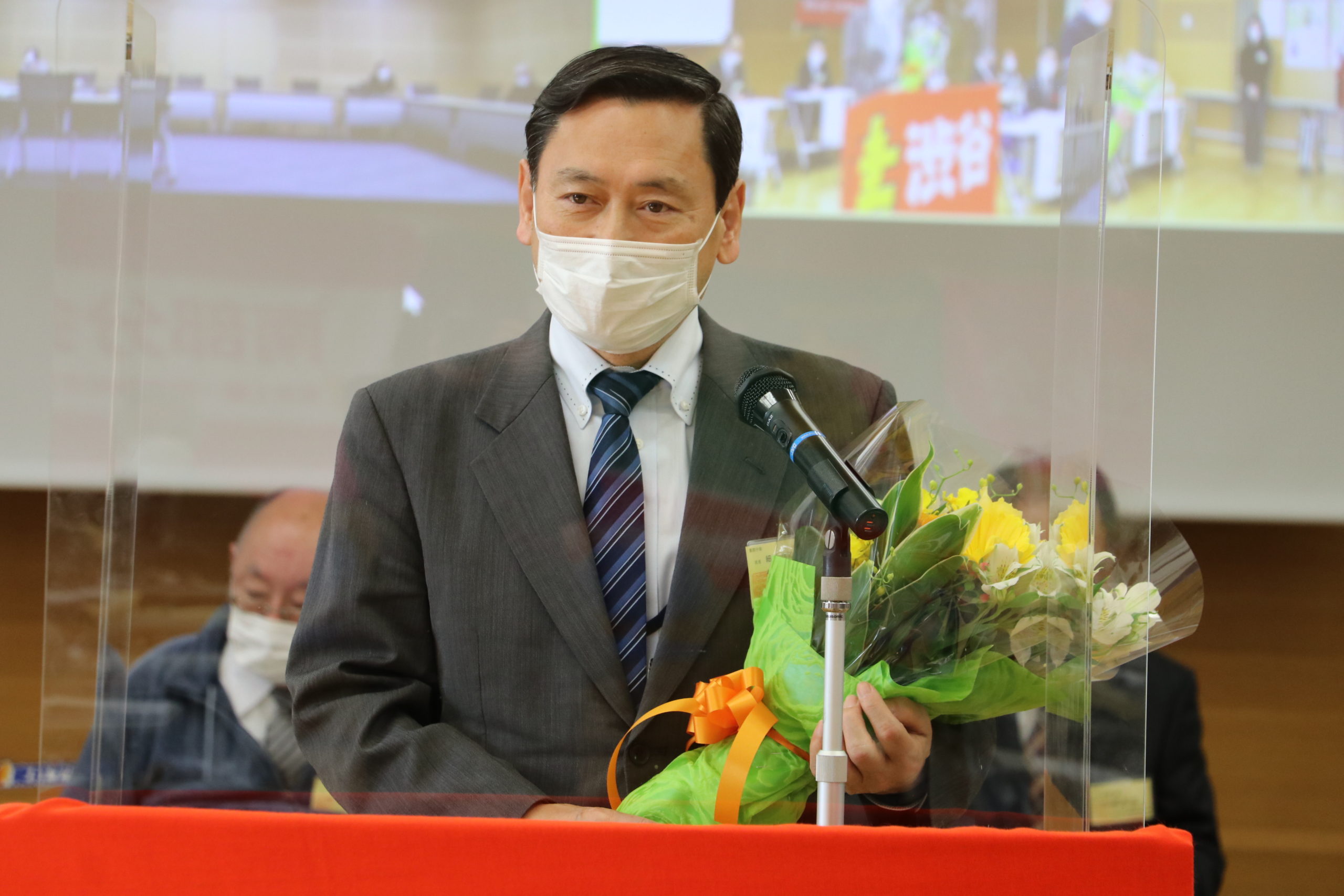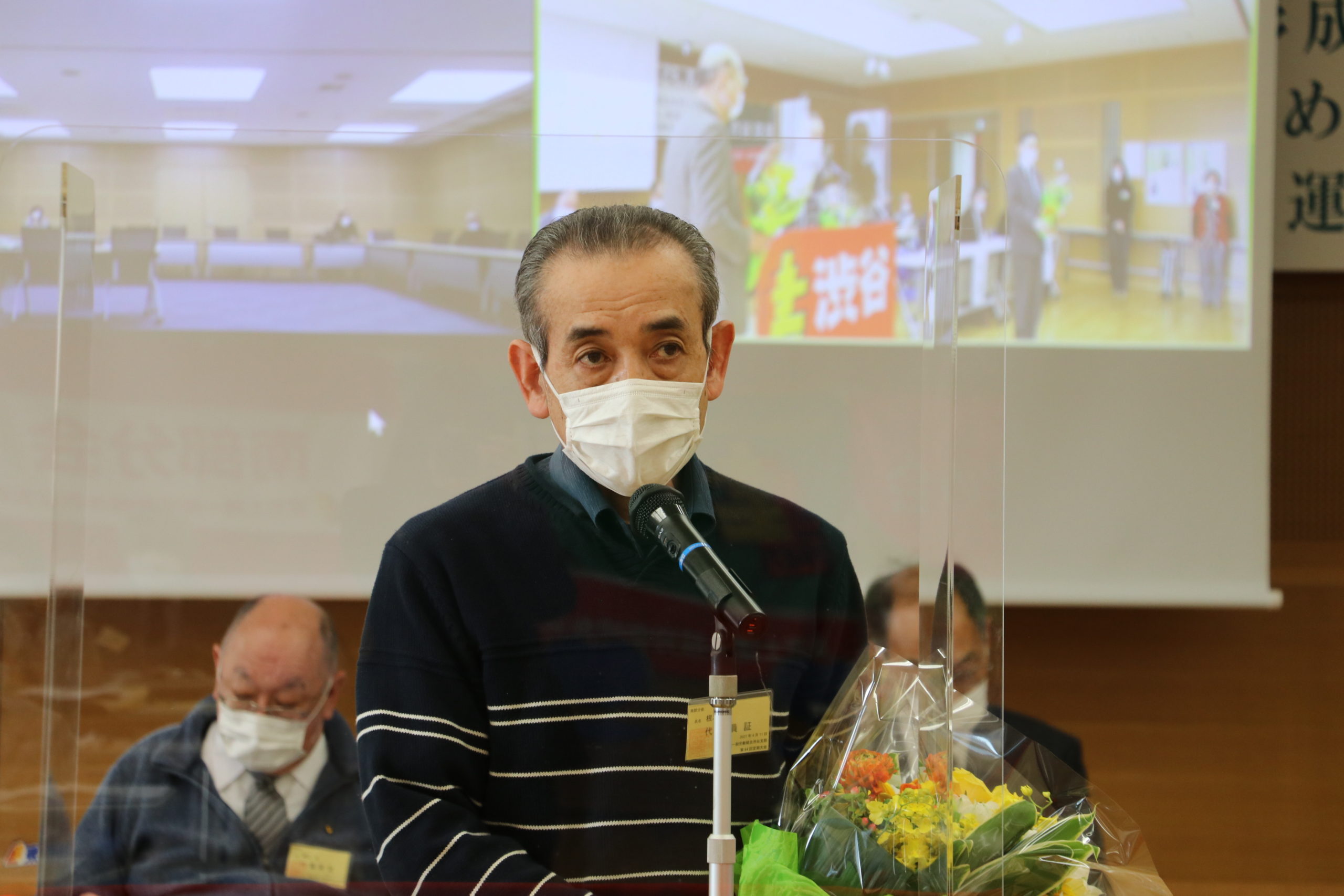 バトンタッチ交流会が出来ないため、ここで花束を贈呈。