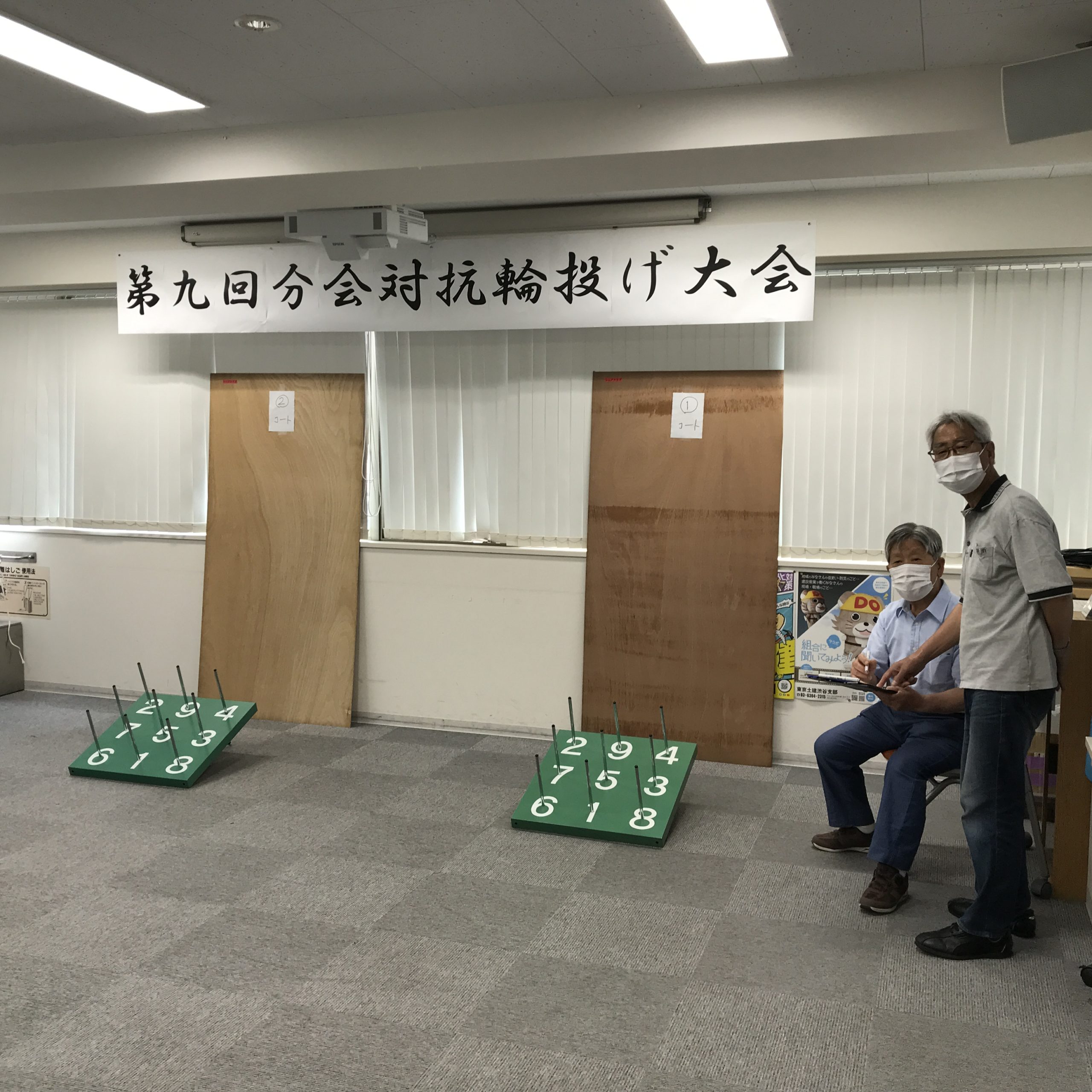 6月20日(日)、年に1回の年代関係なしの分会対抗輪投げ大会に参加しました。輪投げは縁日になる景品をもらう輪投げではなく立派な競技です。