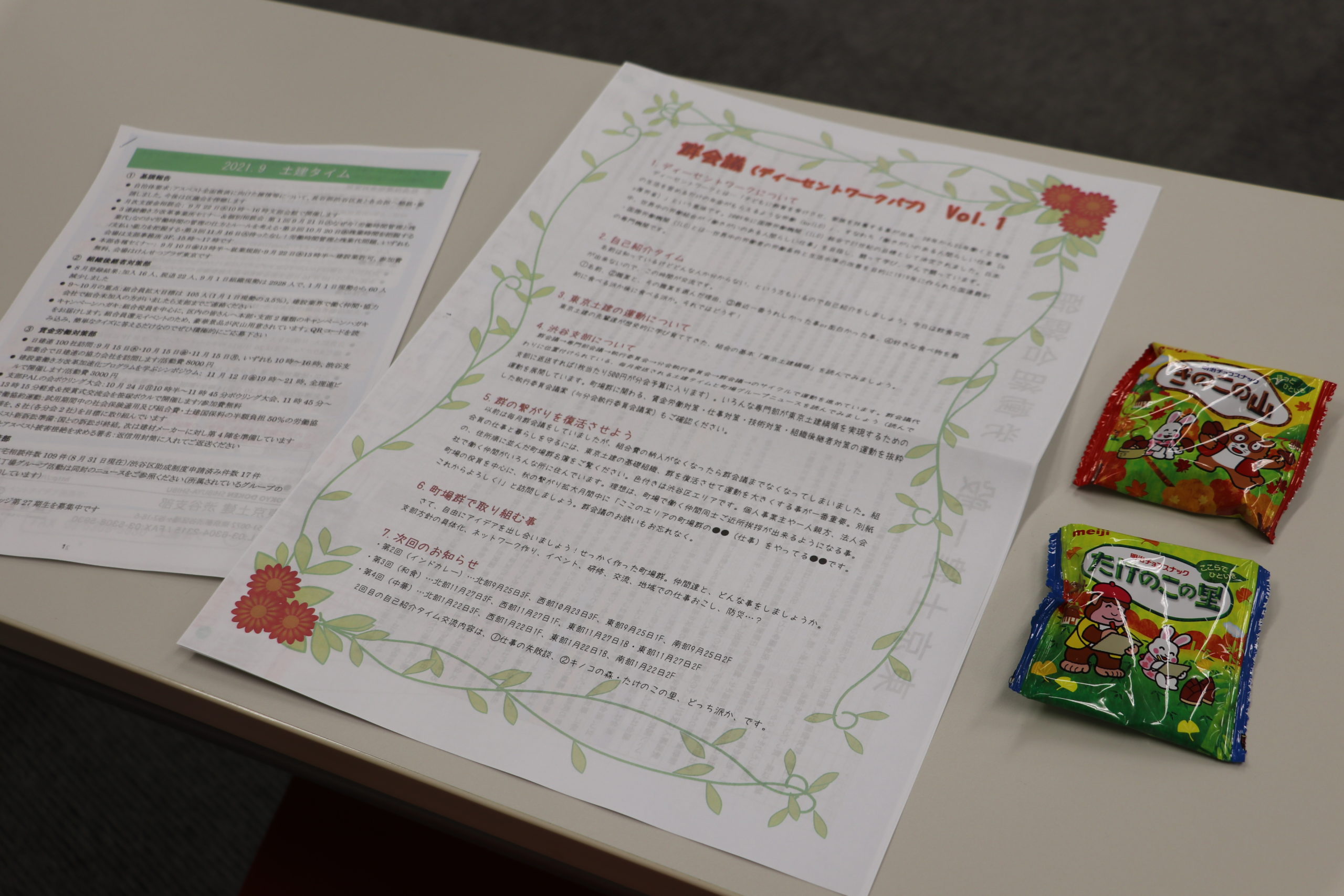 自己紹介時に「突然質問されても思いつかない」という方もいたので次回の交流内容を予告して解散。テーマは、①仕事の失敗談、②きのこの森・たけのこの里、どっち派か、です。お土産のお菓子を食べて決めておいてくださいね。