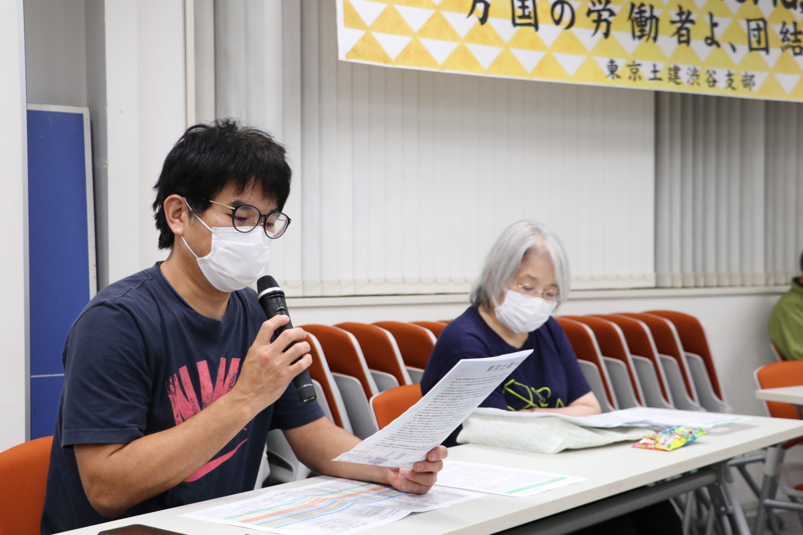 最後に西部分会町場群責任者の門田さんが、分会で取り組んでいるアンケートなどの説明と、