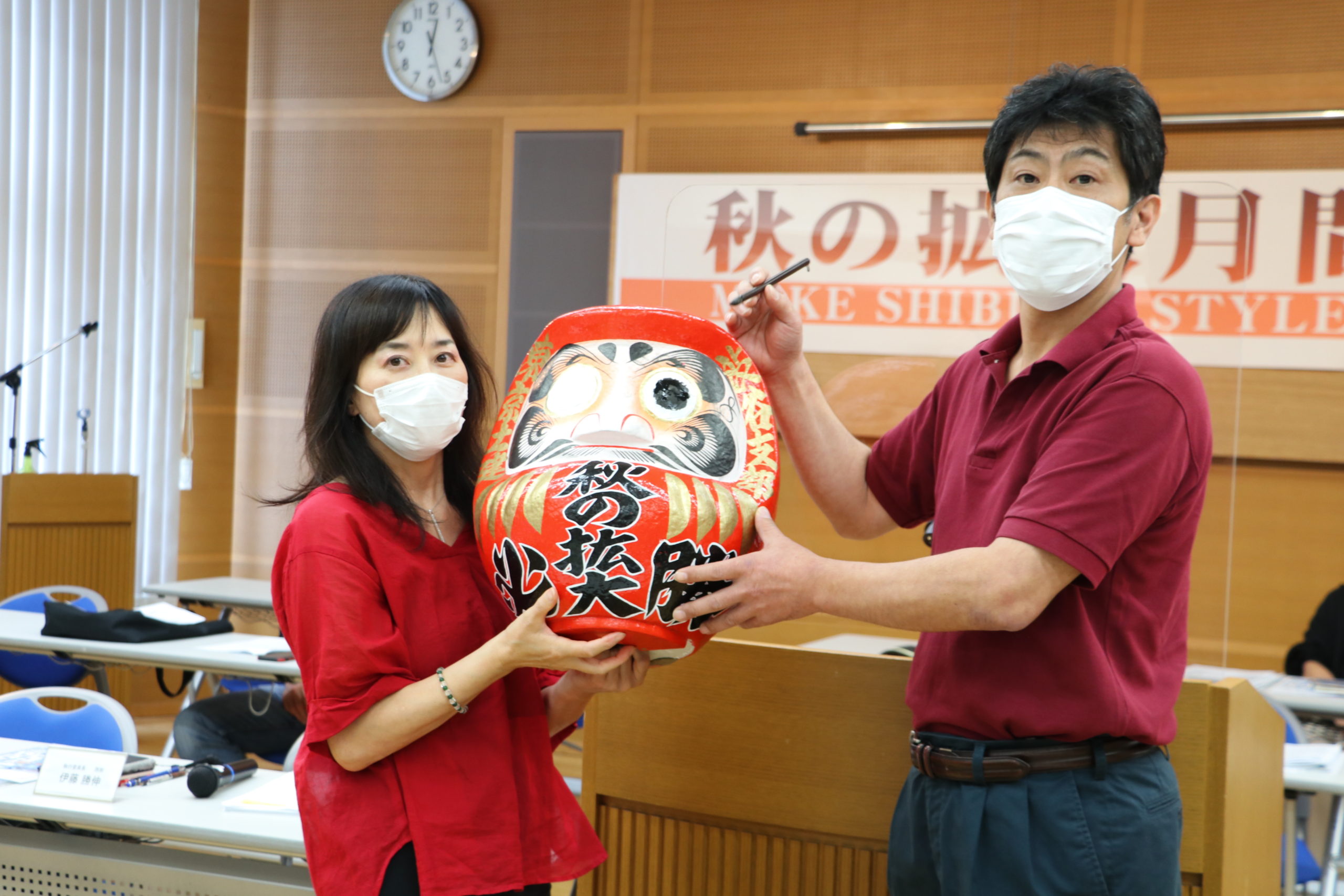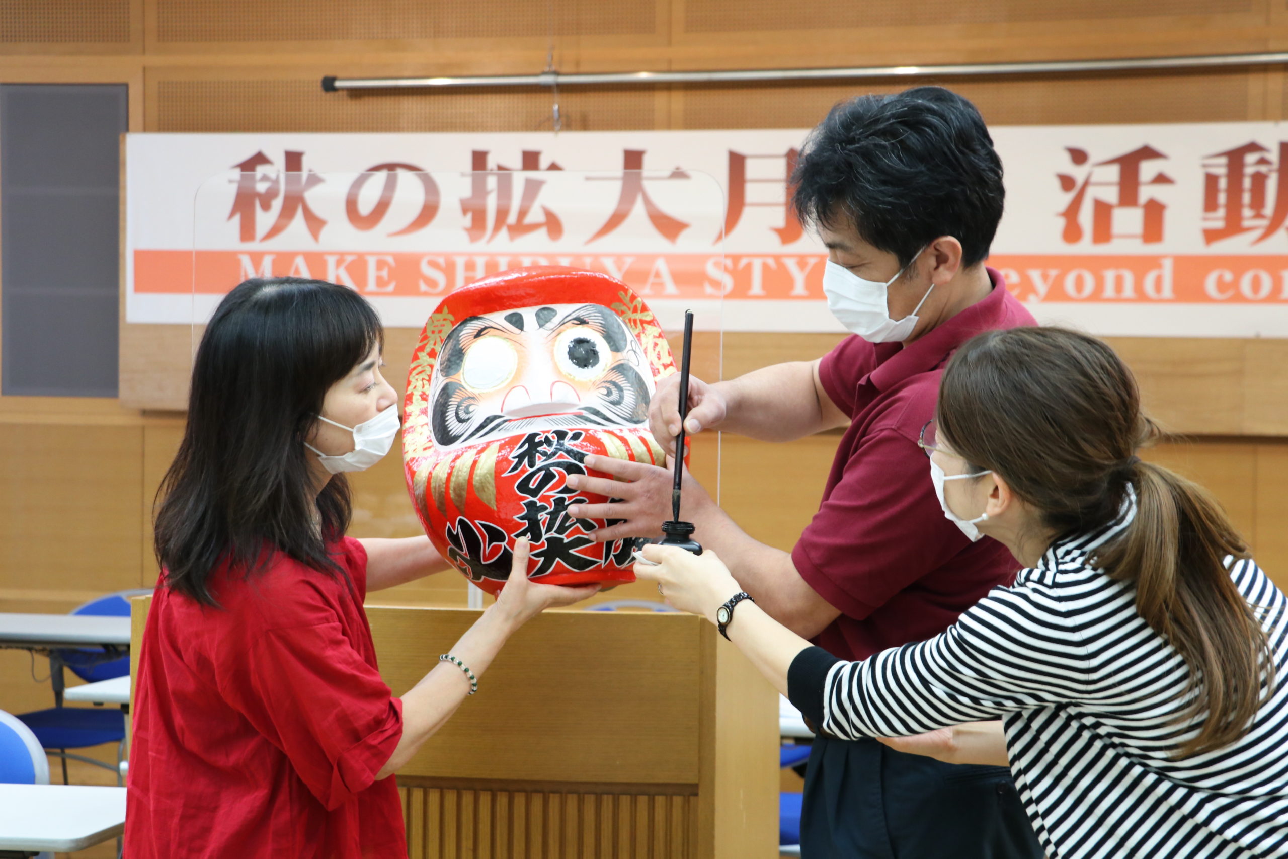 春・夏の取り組み課題の分会表彰を行い、秋の拡大月間目標達成へ向けダルマの目入れをし、団結してガンバローと意志統一し閉会しました。