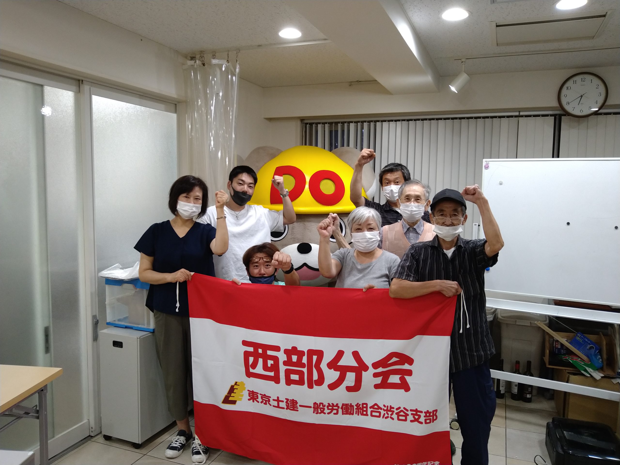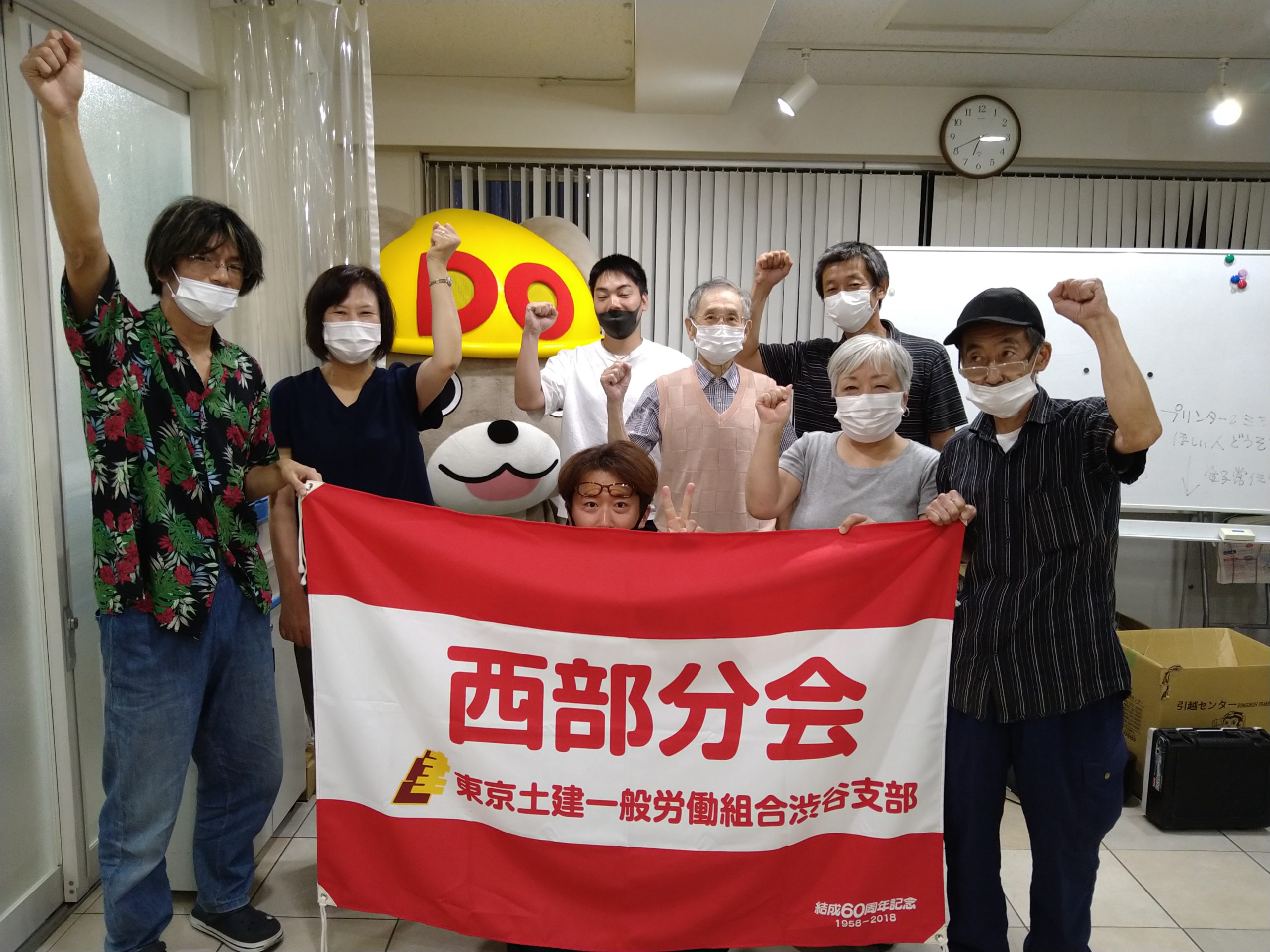 みんなで話をして、「やれることをやっていこう」「目標は10人で良い」「電話かけする人、拡大に行く人、頑張るよ」と、良い話をしていたと思います。人数が少ないと意見が早く固まるような感じでした。今までのように飲み物や食べ物はなかったのですが、1時間ちょっと話し、ちょうど良かったかなと思っています。最後にガンバローで写真を撮り、おやすみなさいです。
