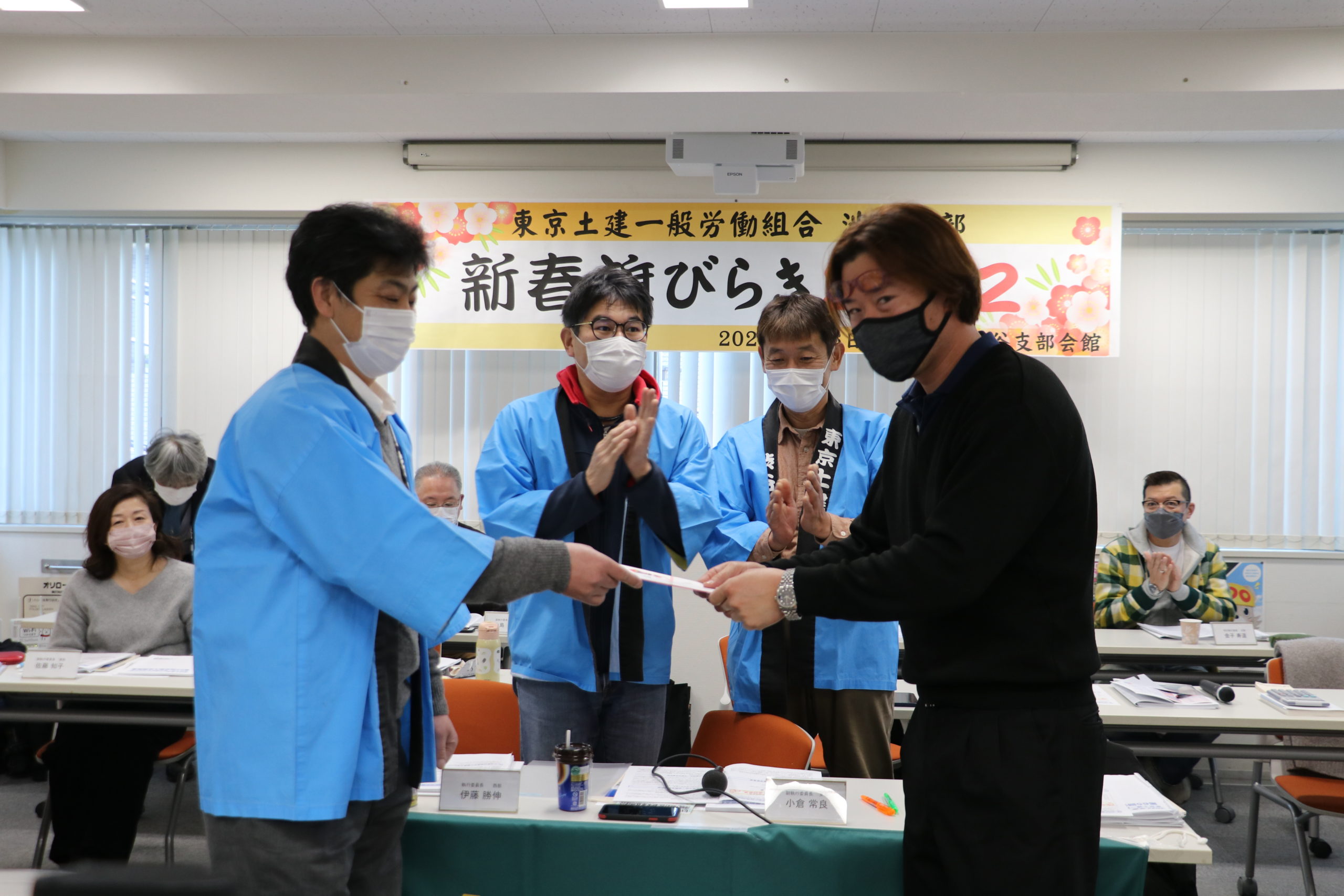 コ ロ ナ 感 染 拡 大 の為 、 1 月28 日 に 東 武 ホテ ル で 行 わ れ る 予 定 でし た 新 春 旗 開 き を 、 2月 6 日 の 1 日 執 行 委 員会 前 に 行 い まし た 。
