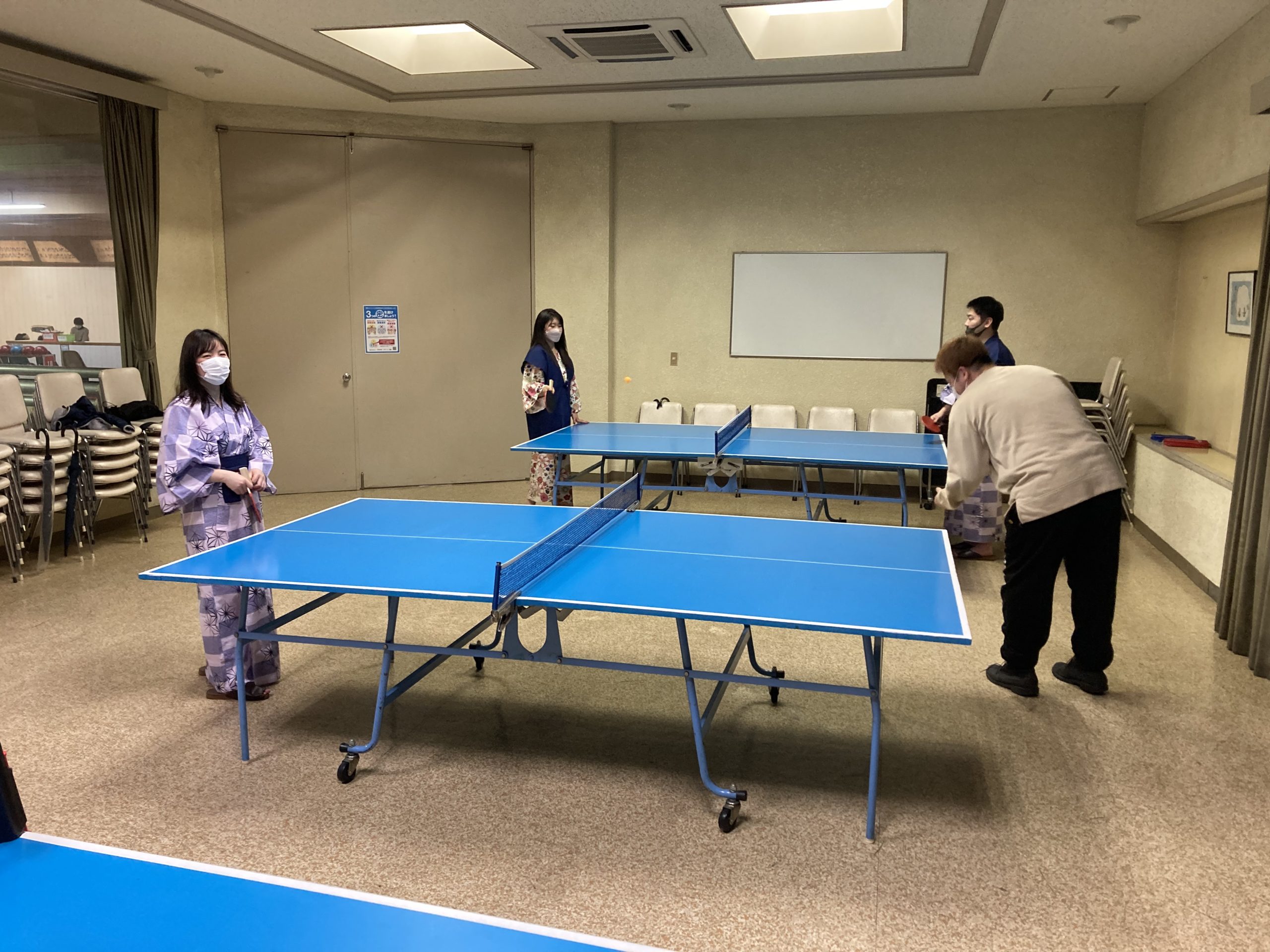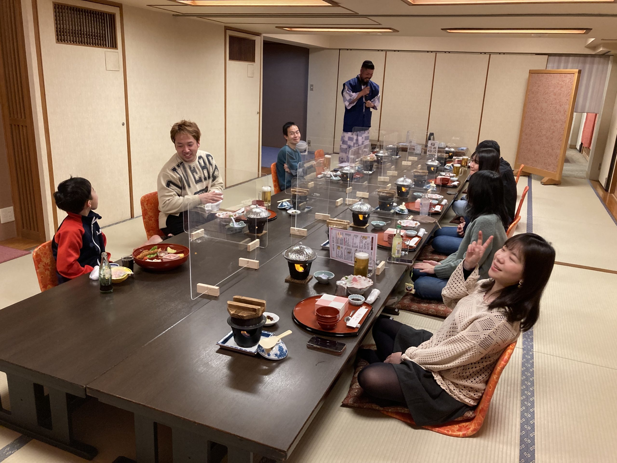 1日目の午後にボウリング大会を行い、予定より1ゲーム延長する程とても盛り上がって楽しかったです。食事も仕切りがあったり、黙食したりでしたが、蕎麦や刺身が食べられて幸せでした。