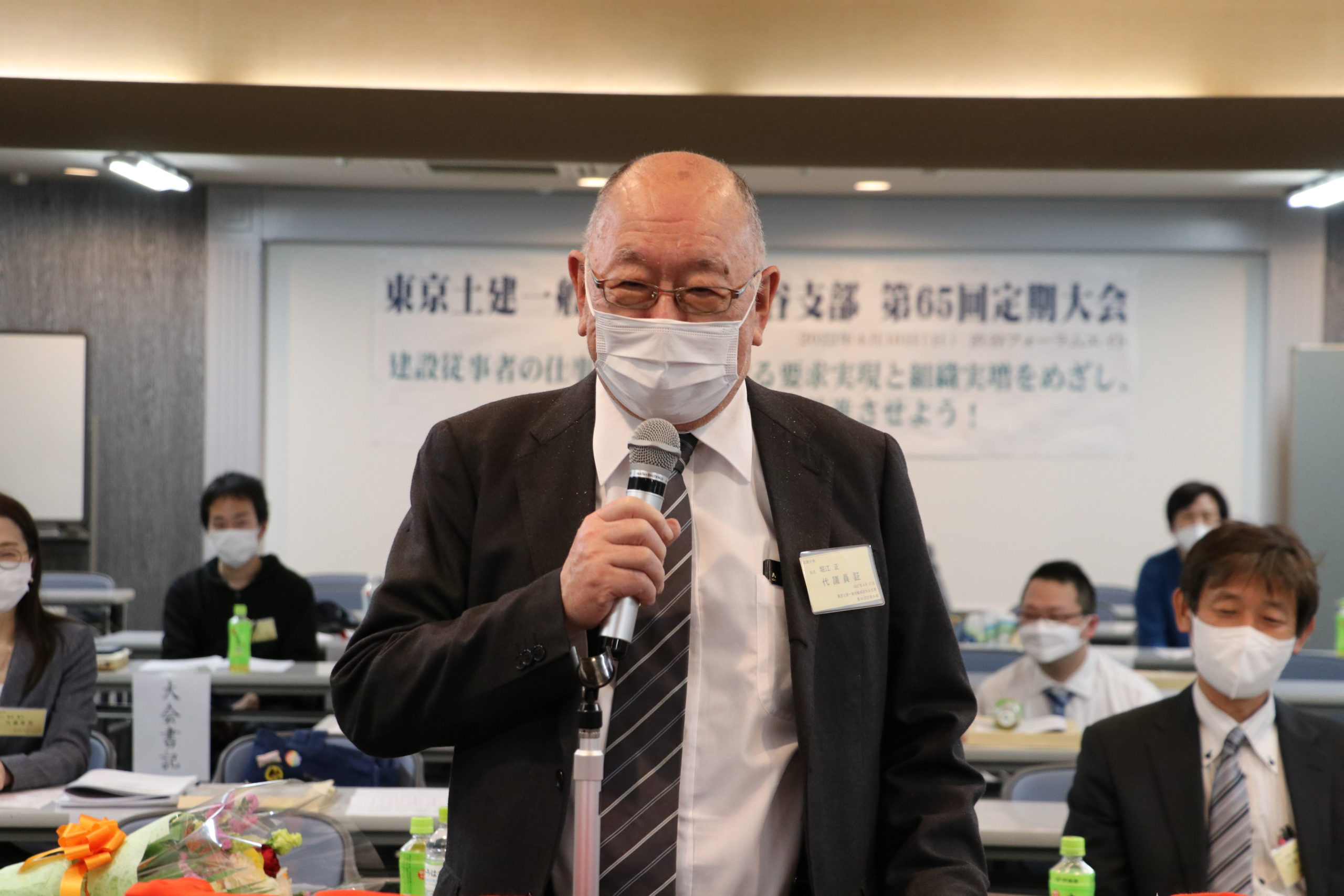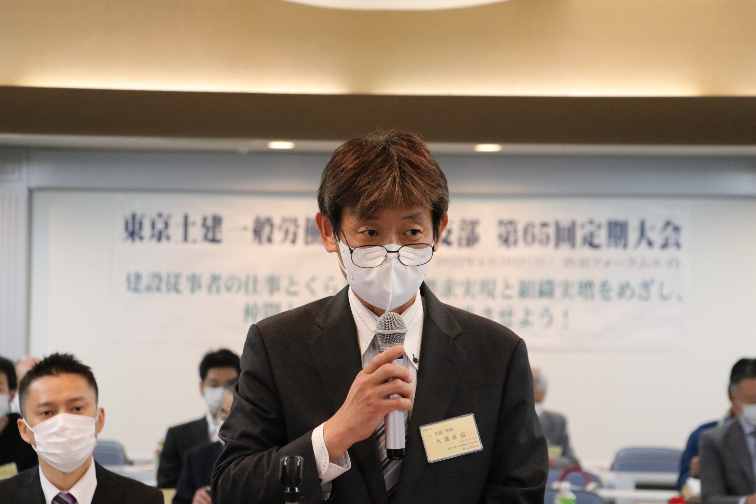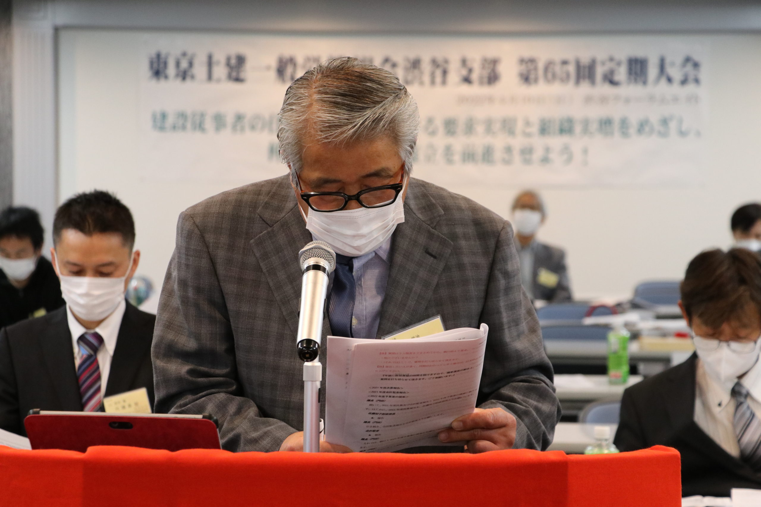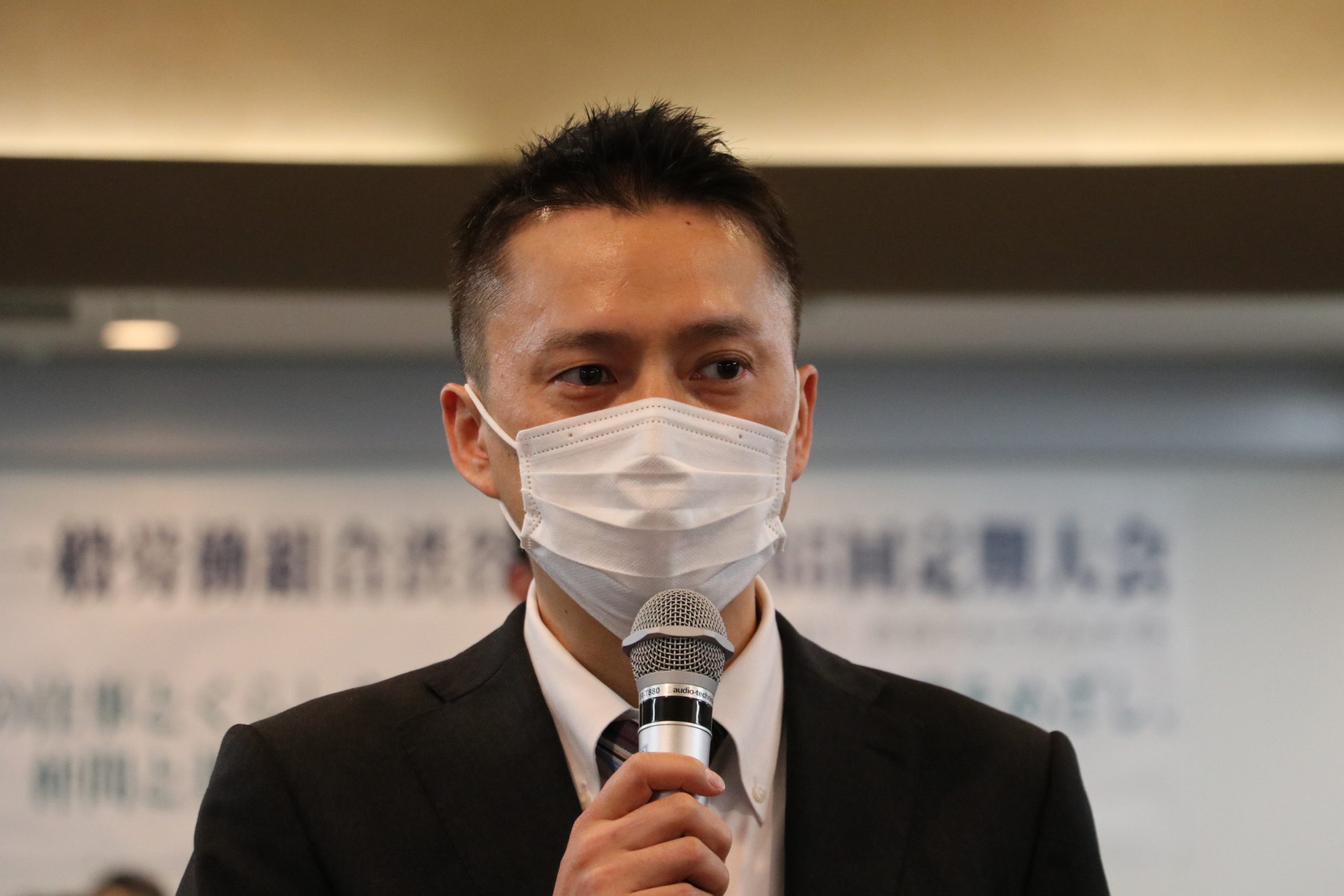 加藤書記長が2021年度の主な運動の経過を報告し、2022年度の方針を提案。