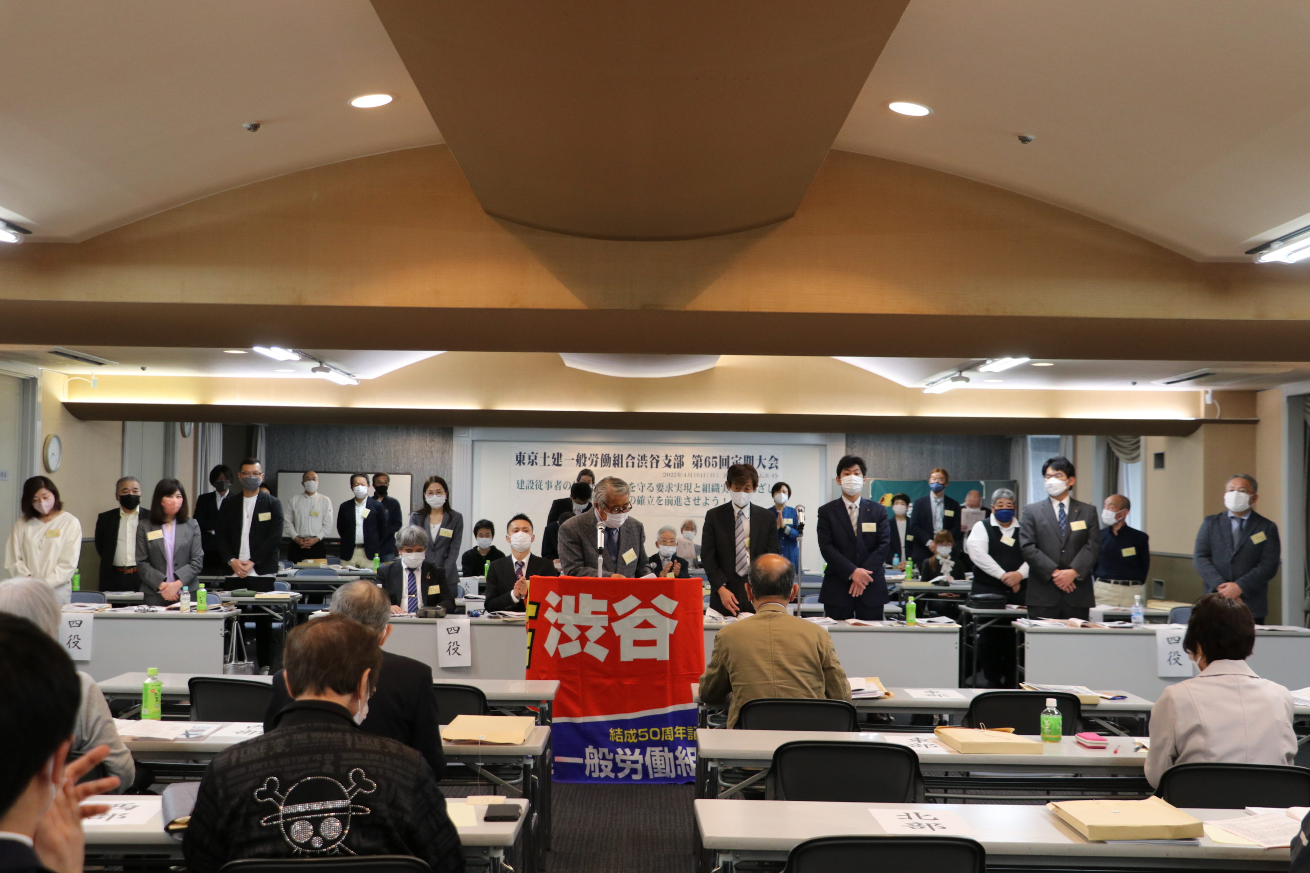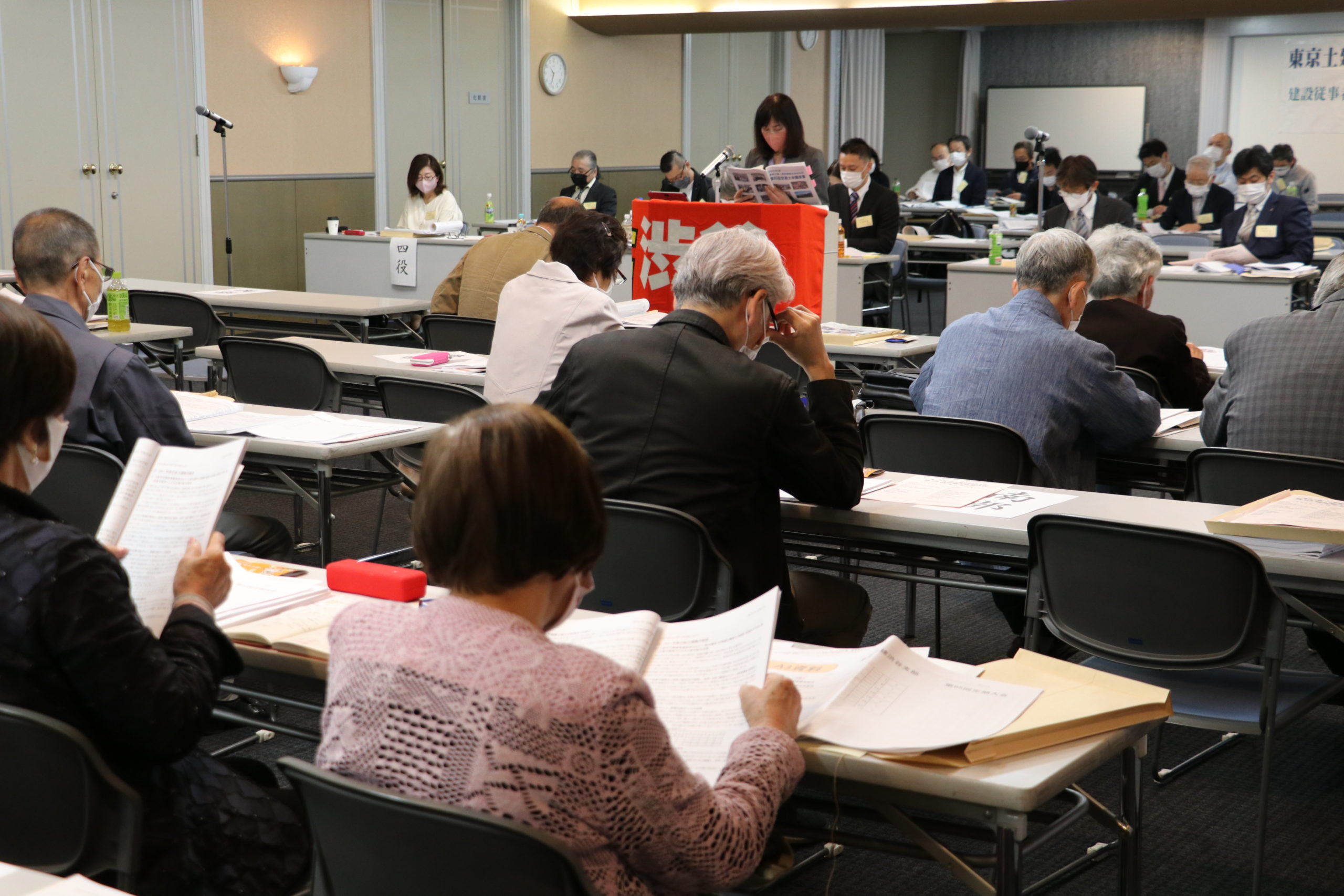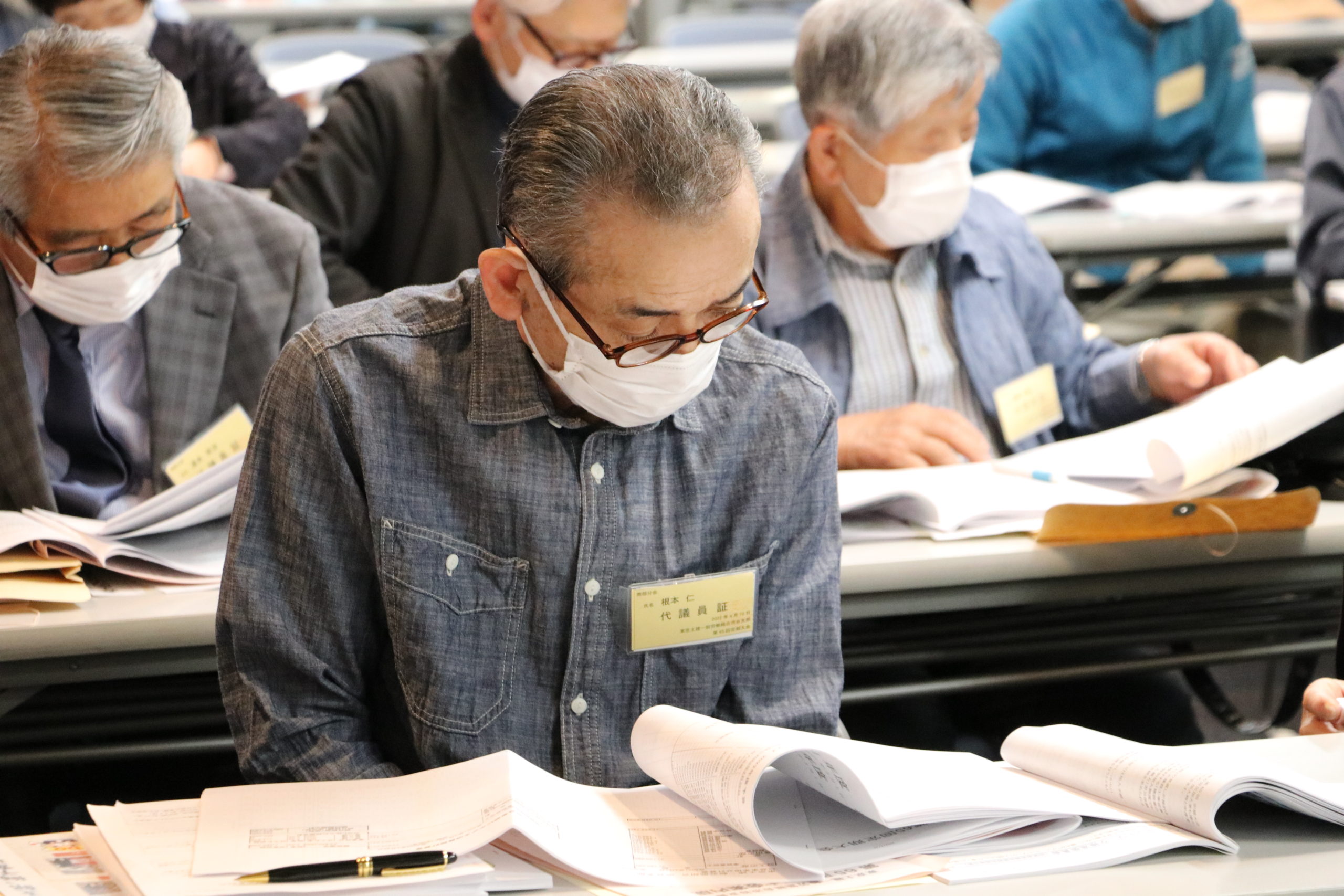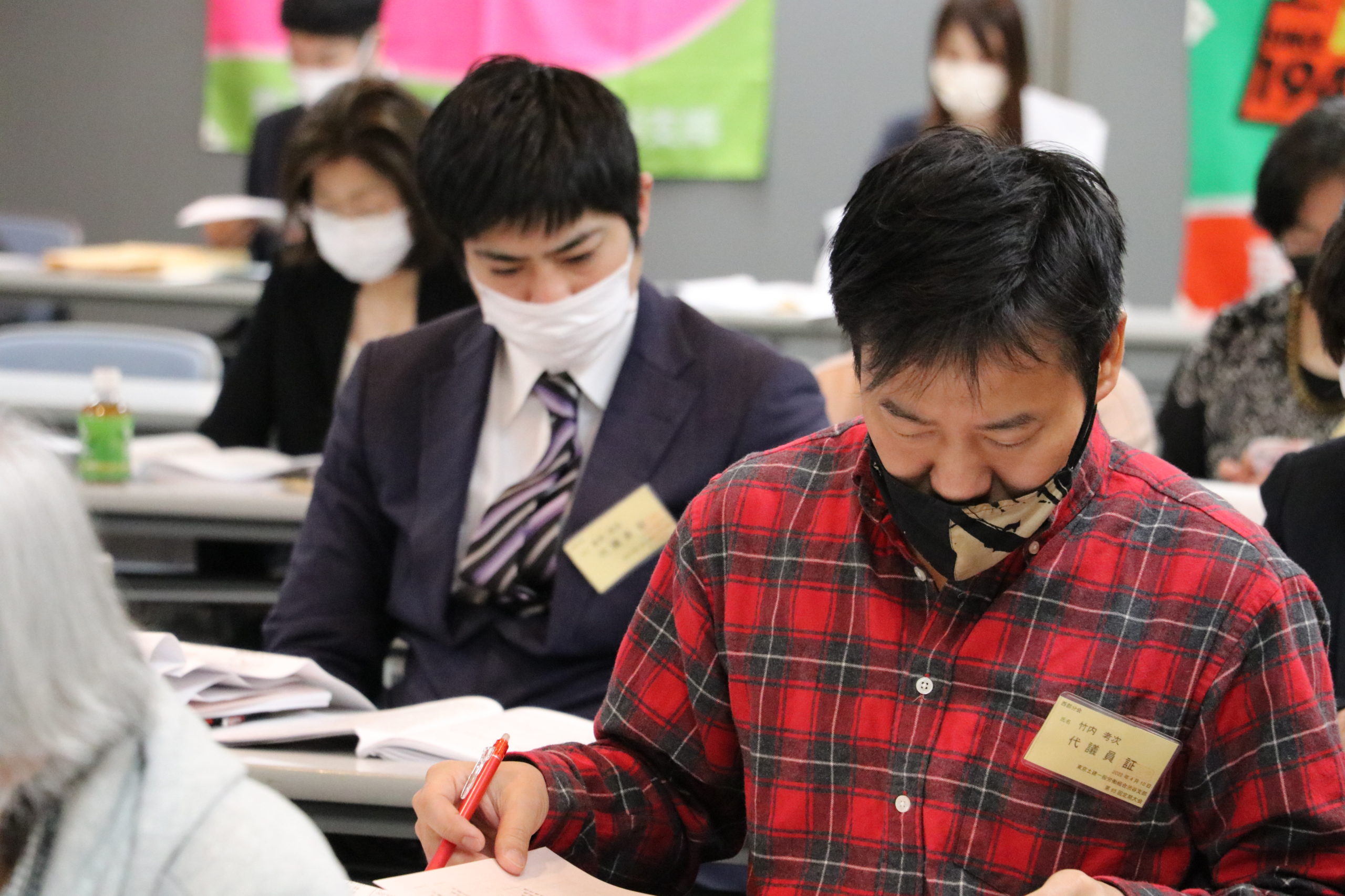資格審査委員会による大会成立宣言の後、採択。拍手をもって全ての議案が承認されました。