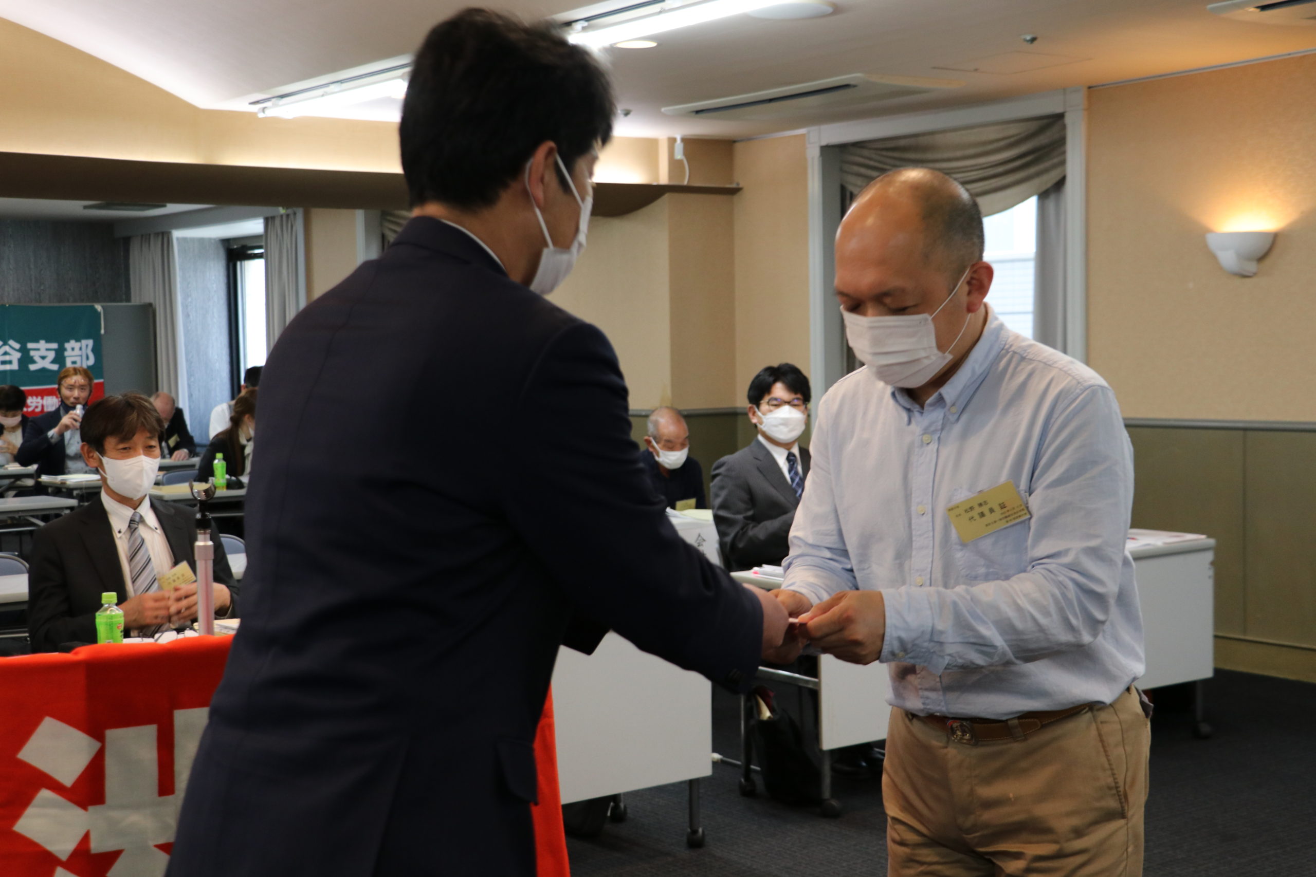 白須組織後継者部長による春の拡大月間の訴えと、春一番の分会表彰。