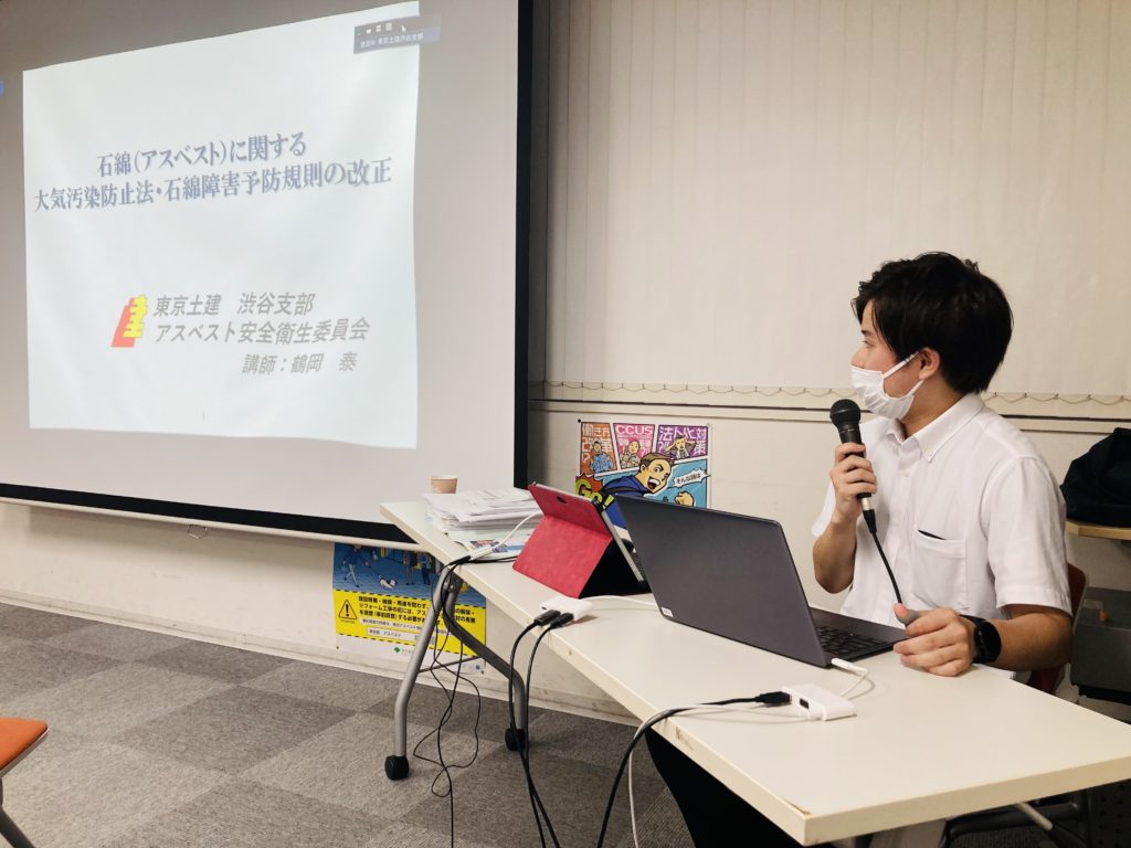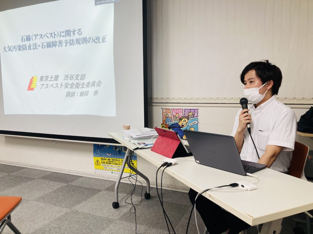 6月29日㊌19時から渋谷支部会館3階で鶴岡書記を講師に開催しました。20人(会場18人・Web2人)が参加し、法の改正点と事前調査届の書き方・GbizID(ネット)を利用した申請方法について学習しました。