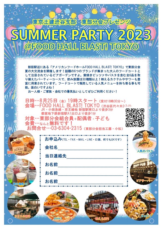 今年は8月25日金曜夜、FOOD HALL BLAST! TOKYOです。住所は代々木、場所は新宿駅徒歩1~3分という東部分会エリアの一等地。