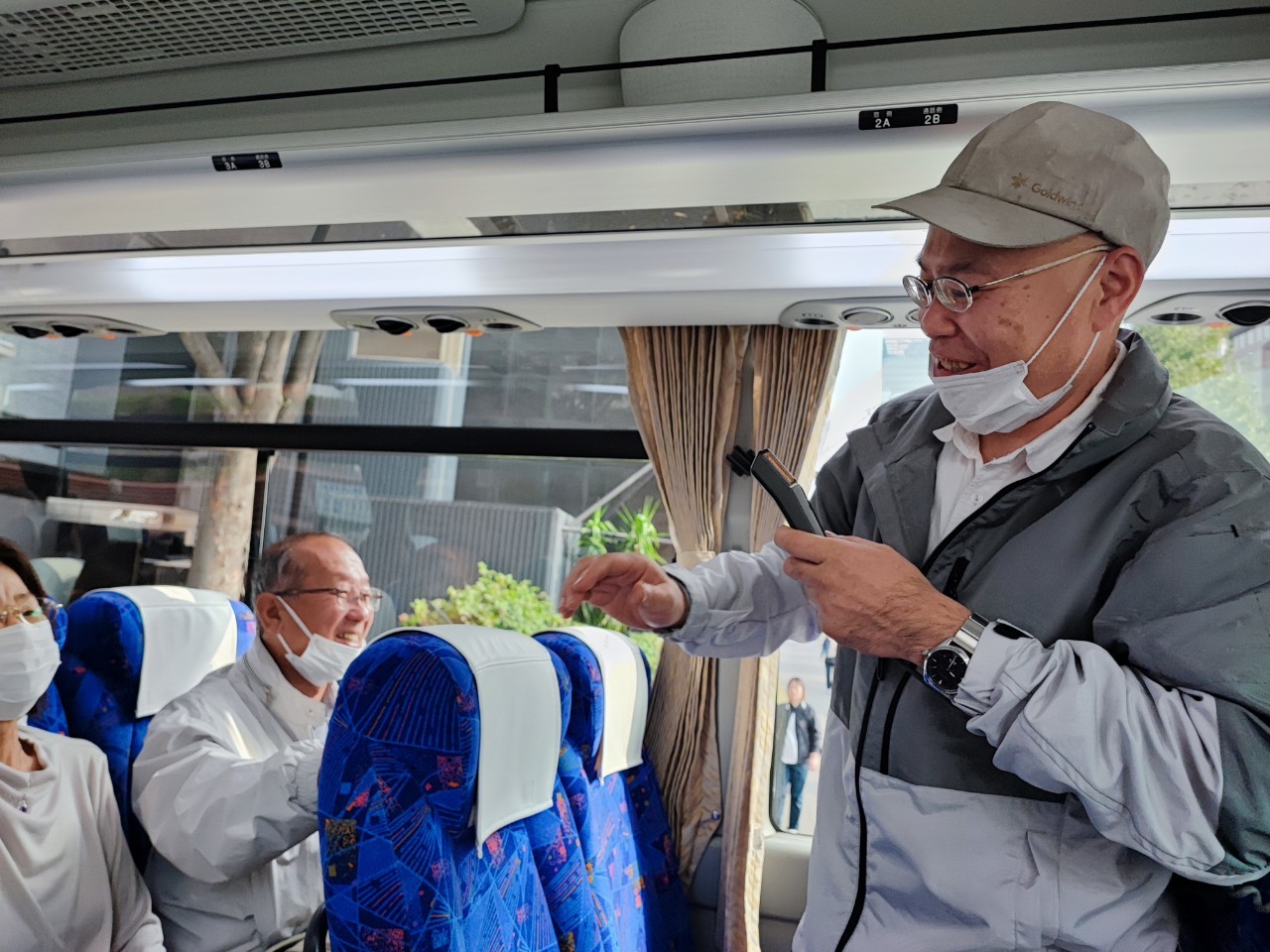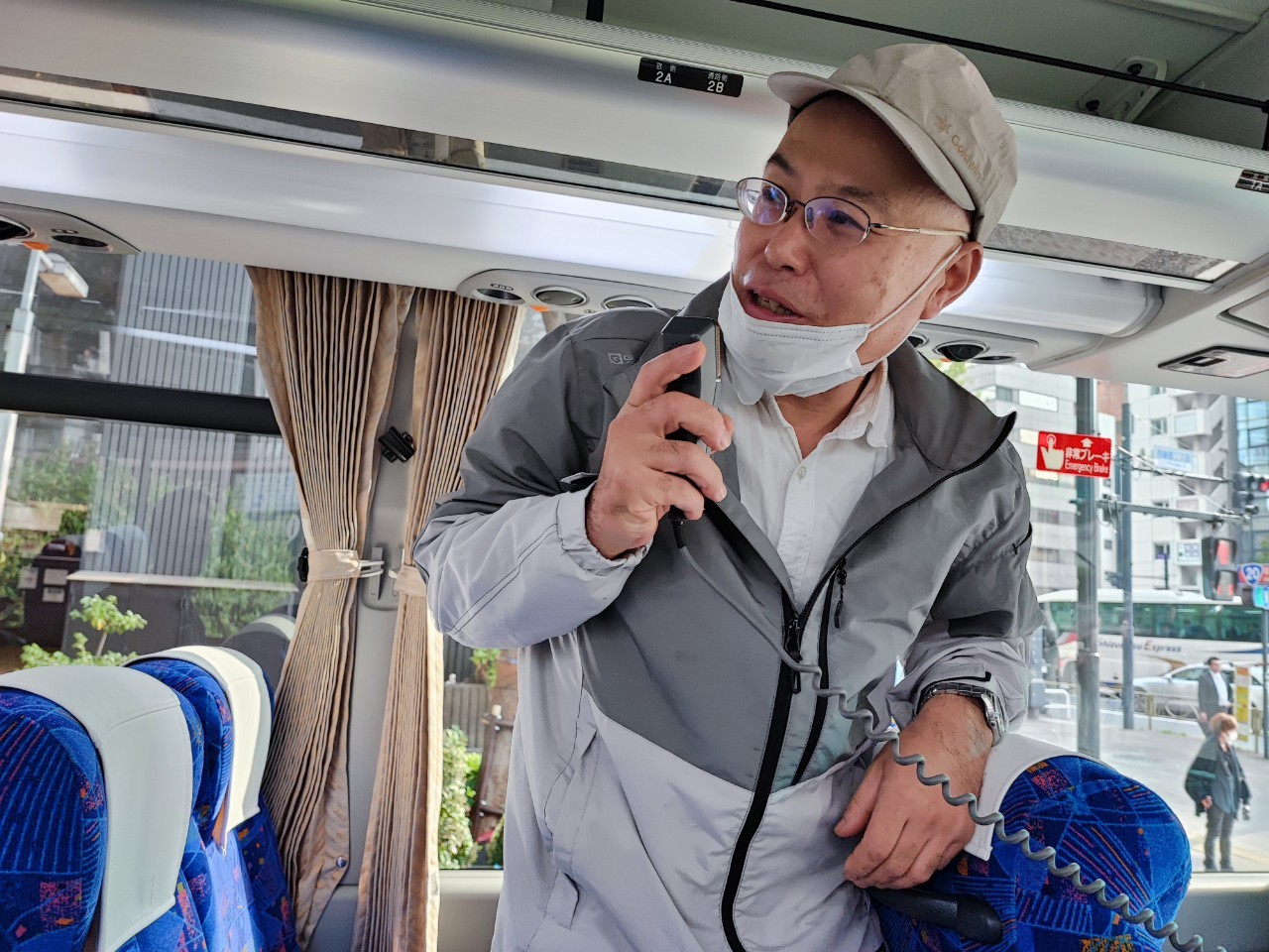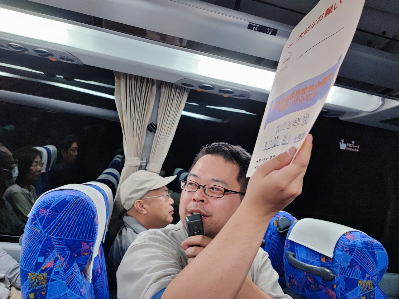 今回の企画を提案してくれた添乗員さんが朝のご挨拶と工程の確認。