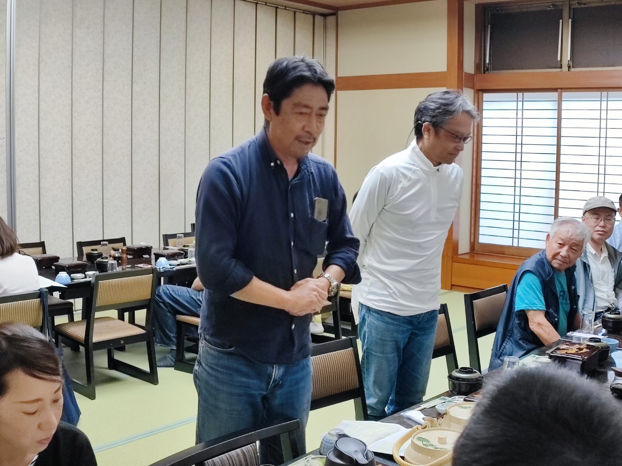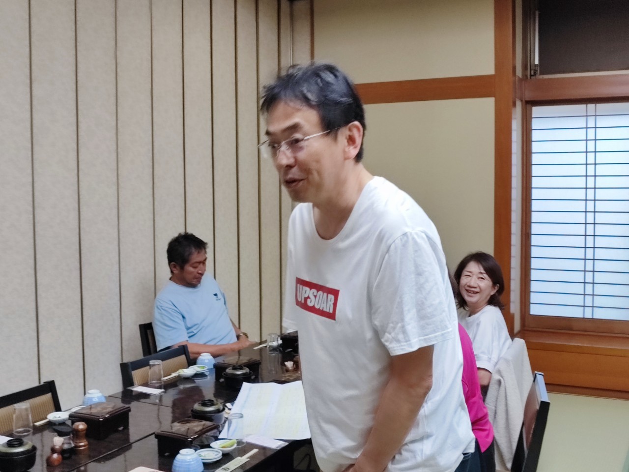東部分会担当書記は山﨑・工藤と暑がりが続いていますが、さらに暑がりの小松書記が加わりました。そのせいかとても暑い陽気でしたので、さっそく朝ビールを2本頂きました。