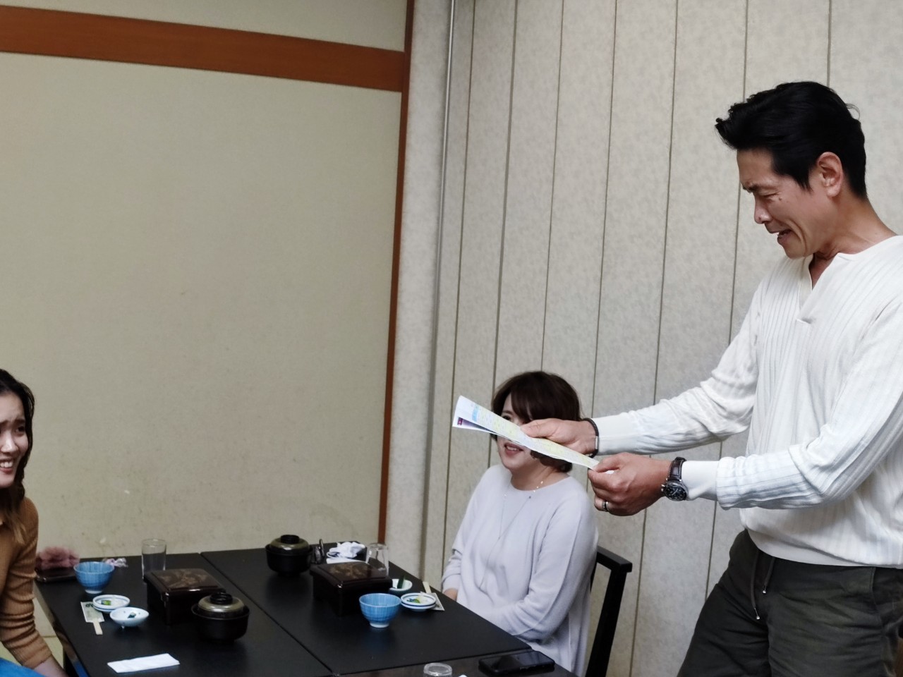 若松本店に到着し、飲み物が来るまで急遽自己紹介。名簿にナンバーを打っていたため、皆さん自然に「エントリーナンバー〇〇番の」と言っていて面白かったです。