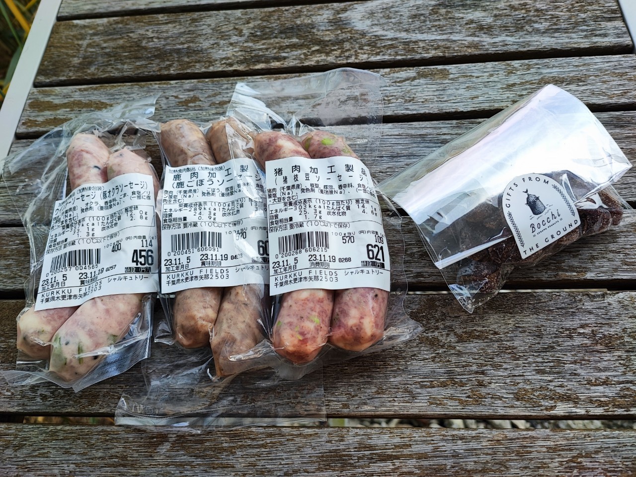 豚&オクラ、鹿&ごぼう、猪&枝豆など、面白いソーセージと落花生甘納豆をゲットしました。