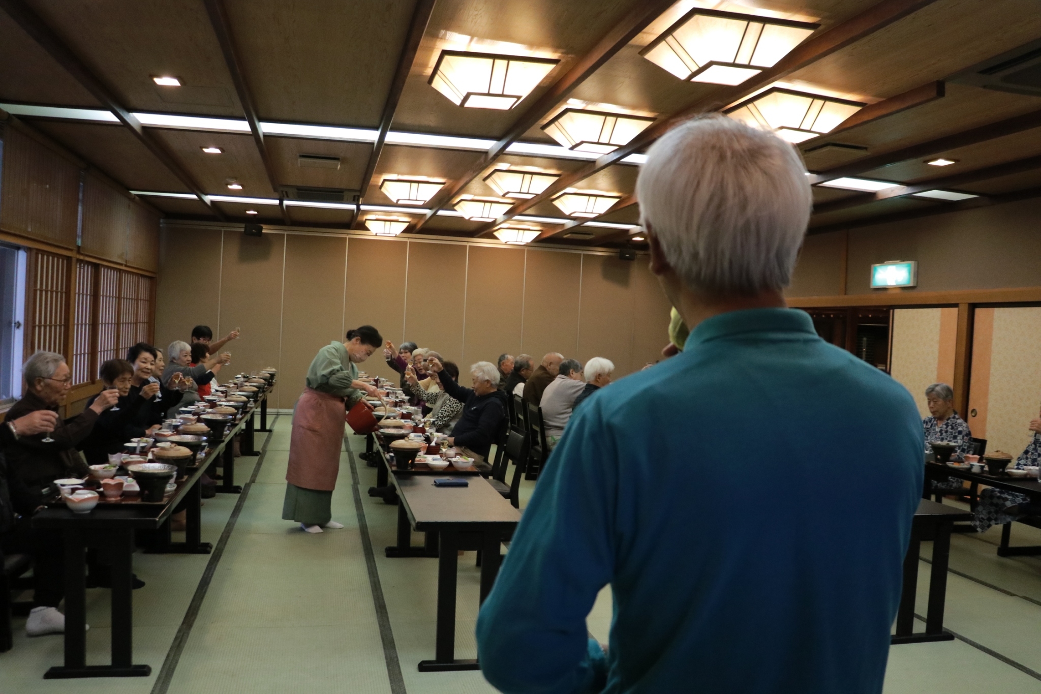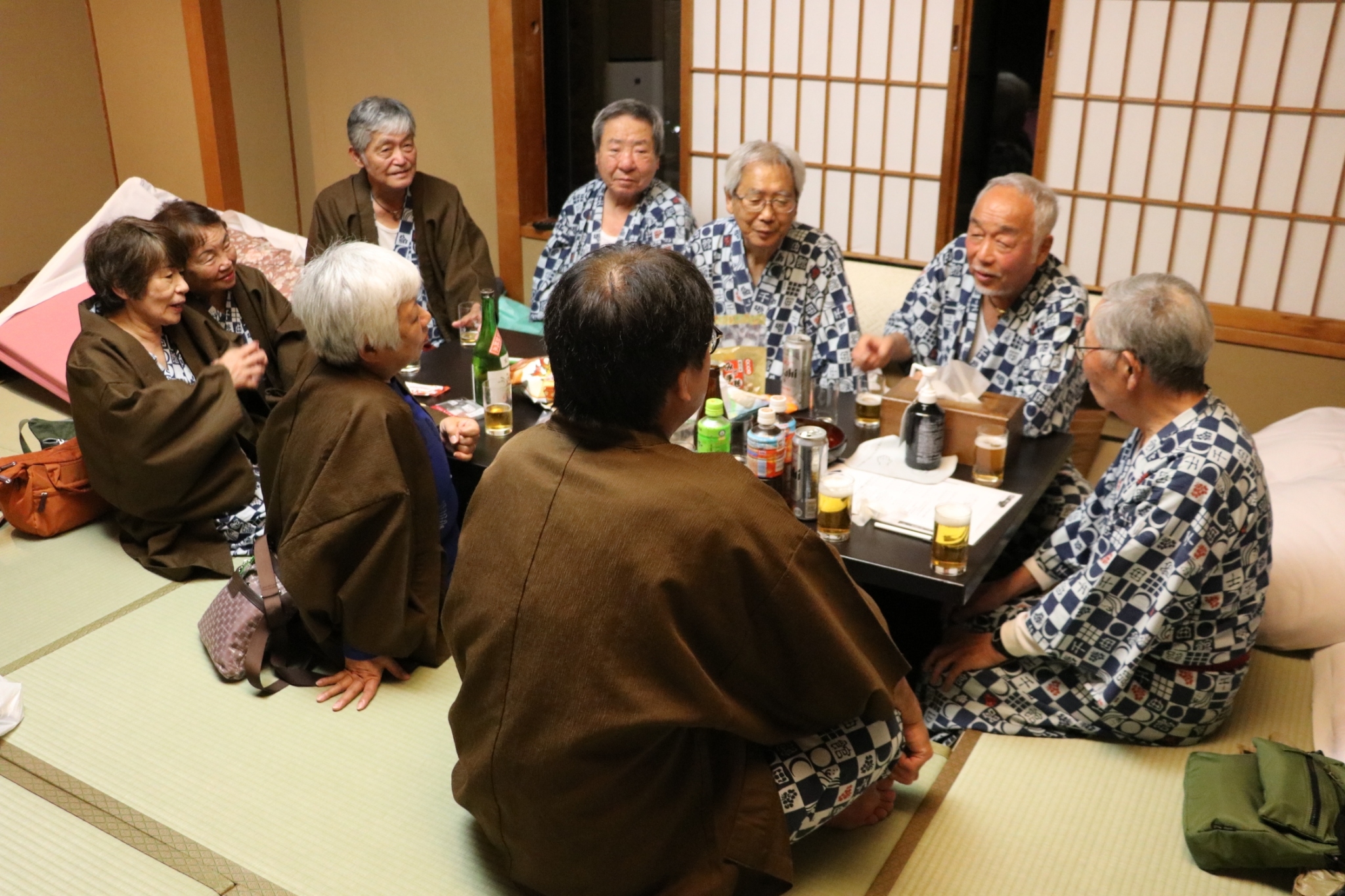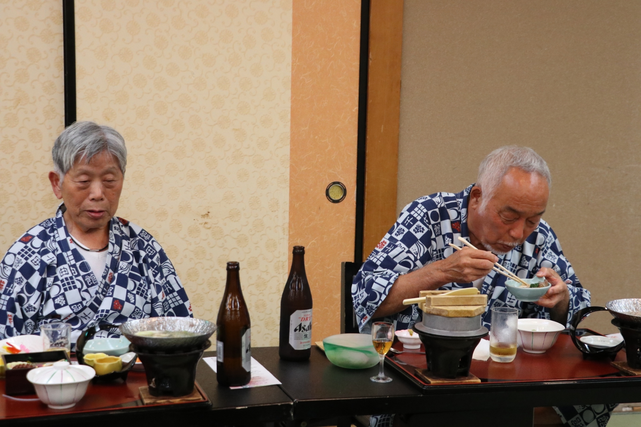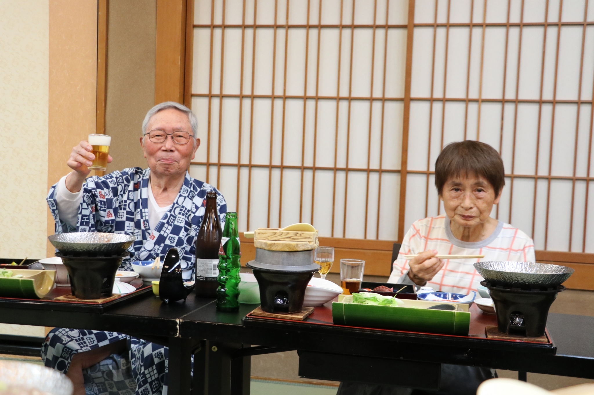 食後、仲居さんがお薬用のお水や爪楊枝を配ってくれました。「歯がないから楊枝はいらない」という組合員さんの声が聞こえました。