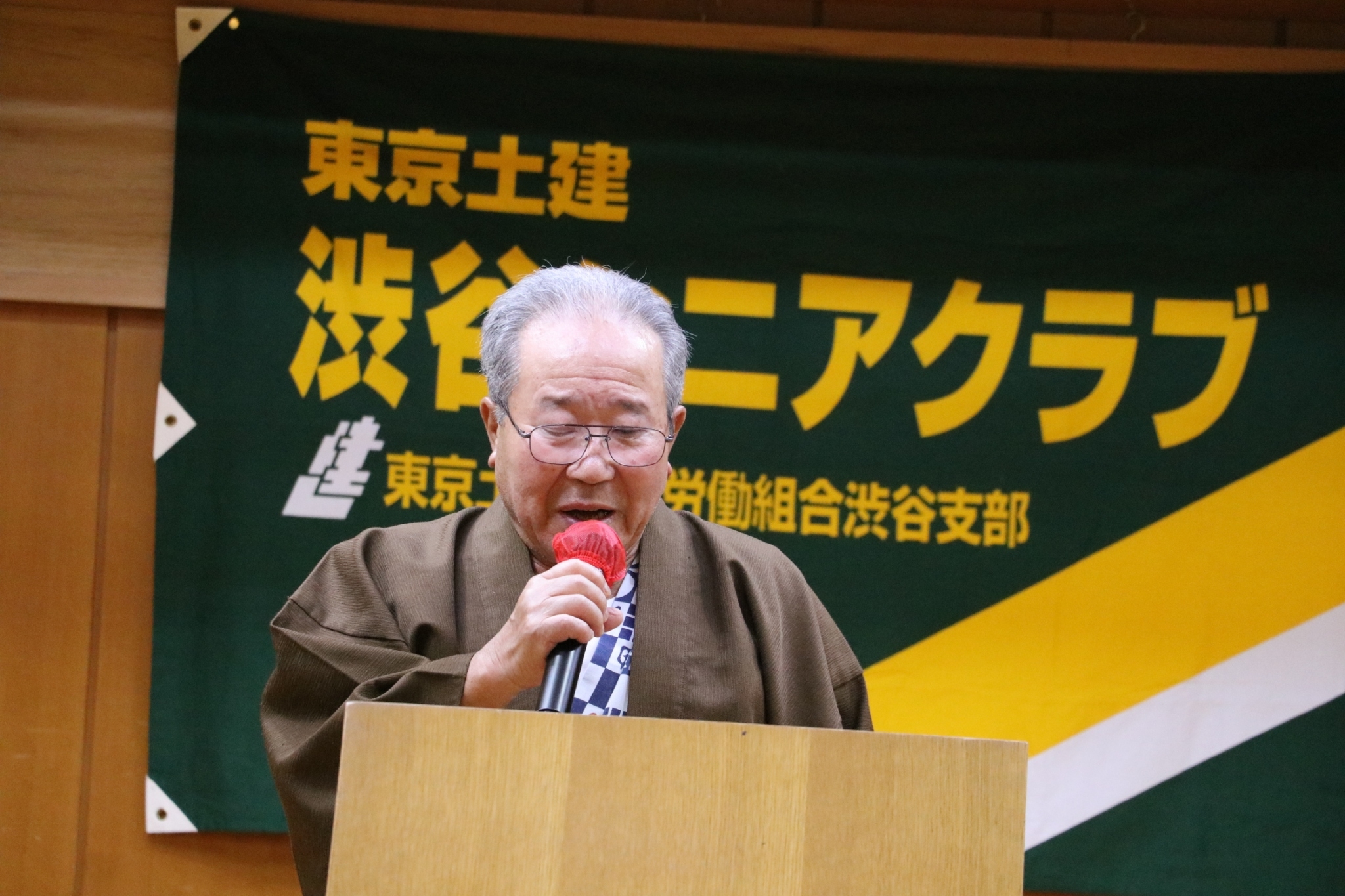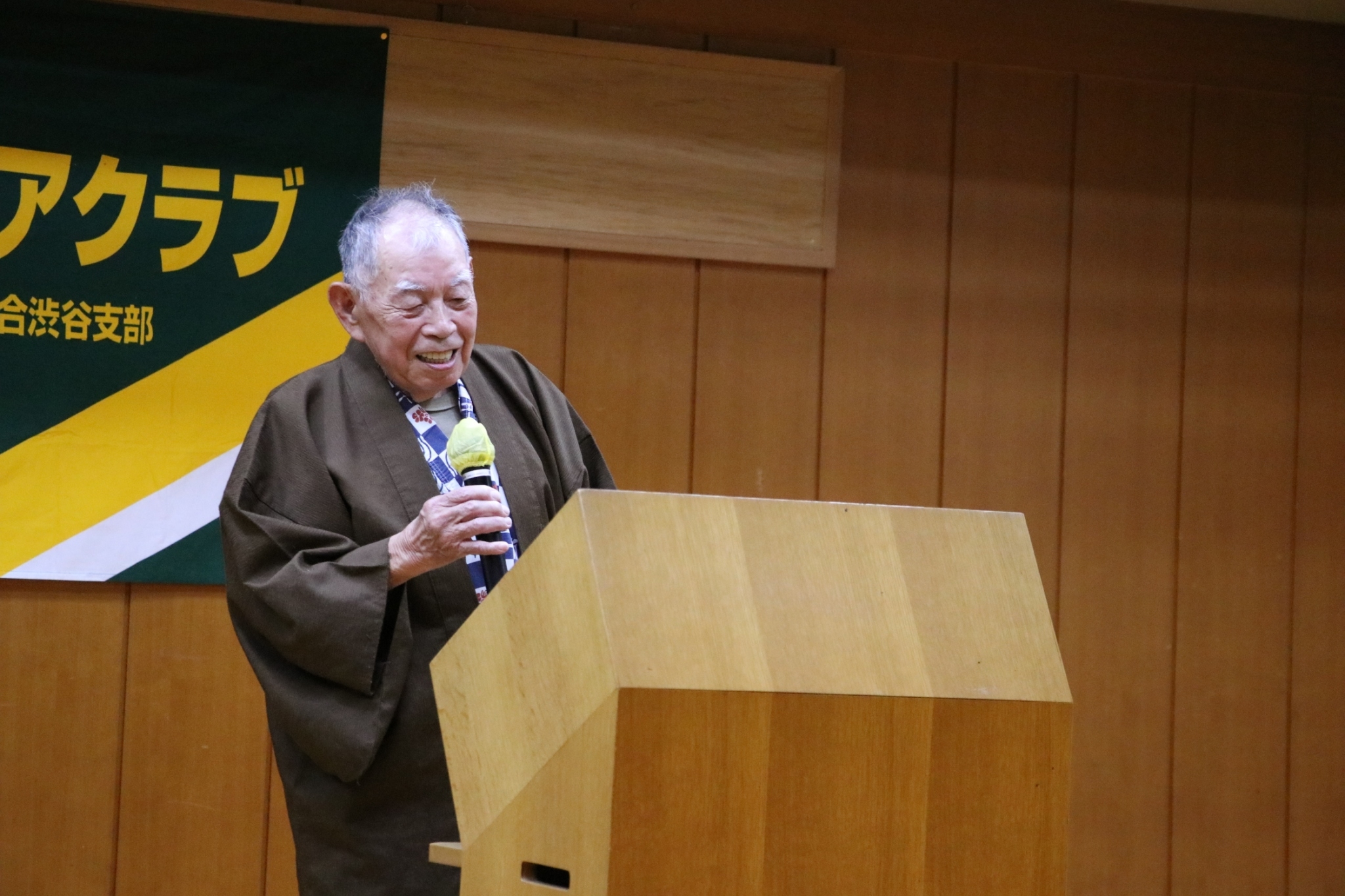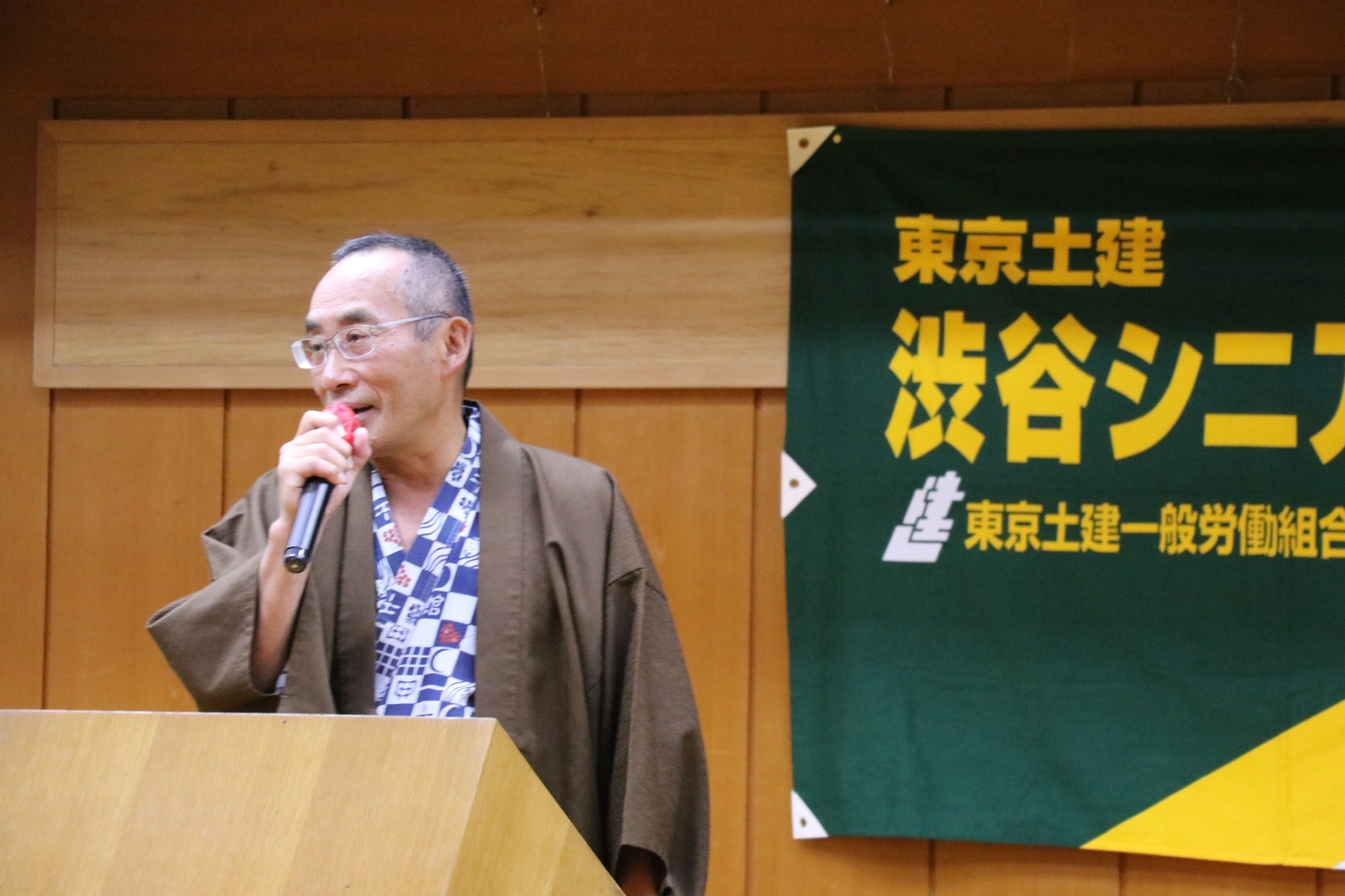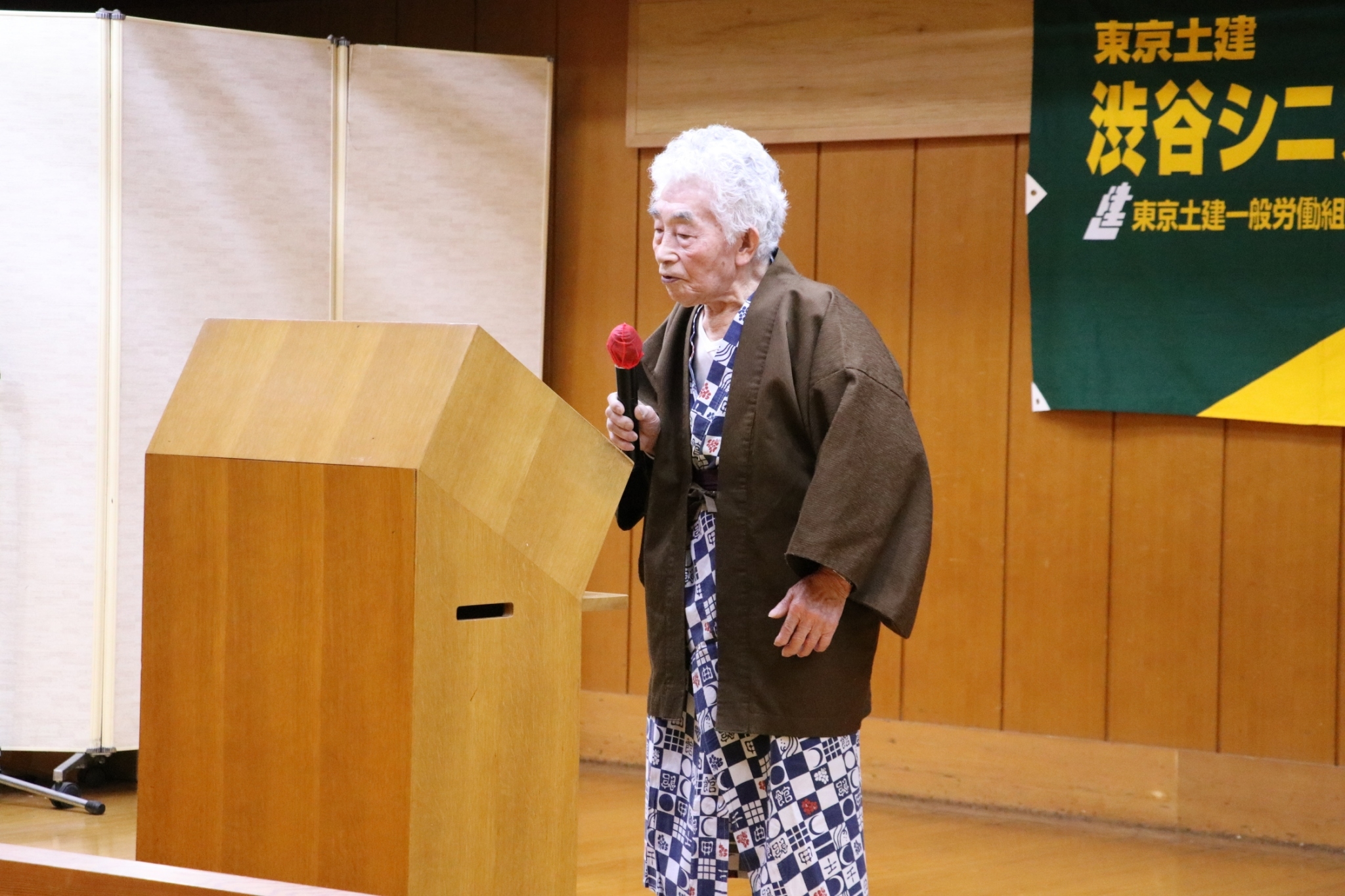 シニアクラブの旗を舞台に飾ったら総会みたいになりました。